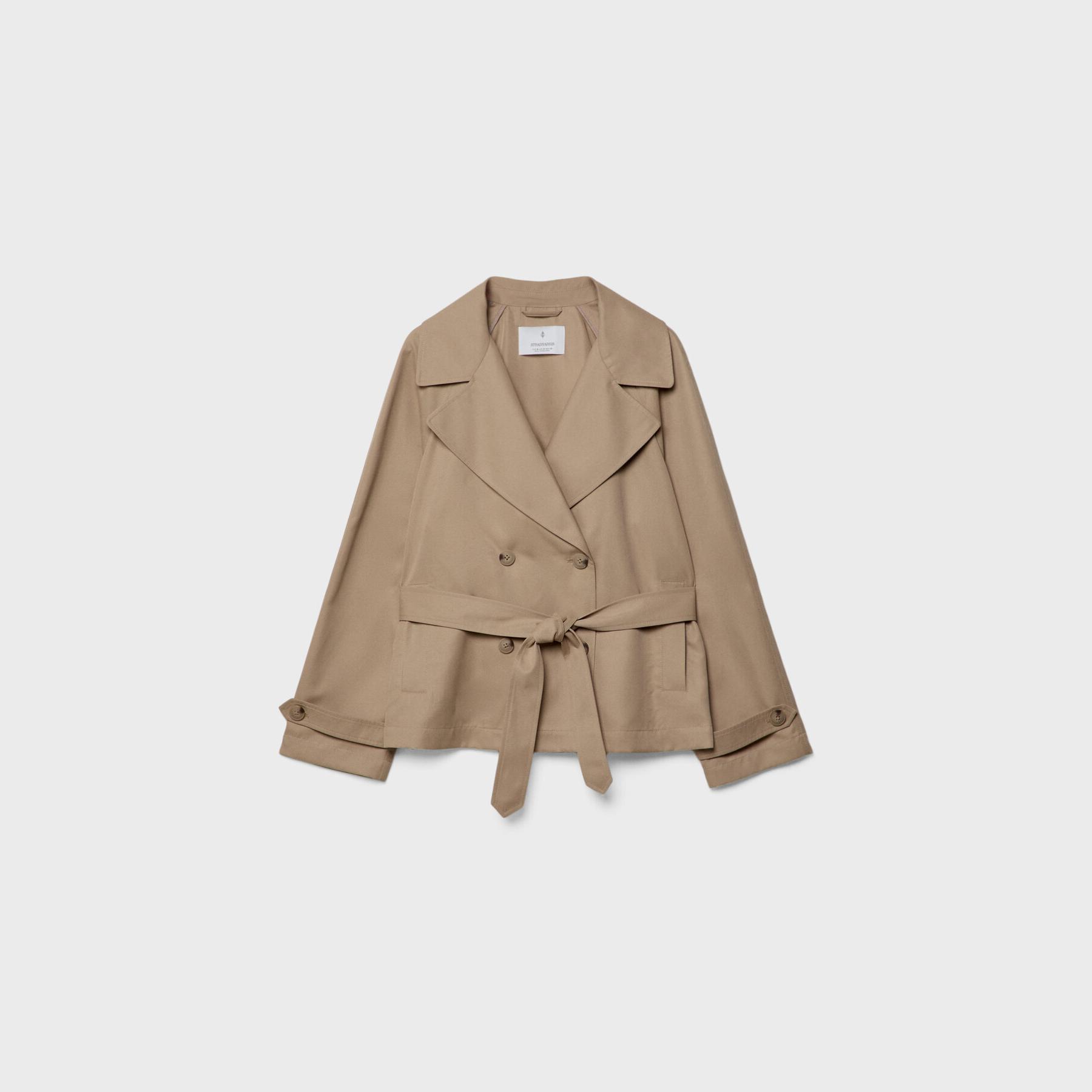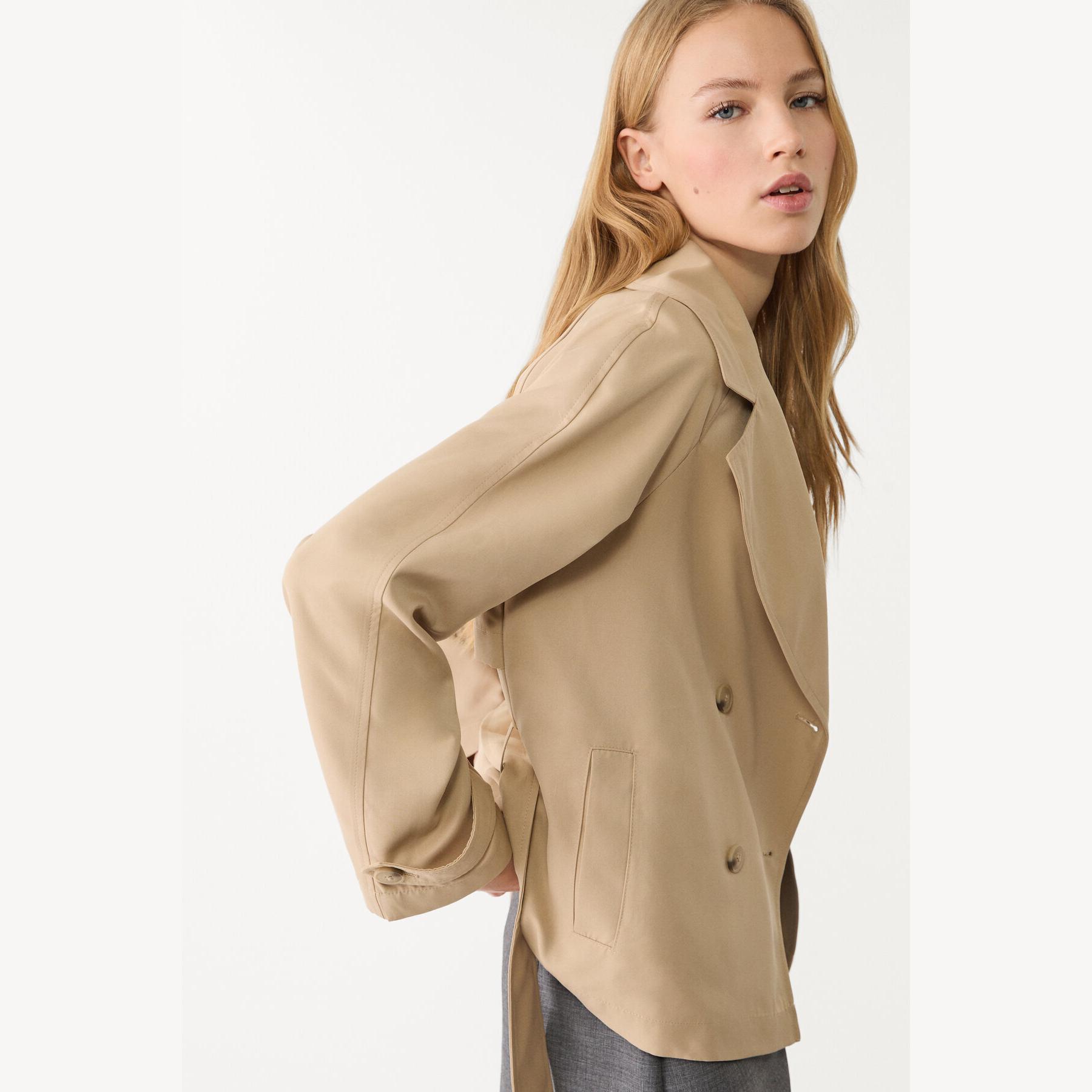 ترنش كوت قصير بقصة مريحة وحزام خصر – كريمي من Stradivarius