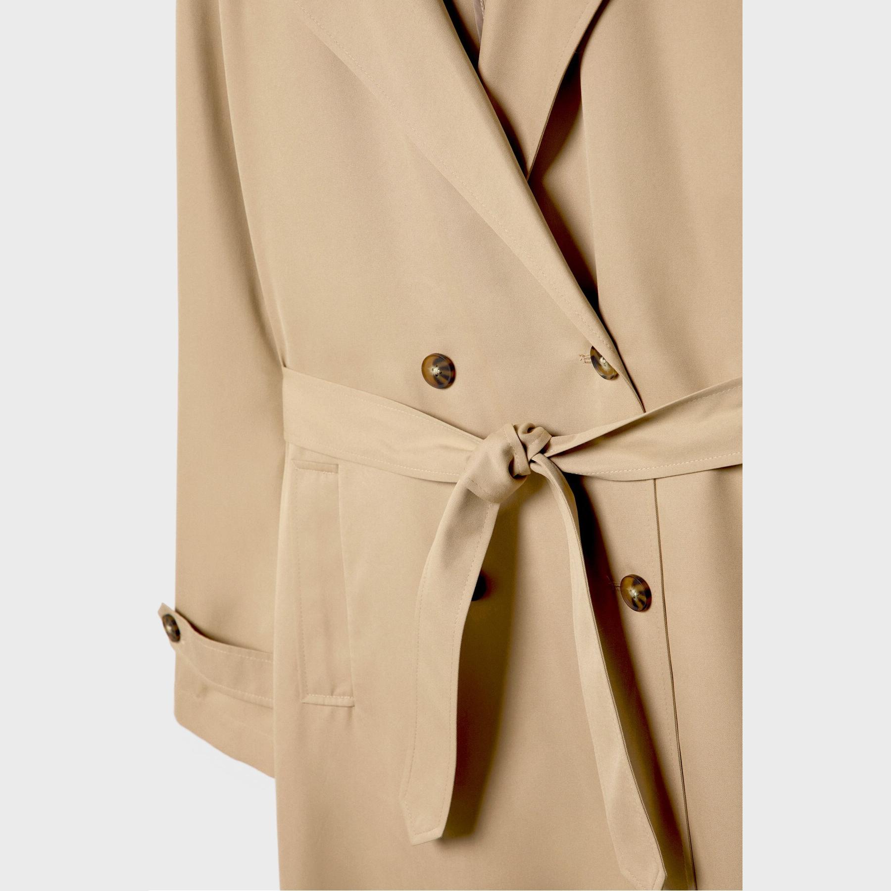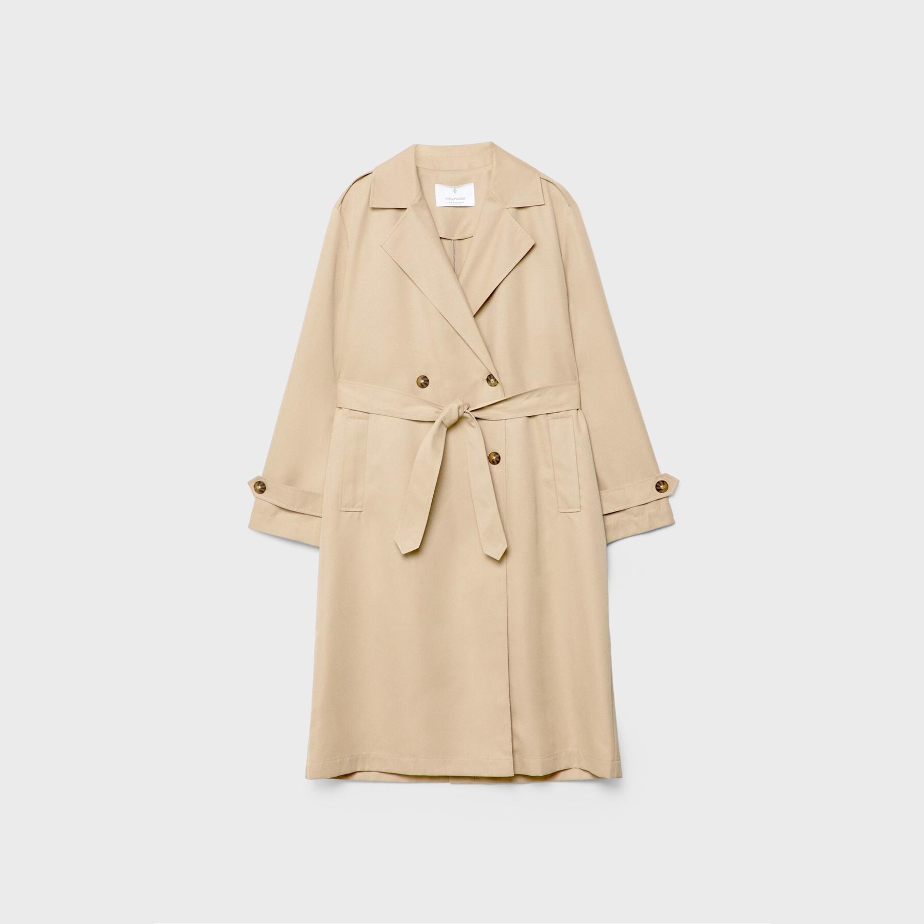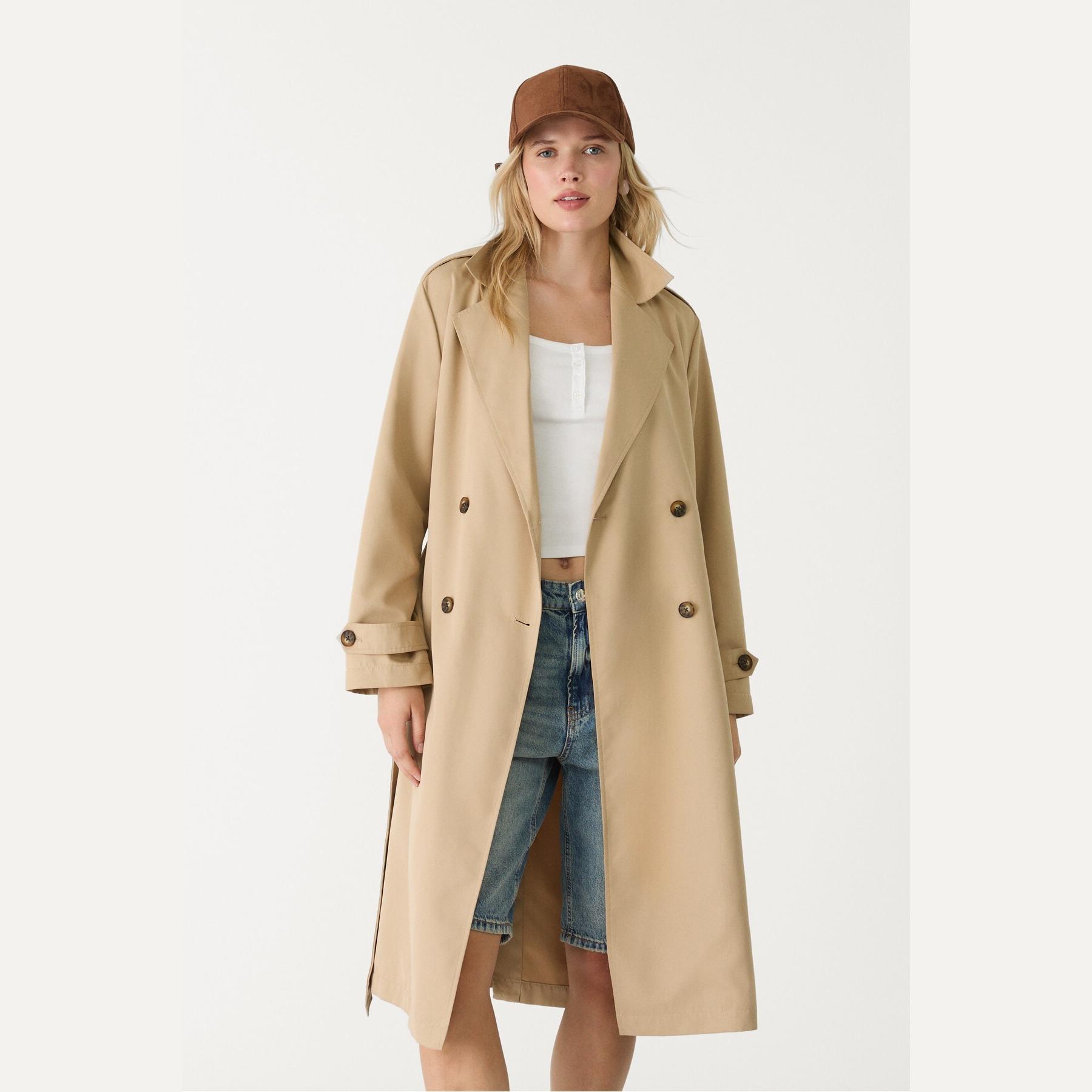 ترنش كوت طويل بقصة مريحة وياقة مزدوجة – إكرو من Stradivarius
