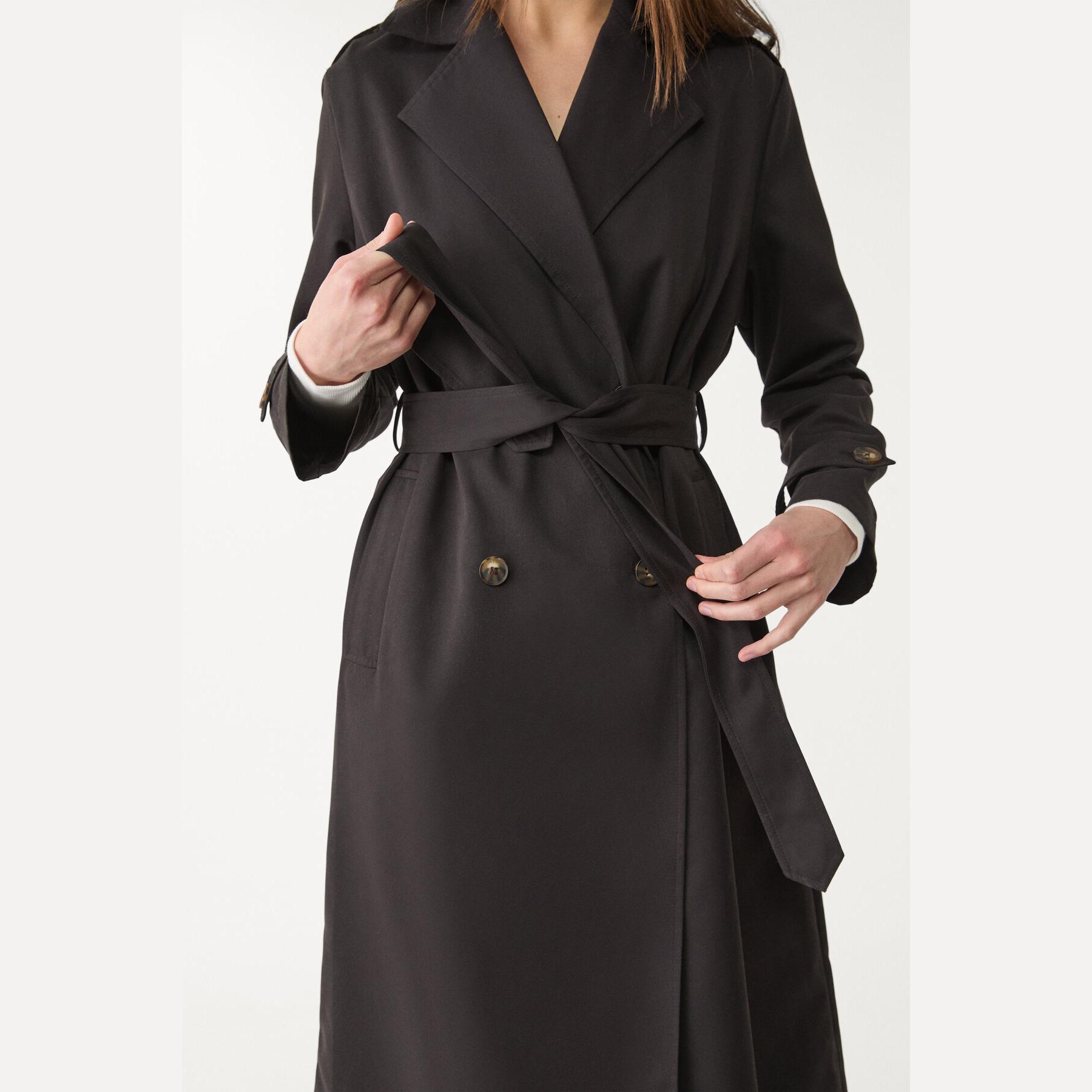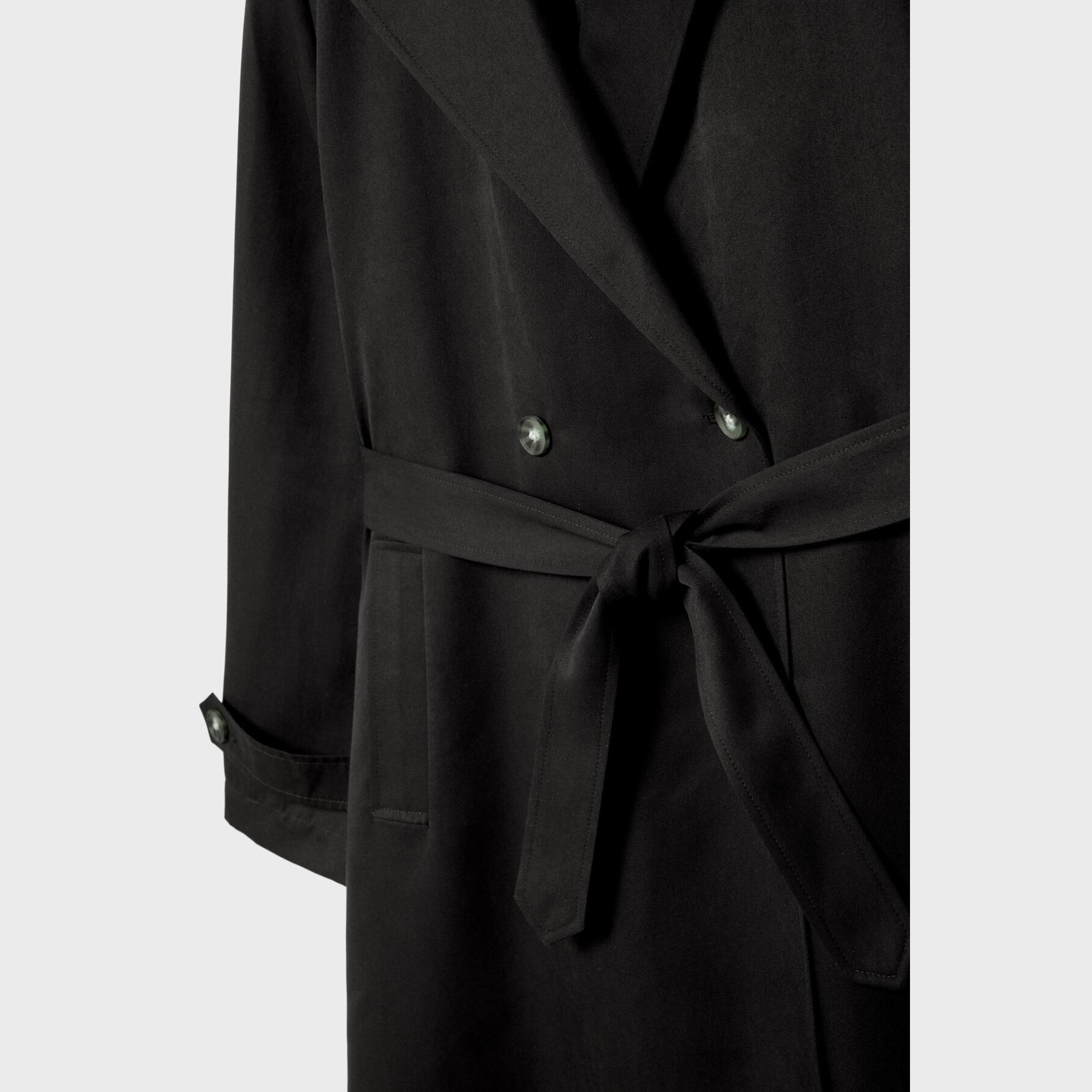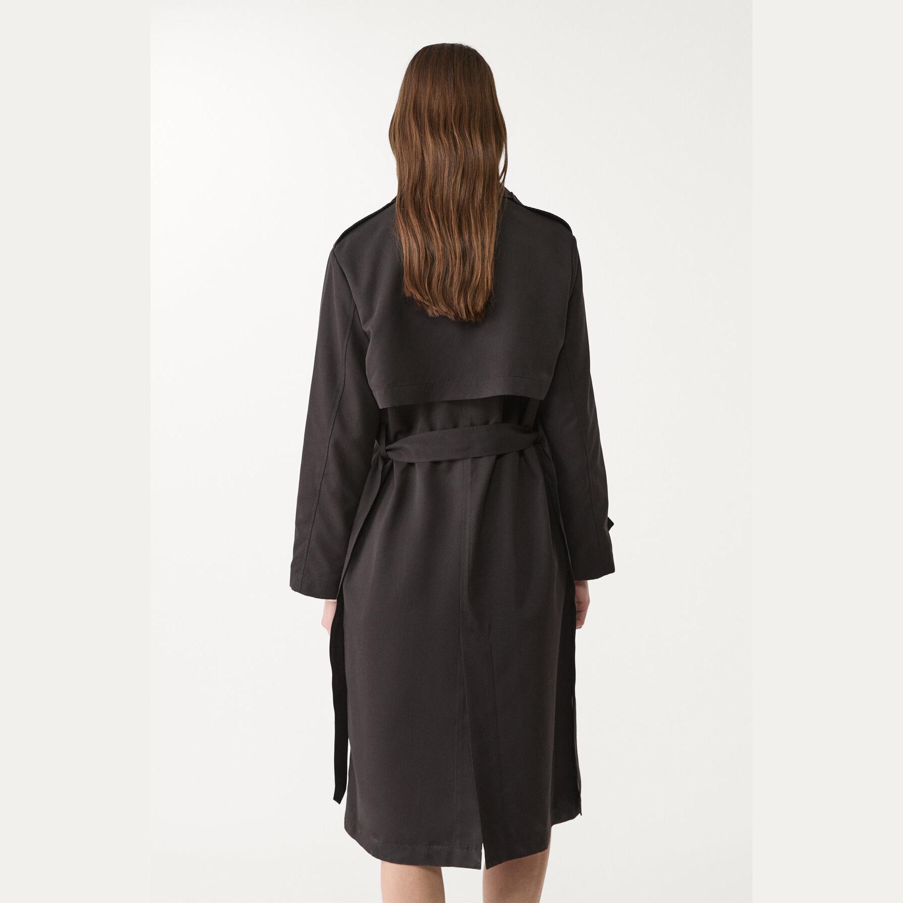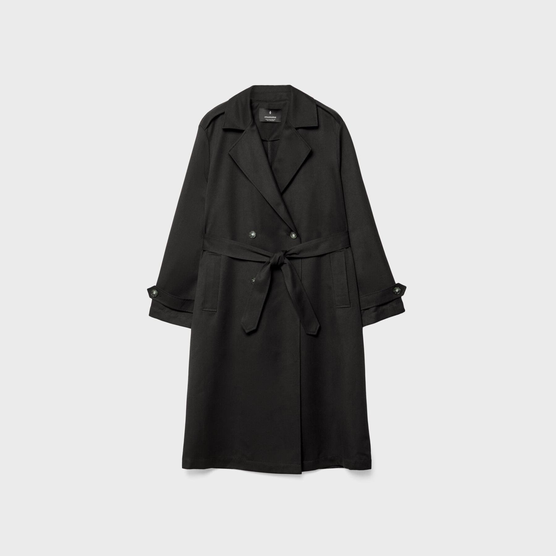 ترنش كوت طويل بقصة مريحة وياقة مزدوجة – أسود من Stradivarius