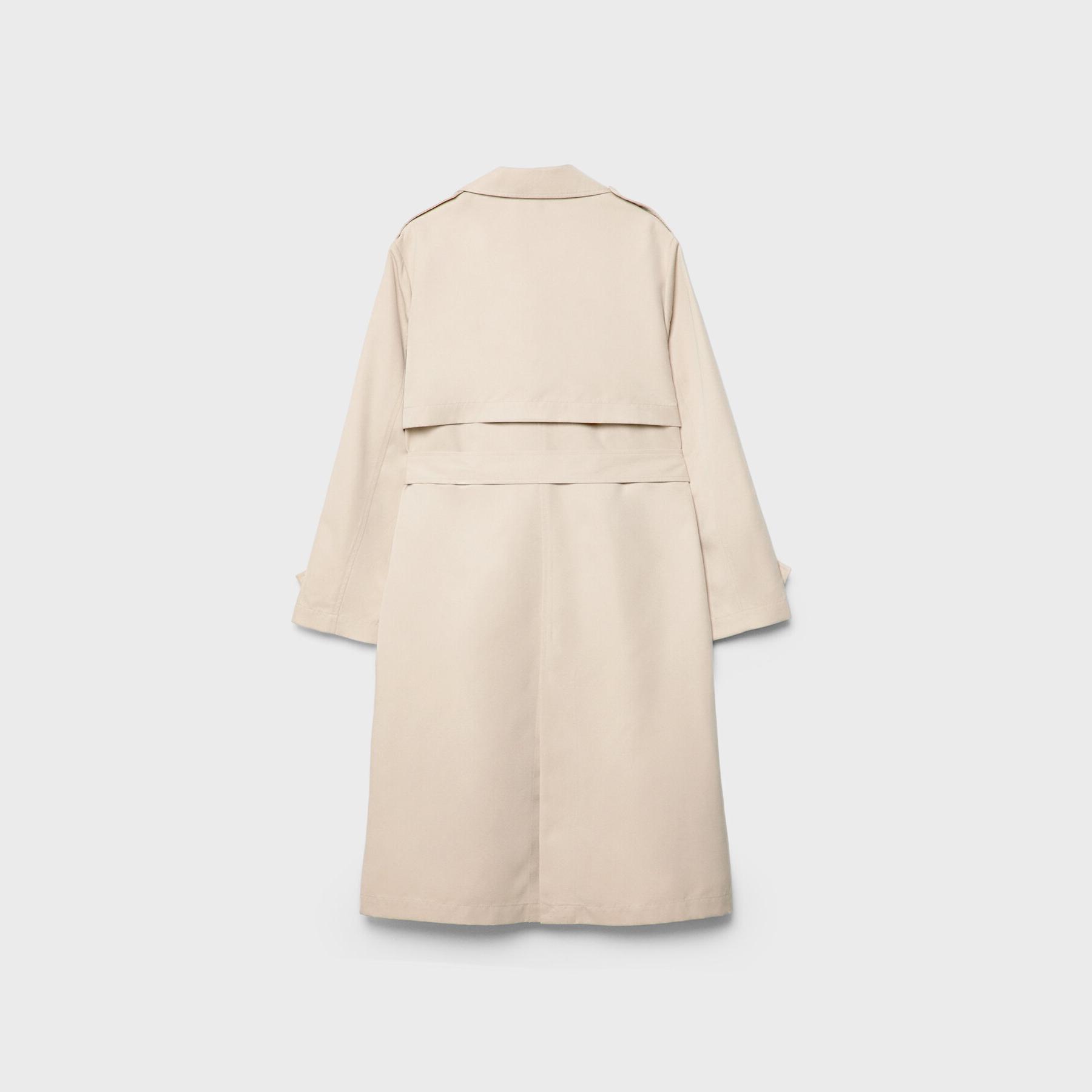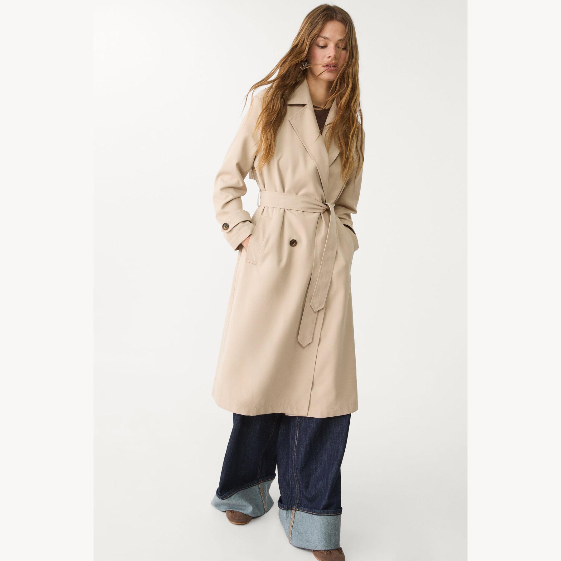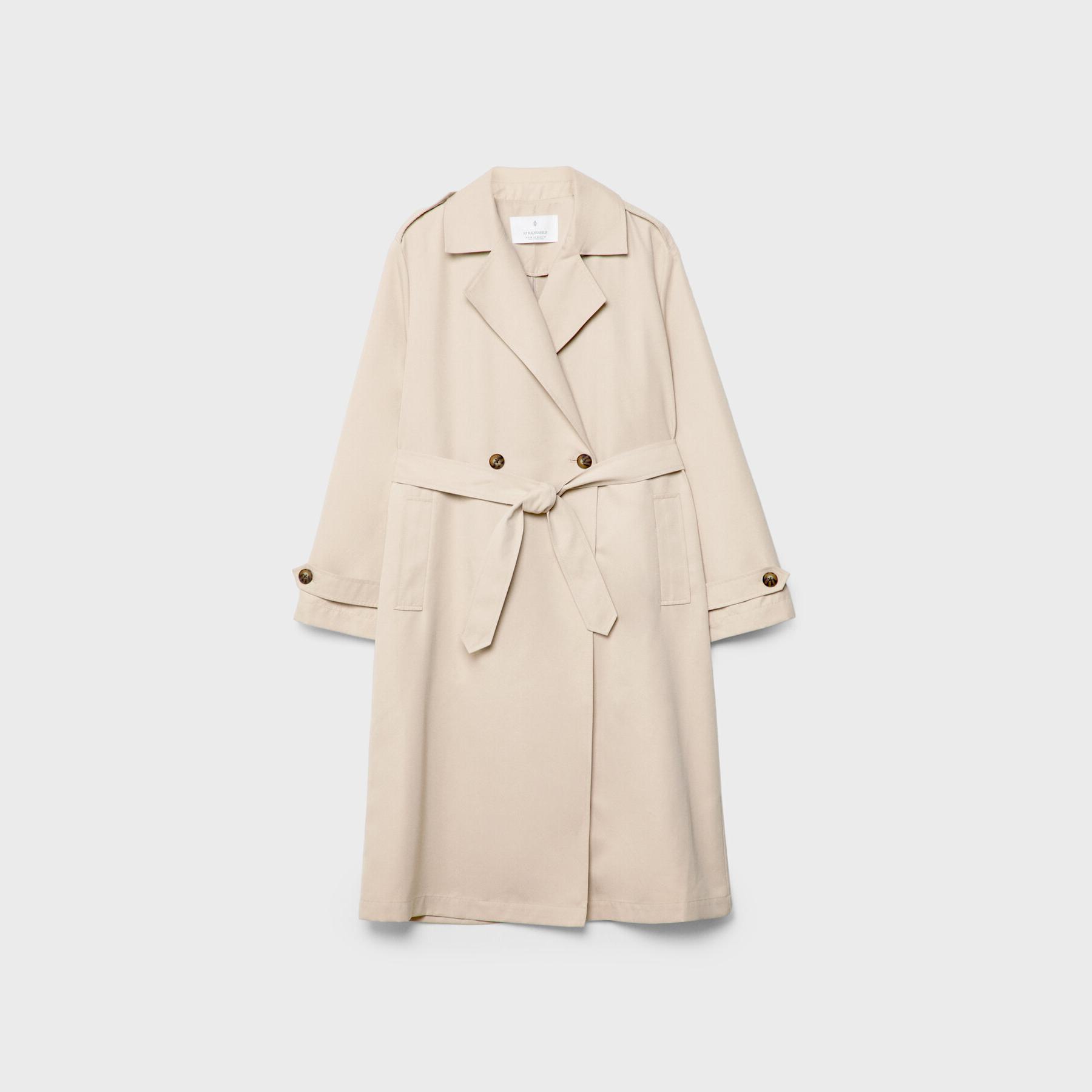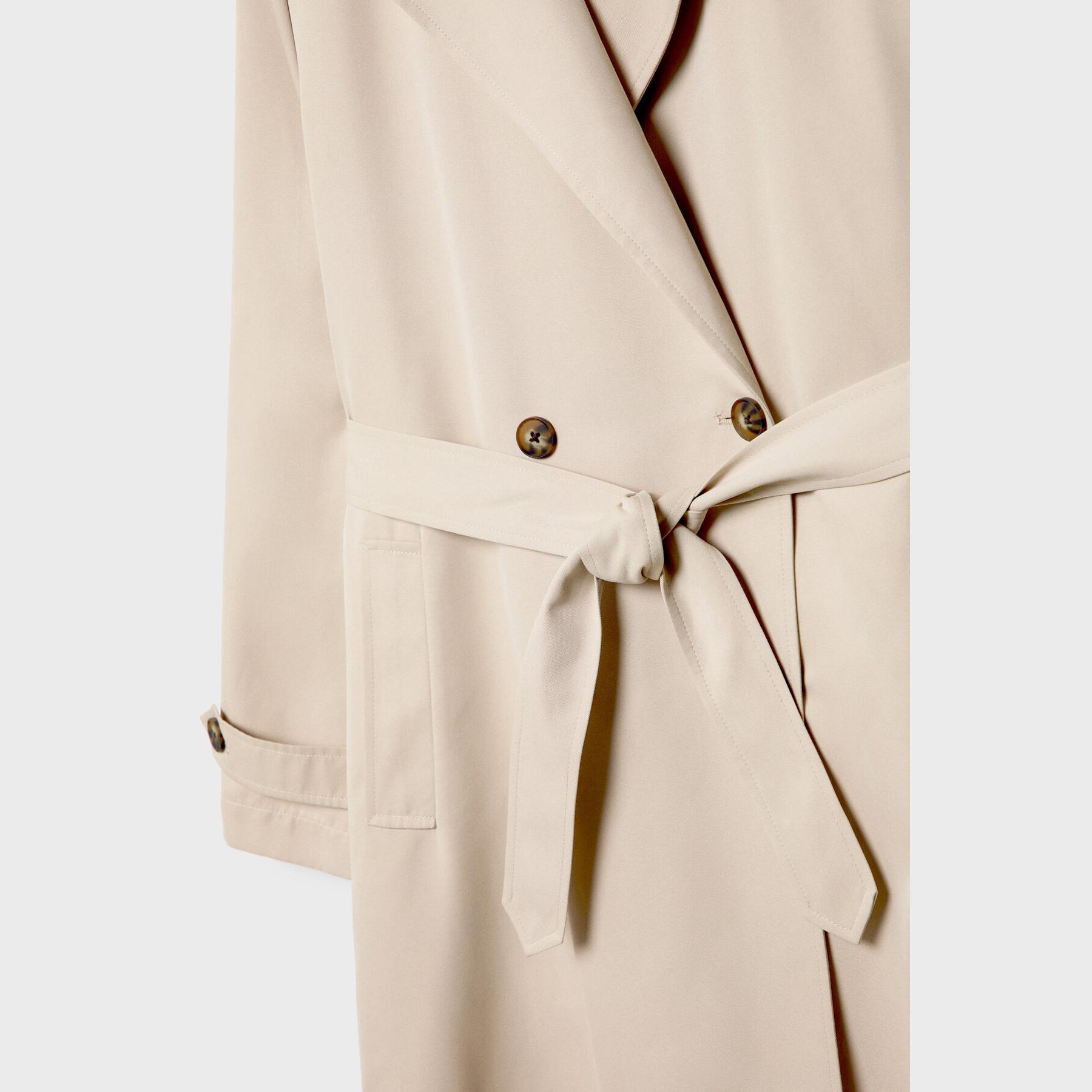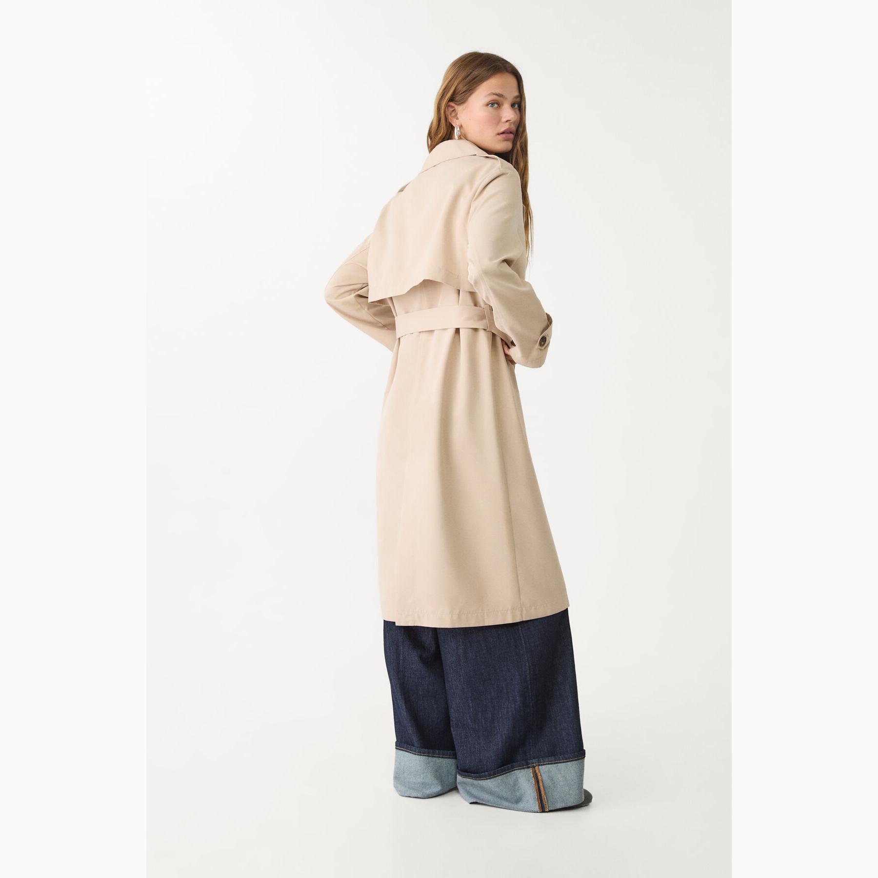 ترنش كوت طويل بقصة مريحة وياقة مزدوجة – كريمي من Stradivarius
