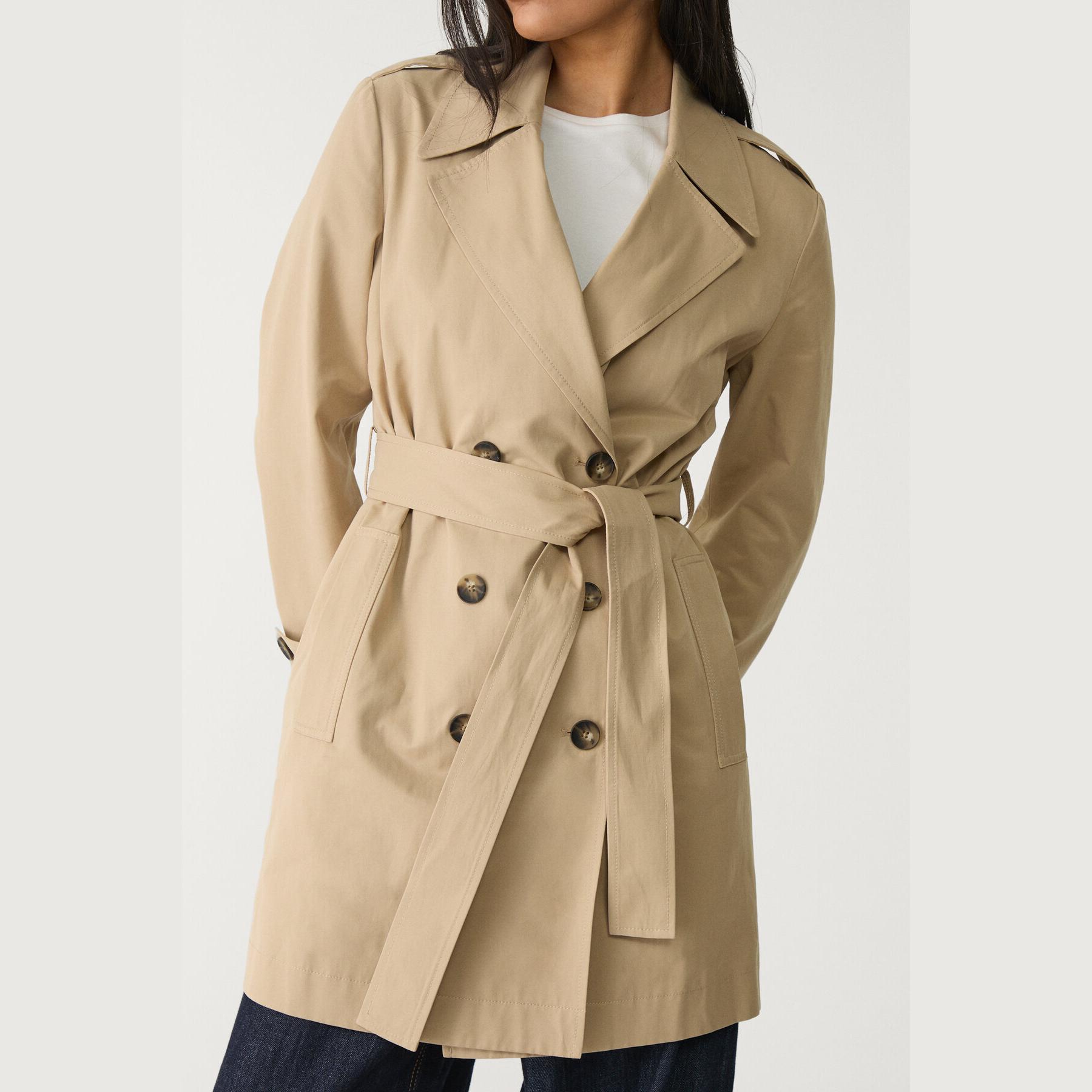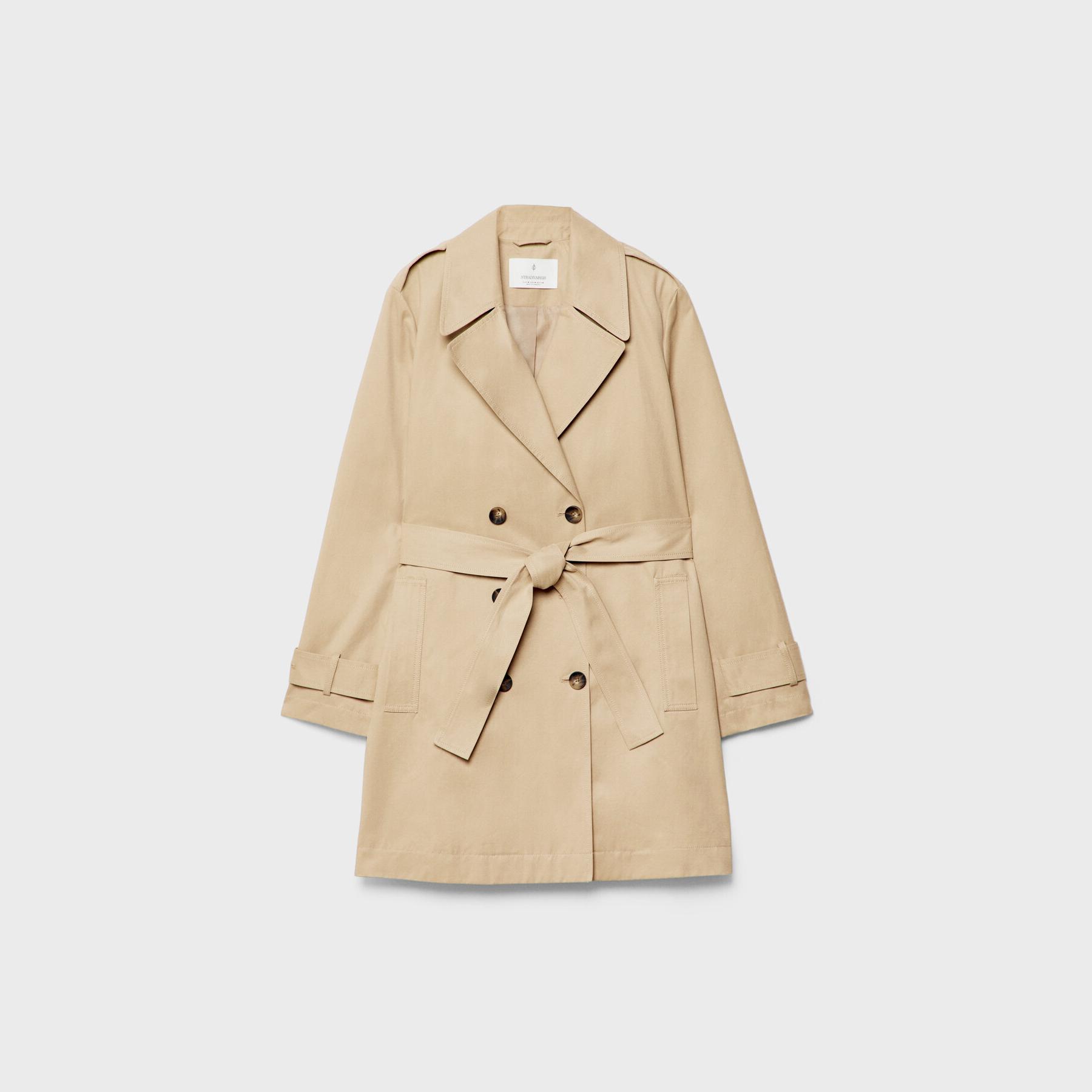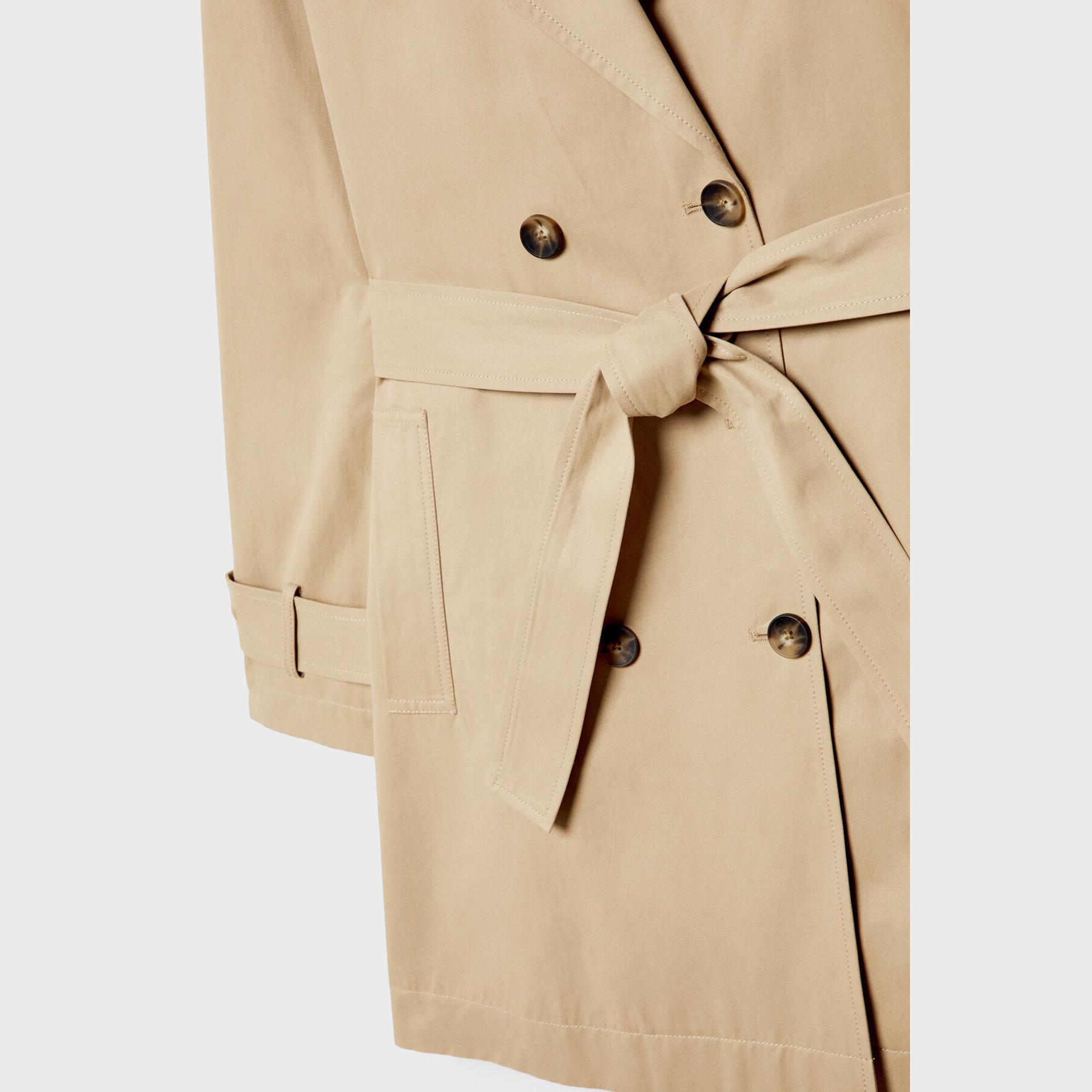 ترنش كوت كلاسيكي بقصة Regular Fit وحزام خصر – كريمي من Stradivarius