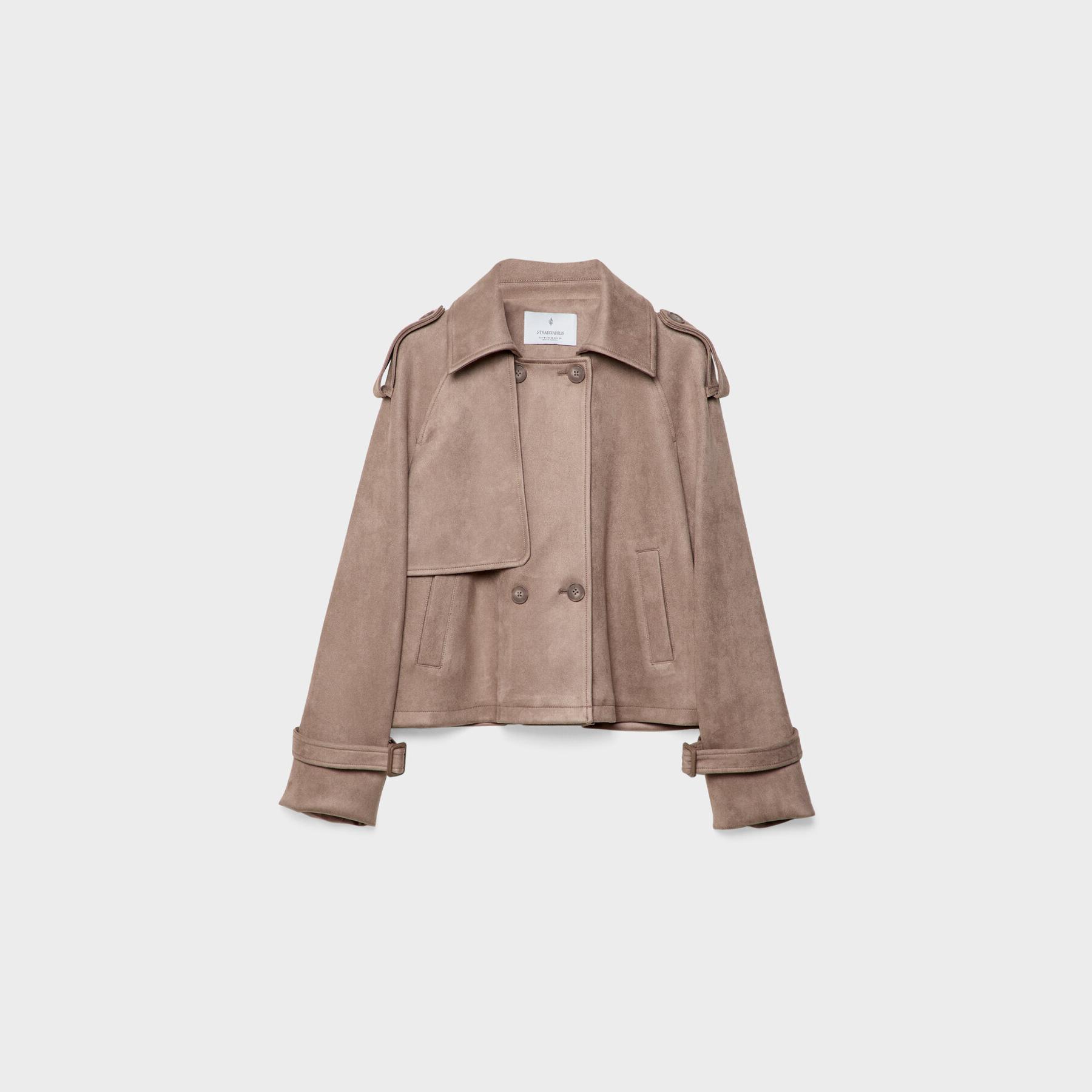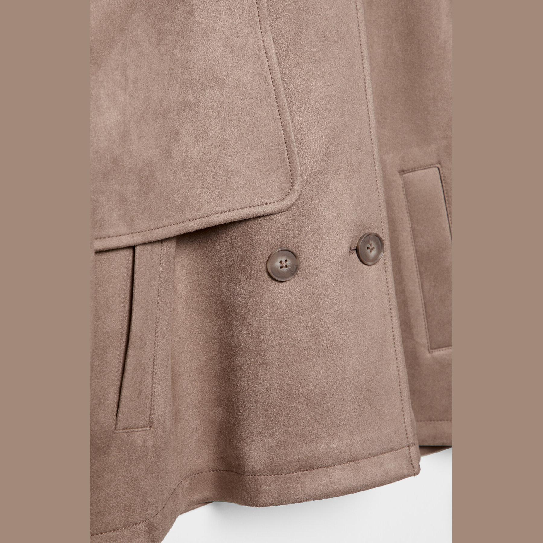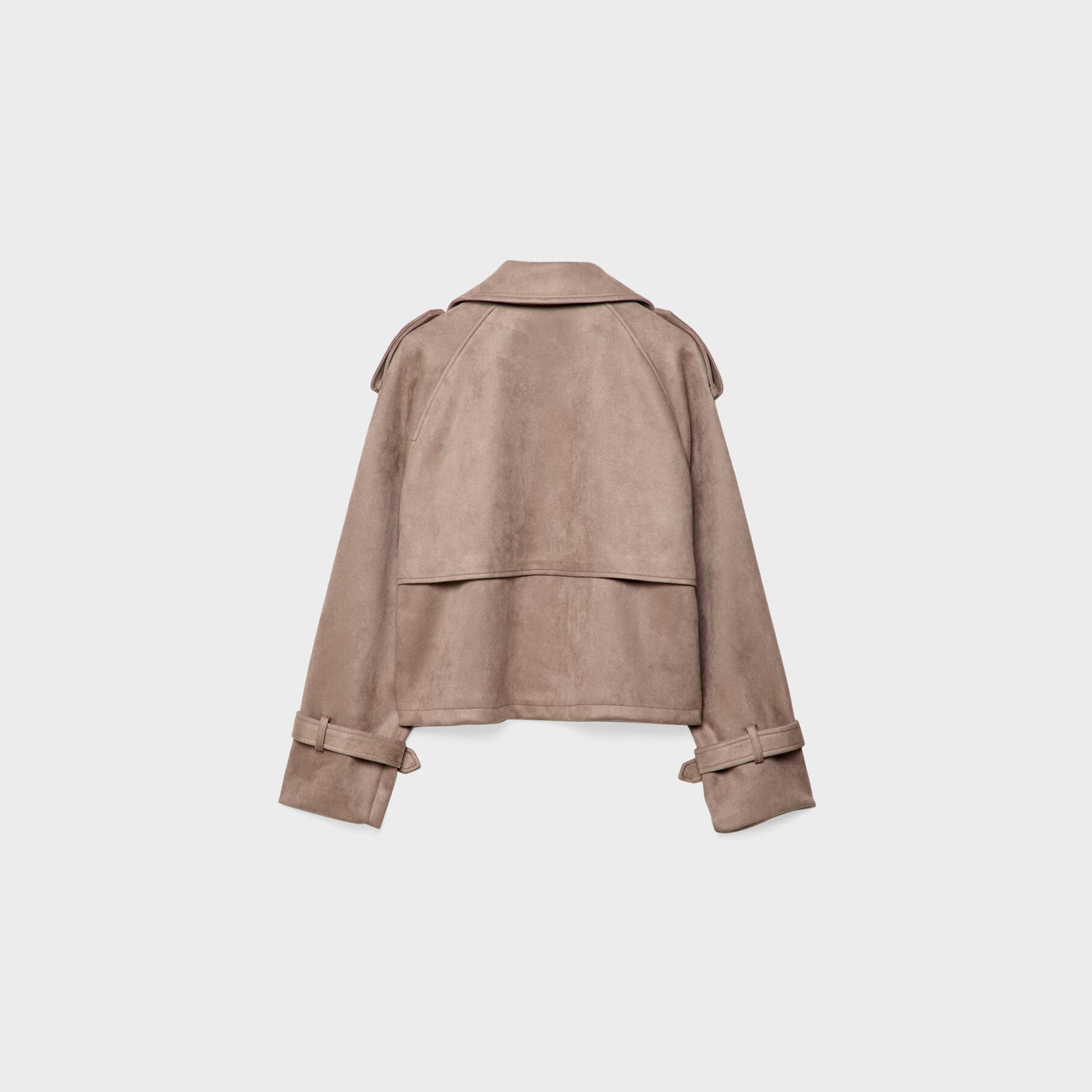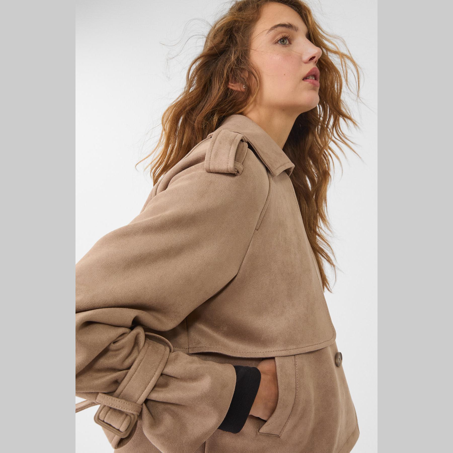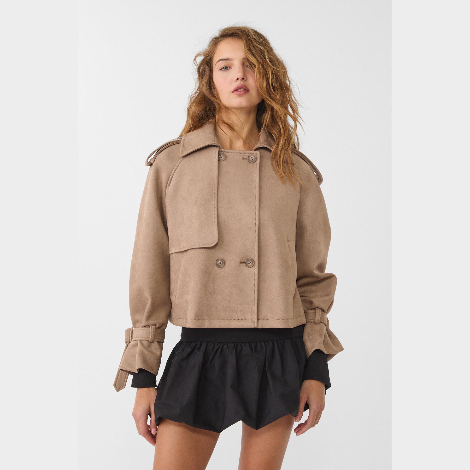 ترنش كوت قصير من الجلد الصناعي السويدي – كراميل من Stradivarius