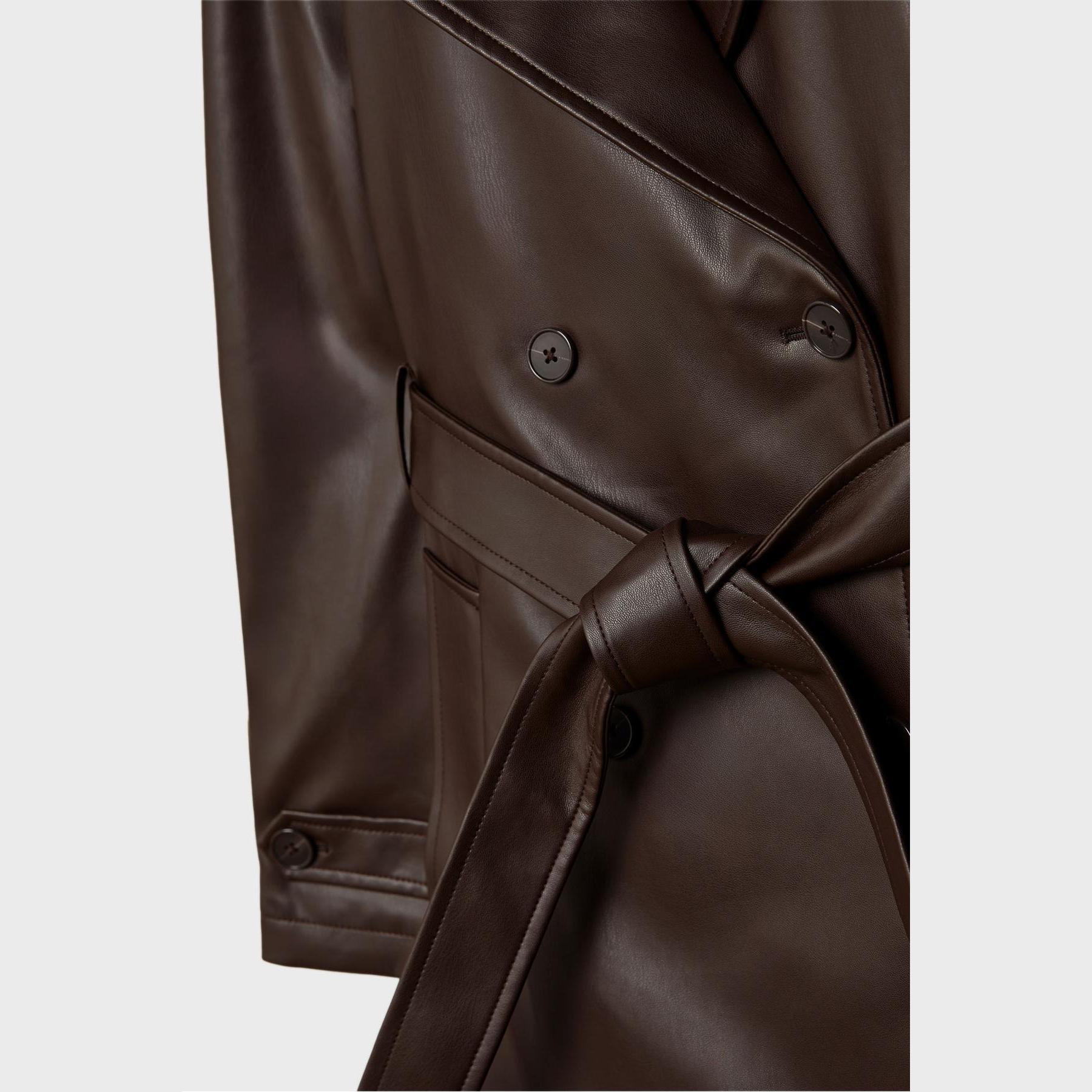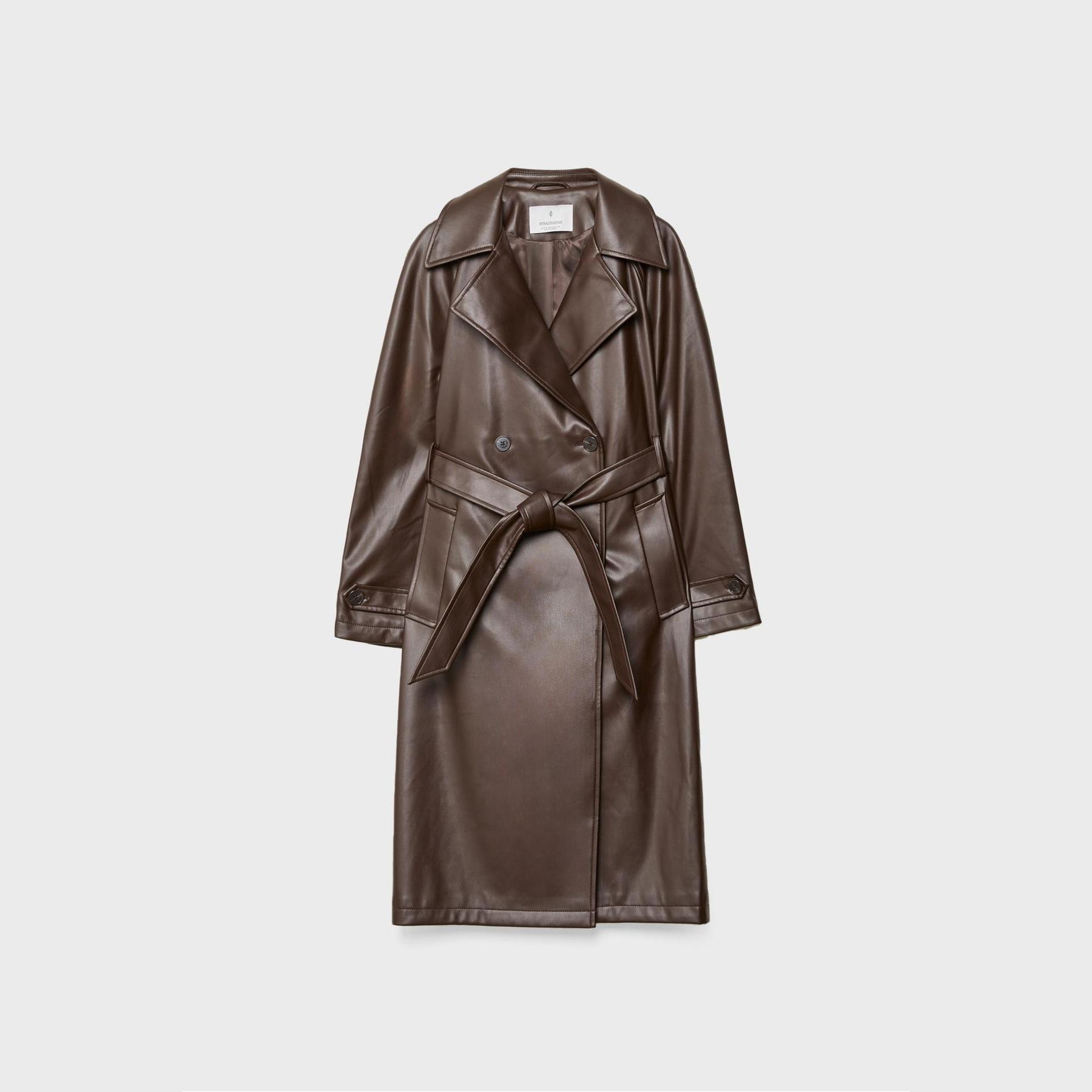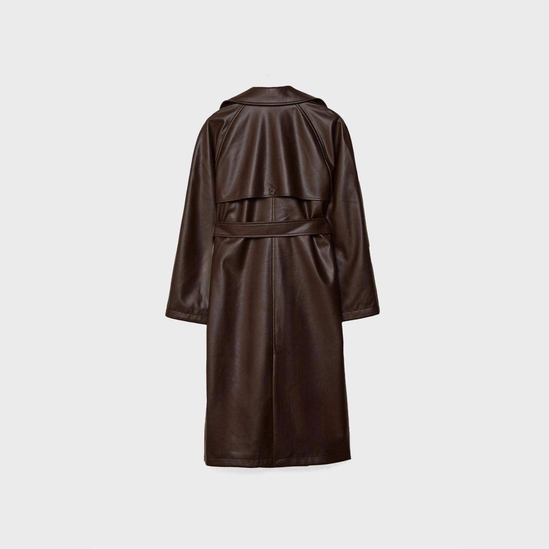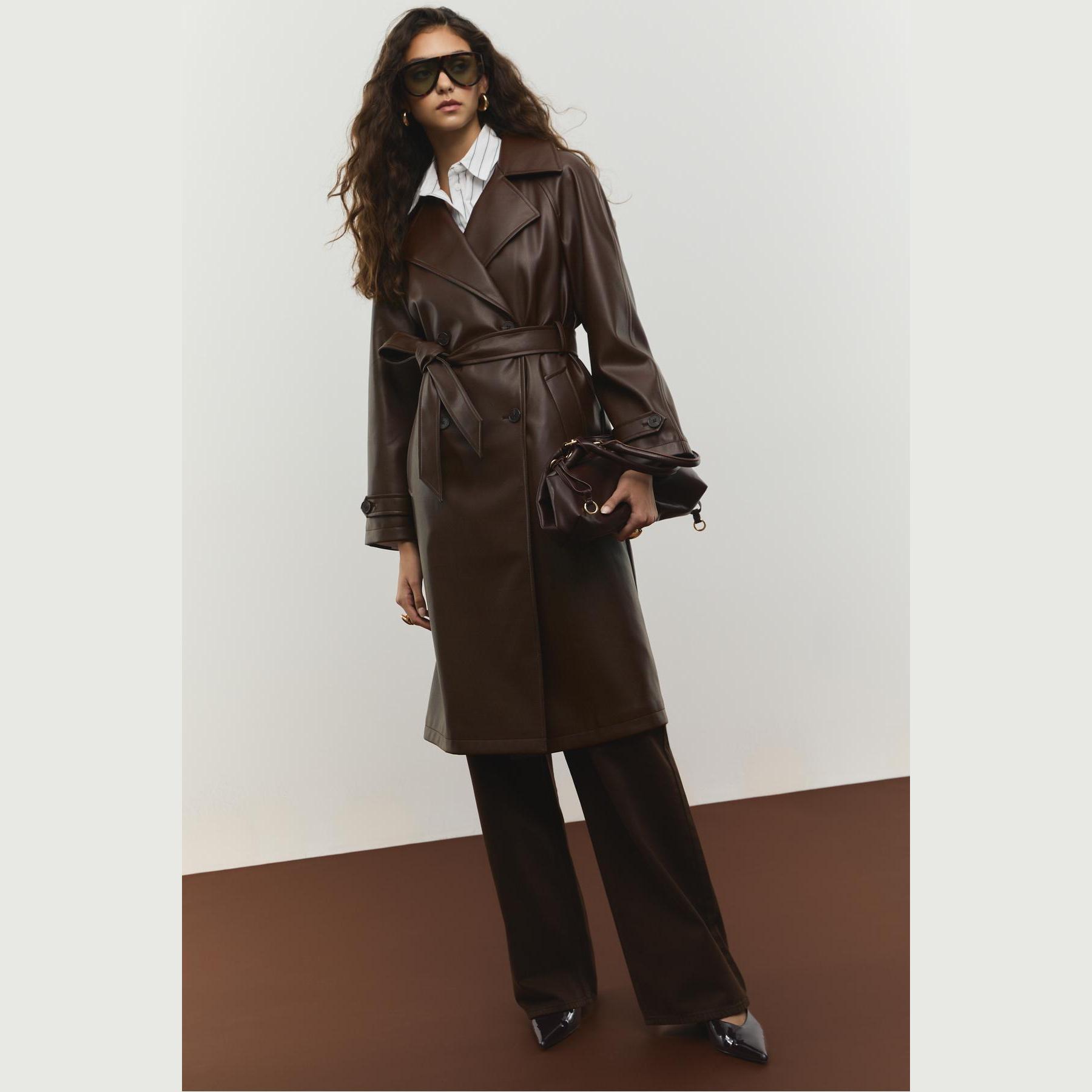 ترنش كوت طويل من الجلد الصناعي – بني من Stradivarius