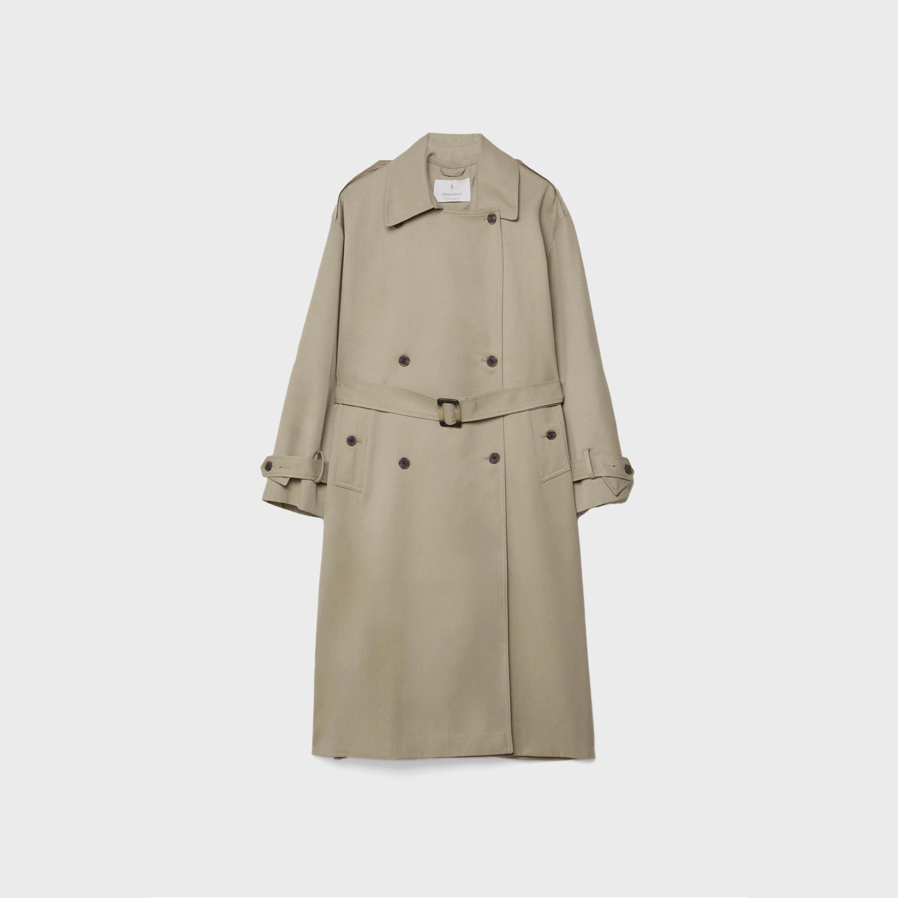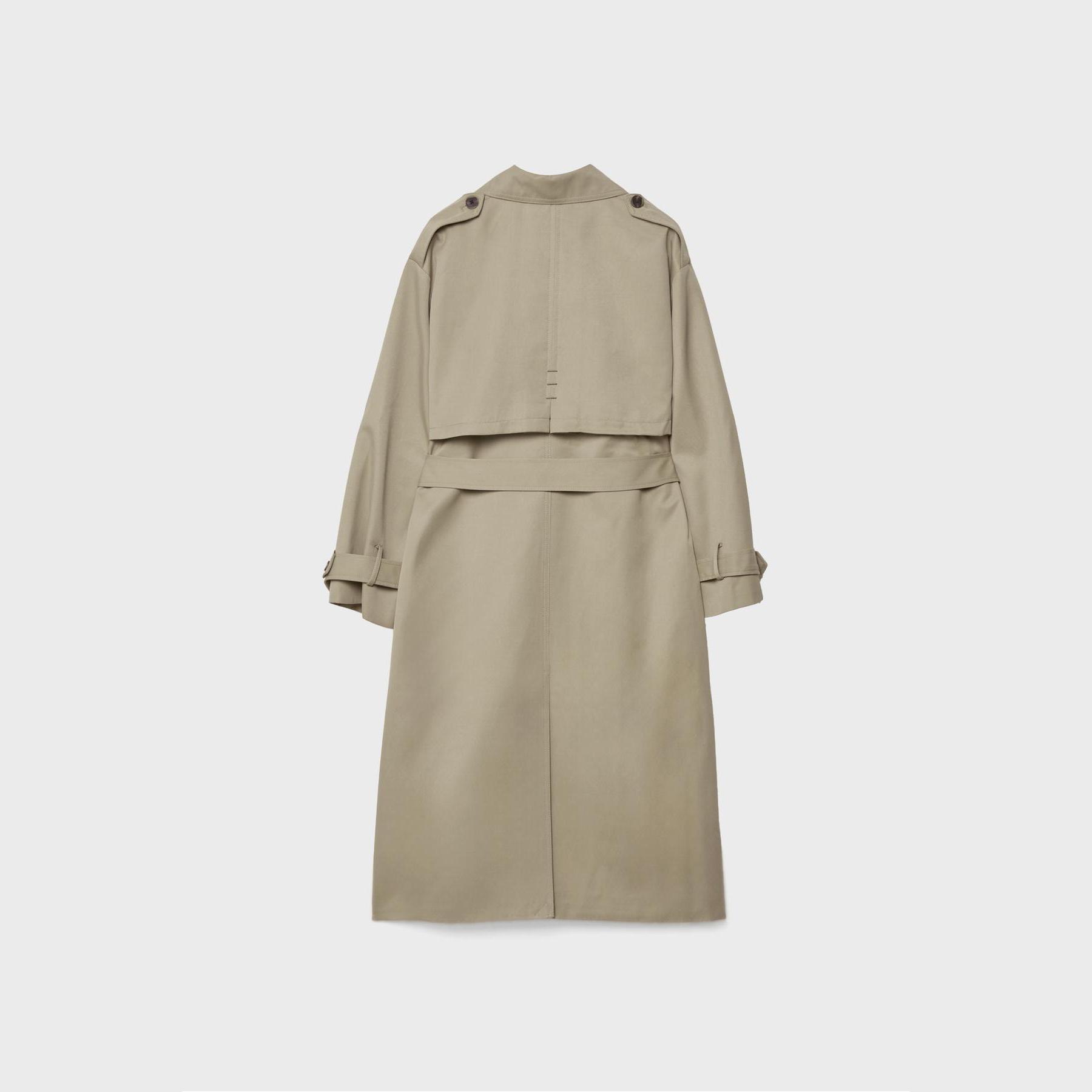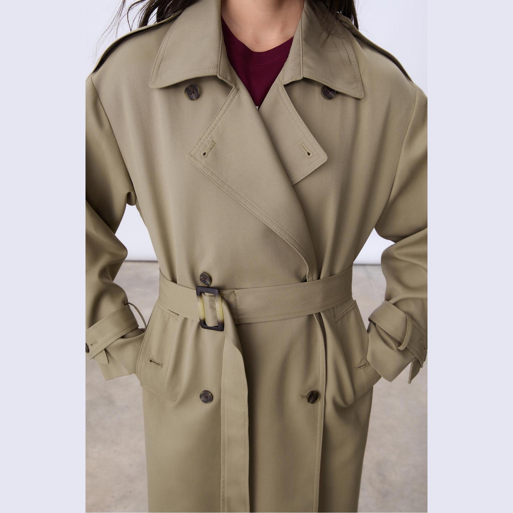 ترنش كوت طويل بقصة مستقيمة وحزام خصر – زيتي من Stradivarius