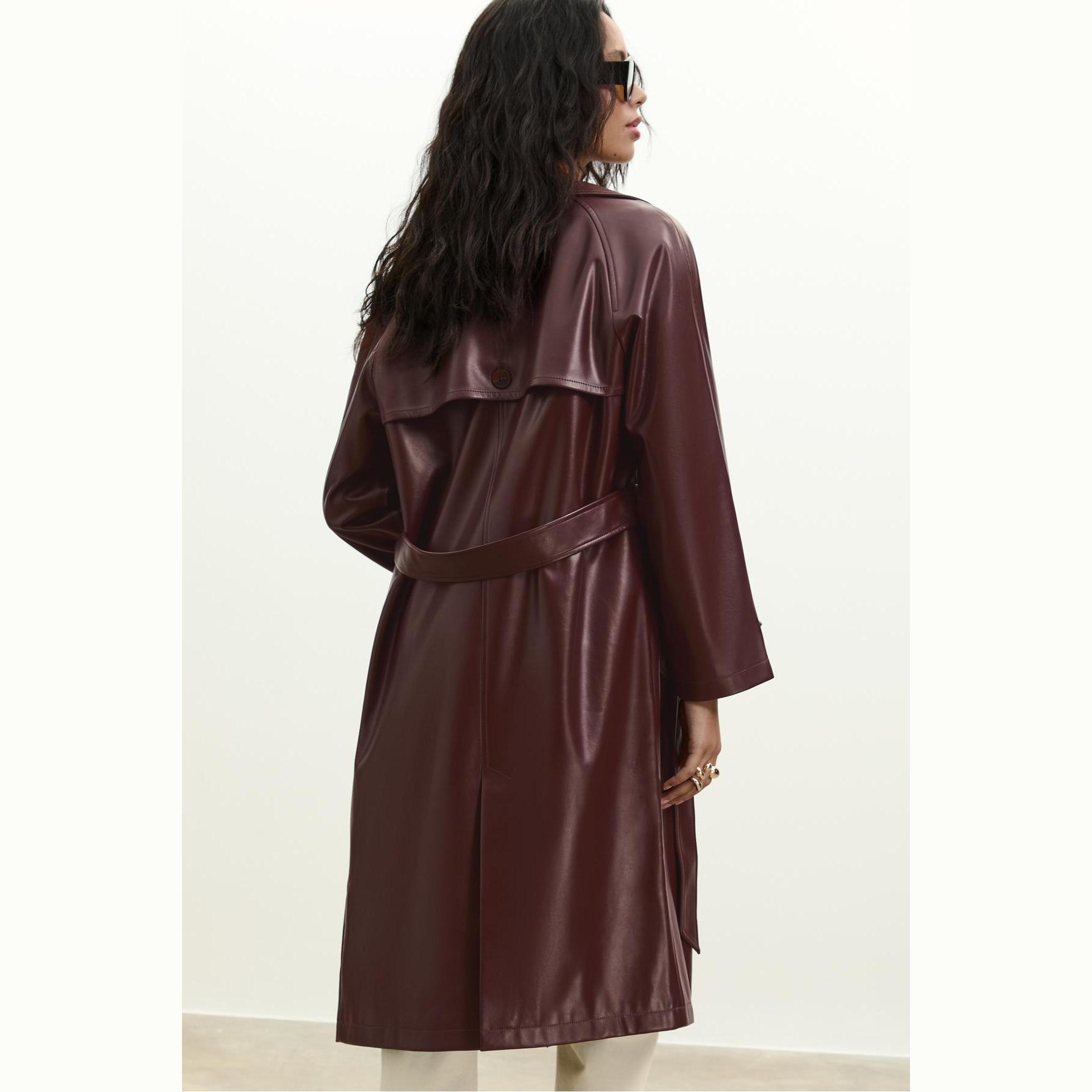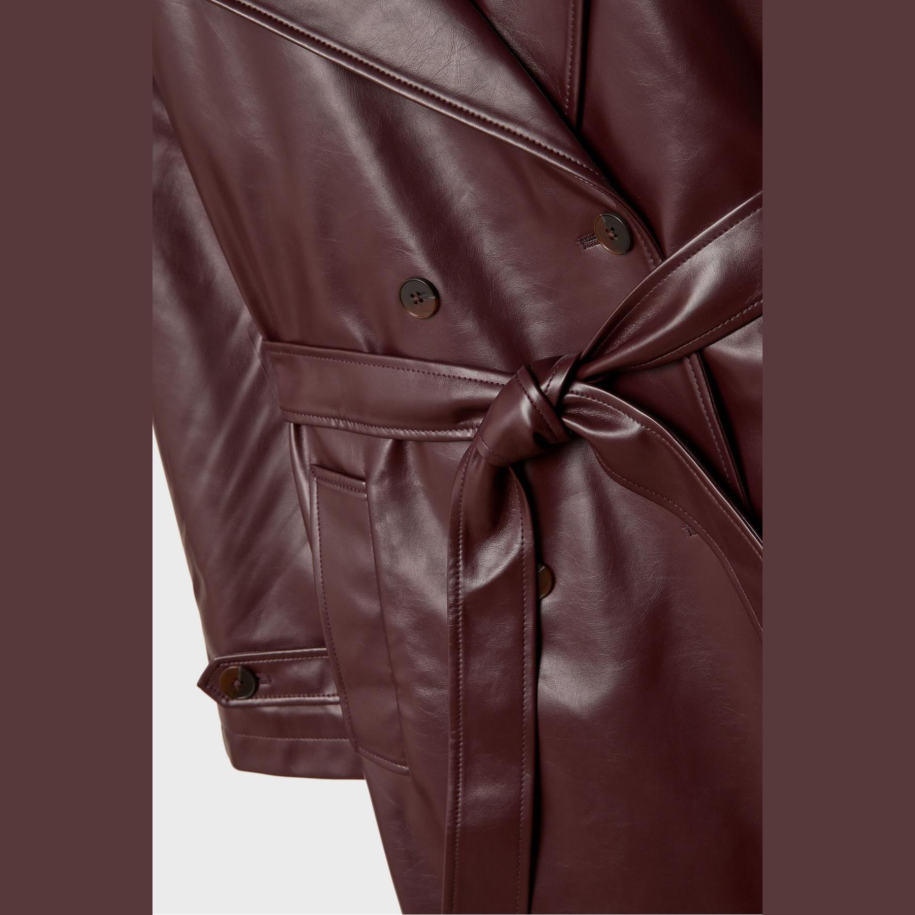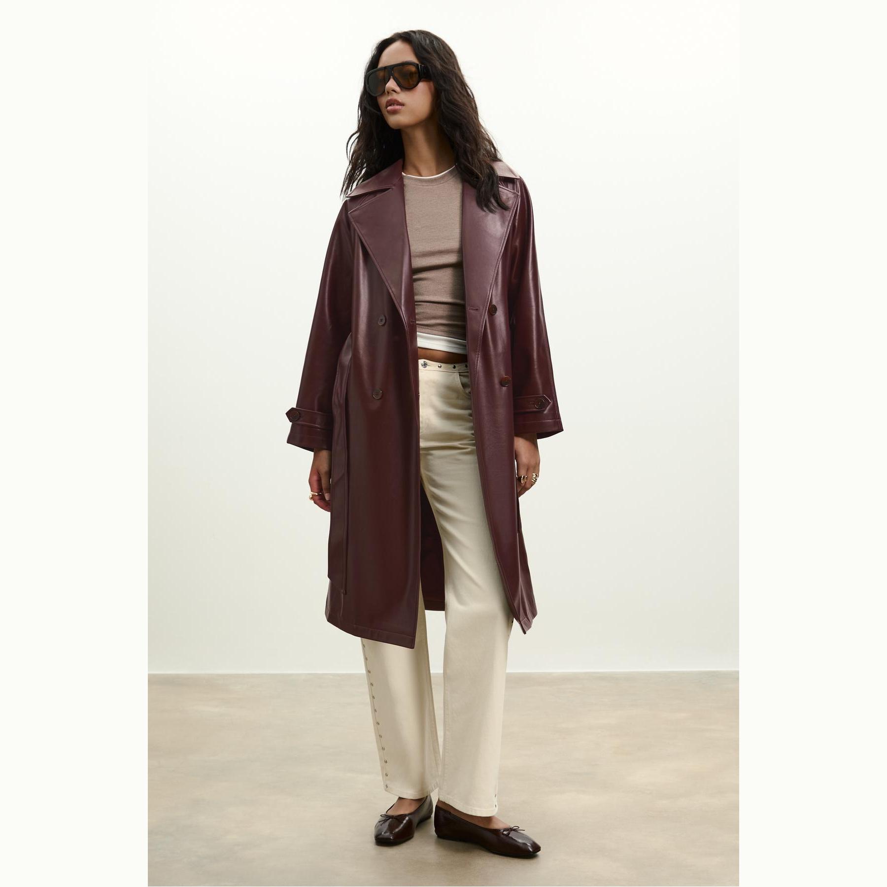 ترنش كوت طويل من الجلد الصناعي – بوردو من Stradivarius