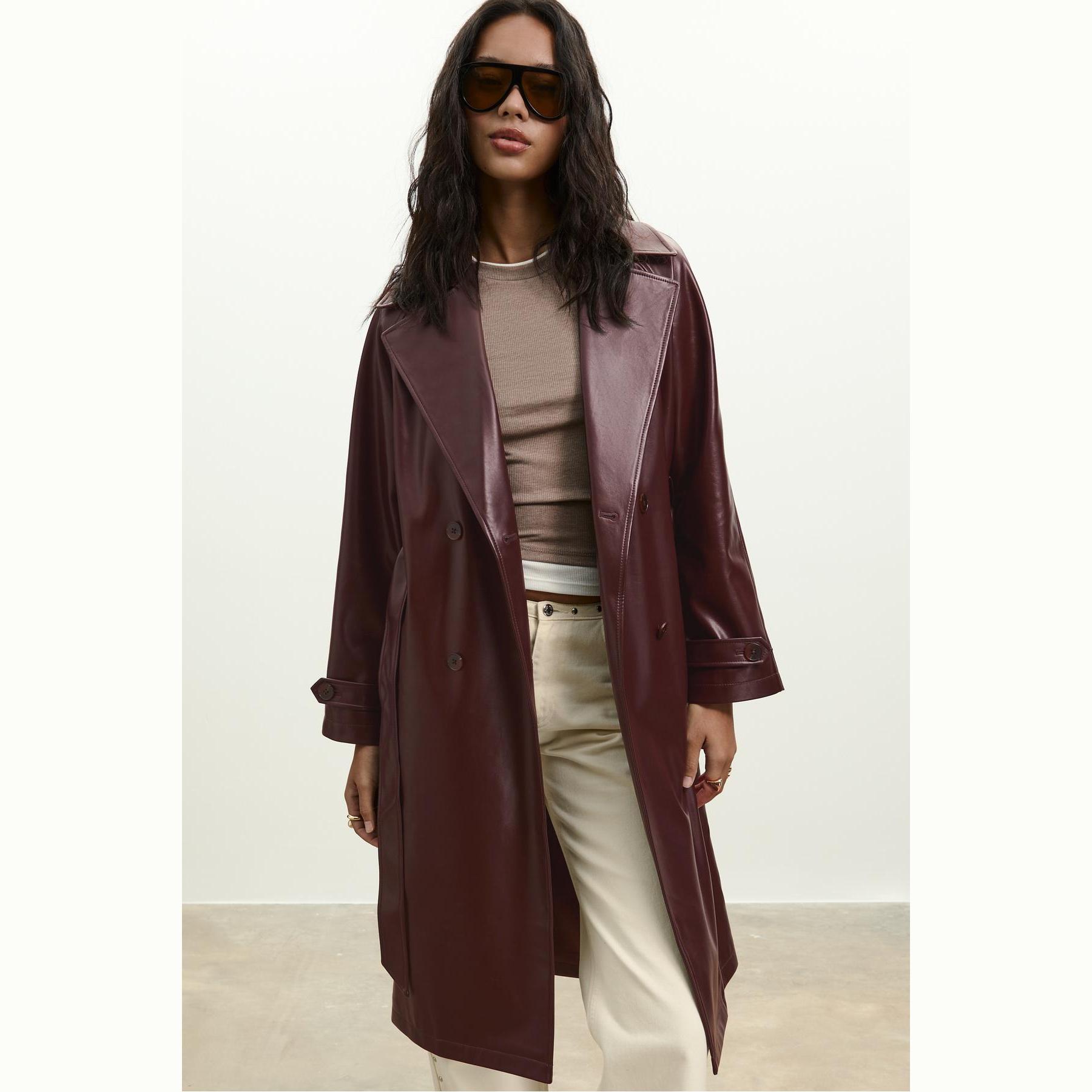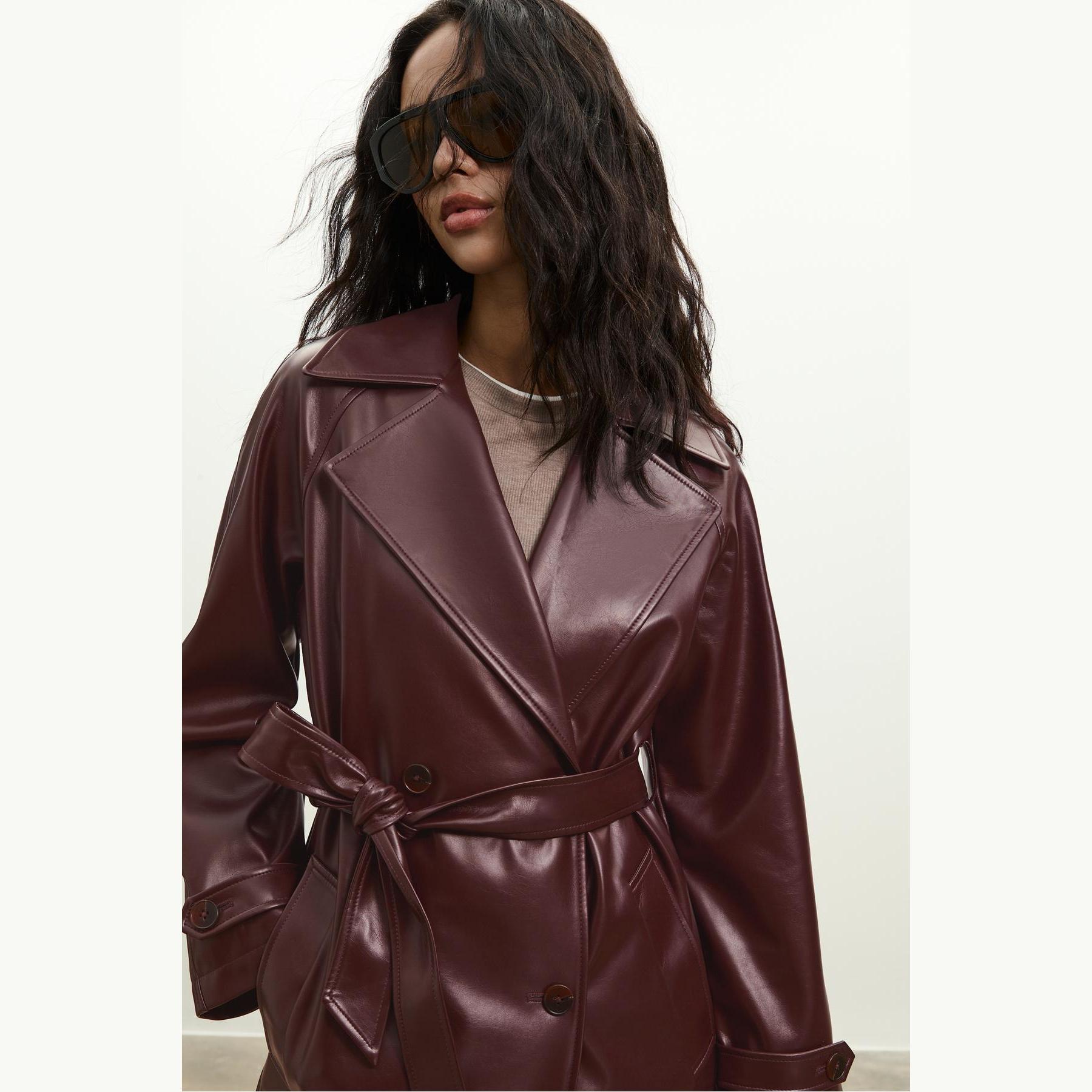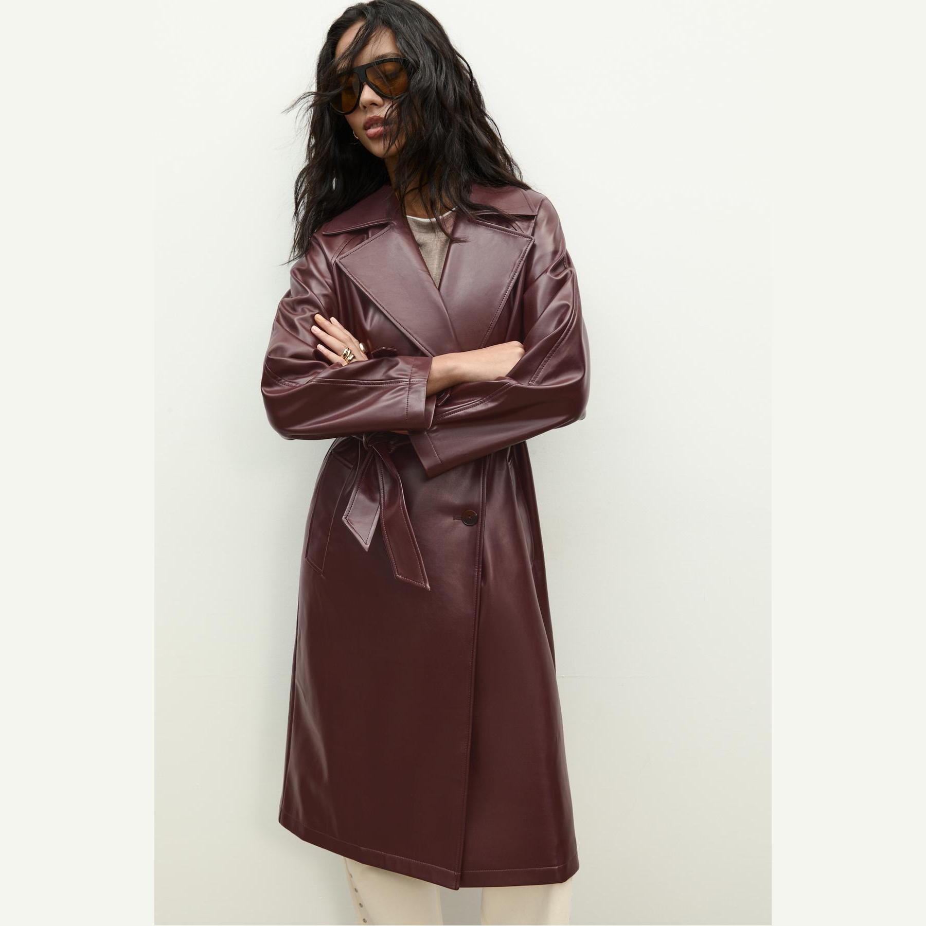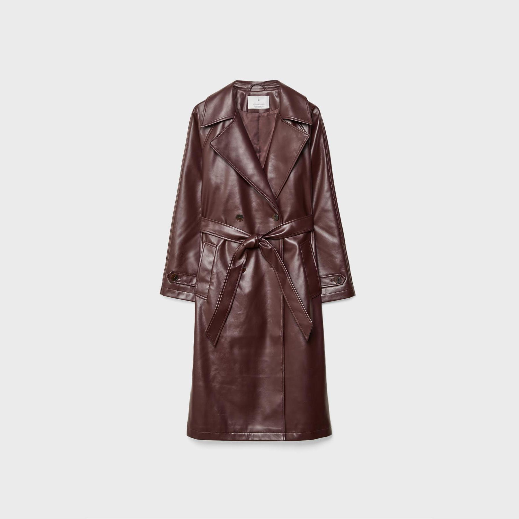 ترنش كوت طويل من الجلد الصناعي – بوردو من Stradivarius
