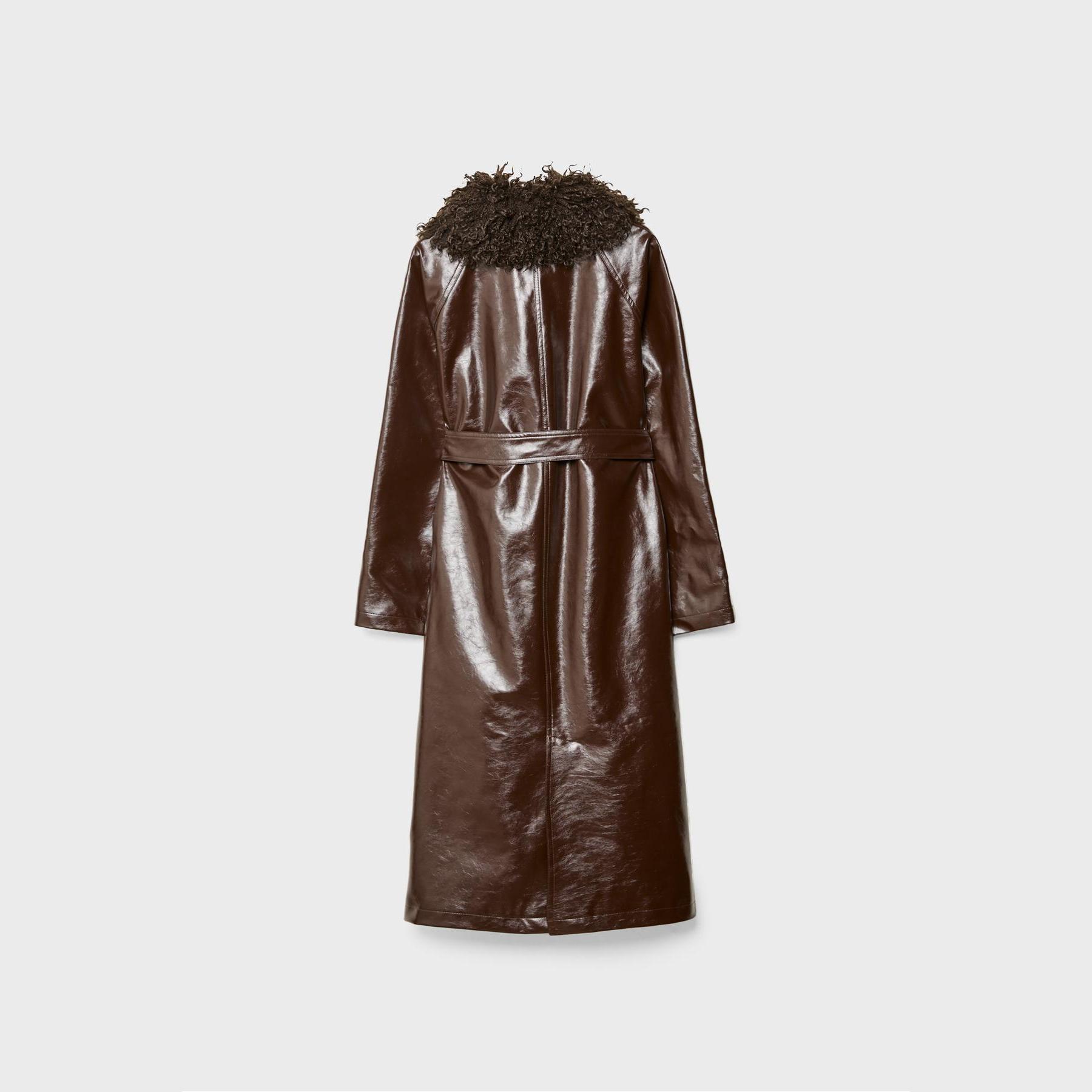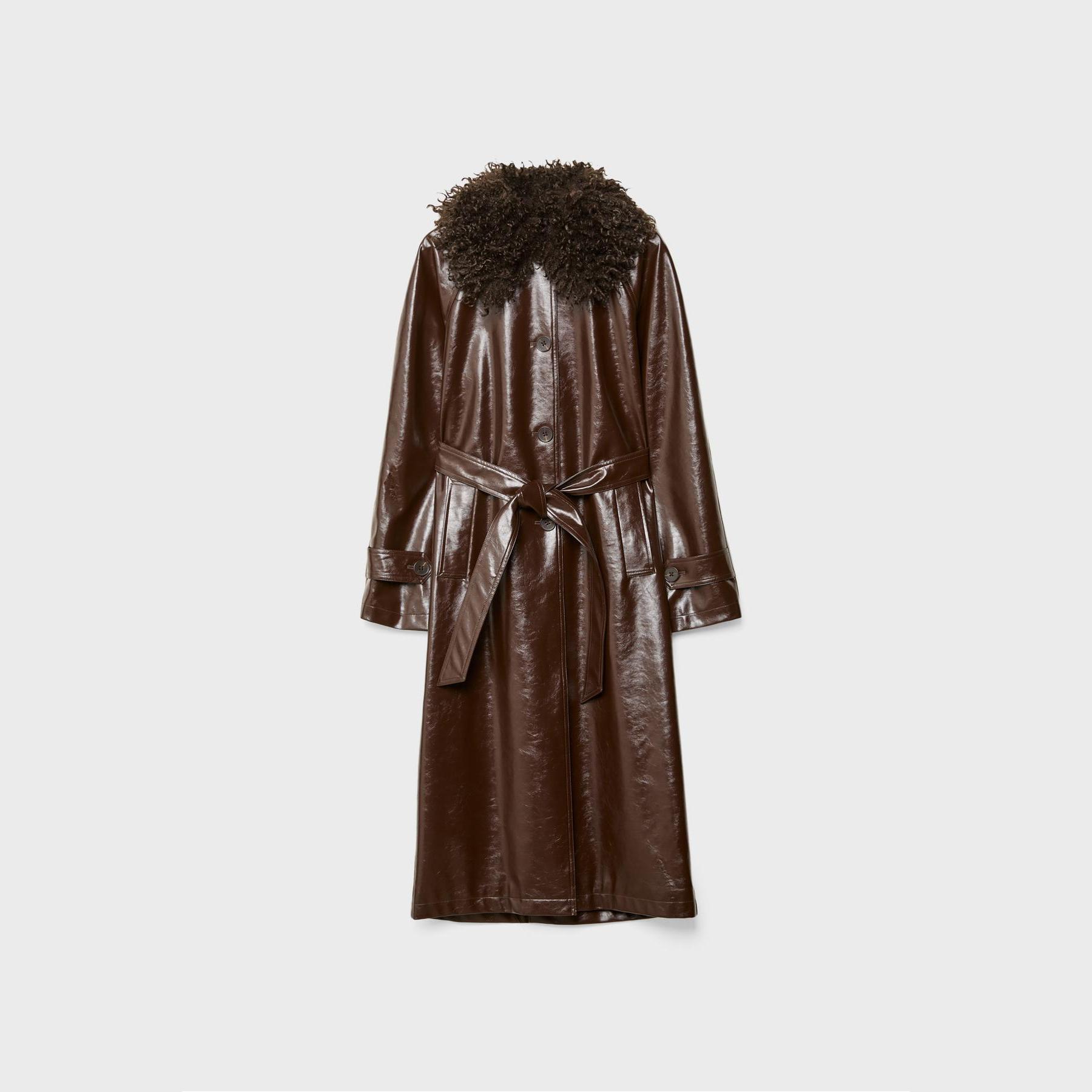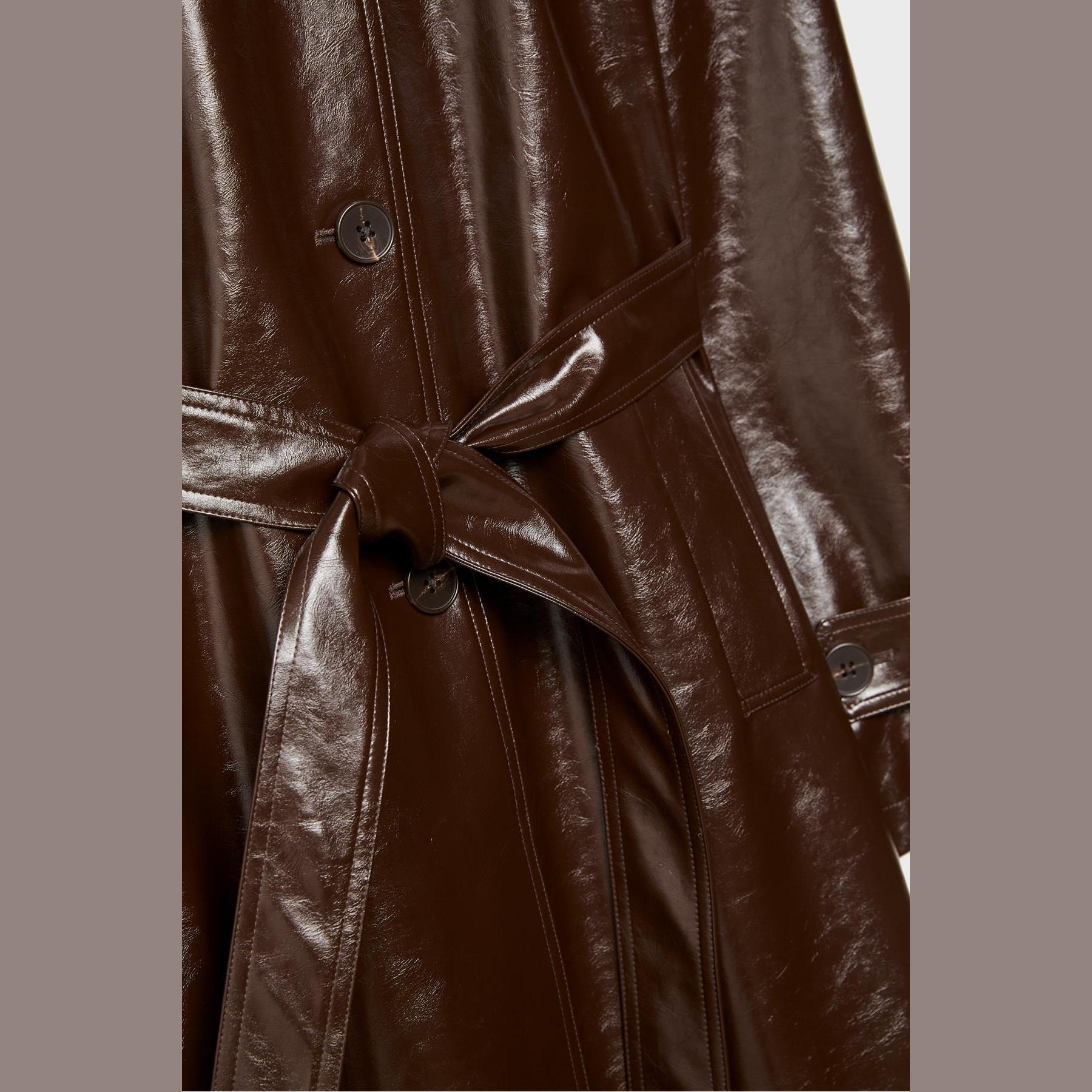 ترنش كوت طويل من الجلد الصناعي – بني من Stradivarius