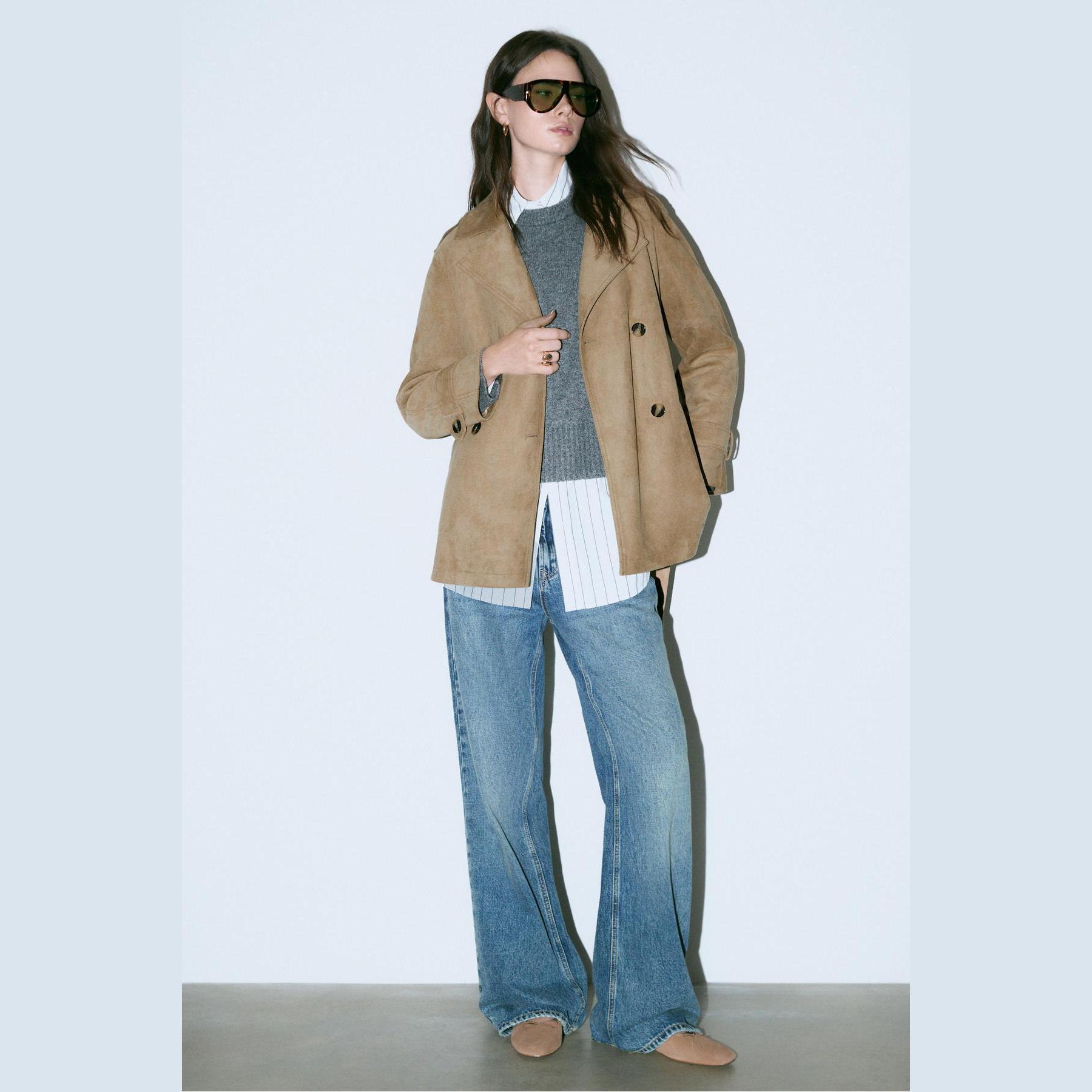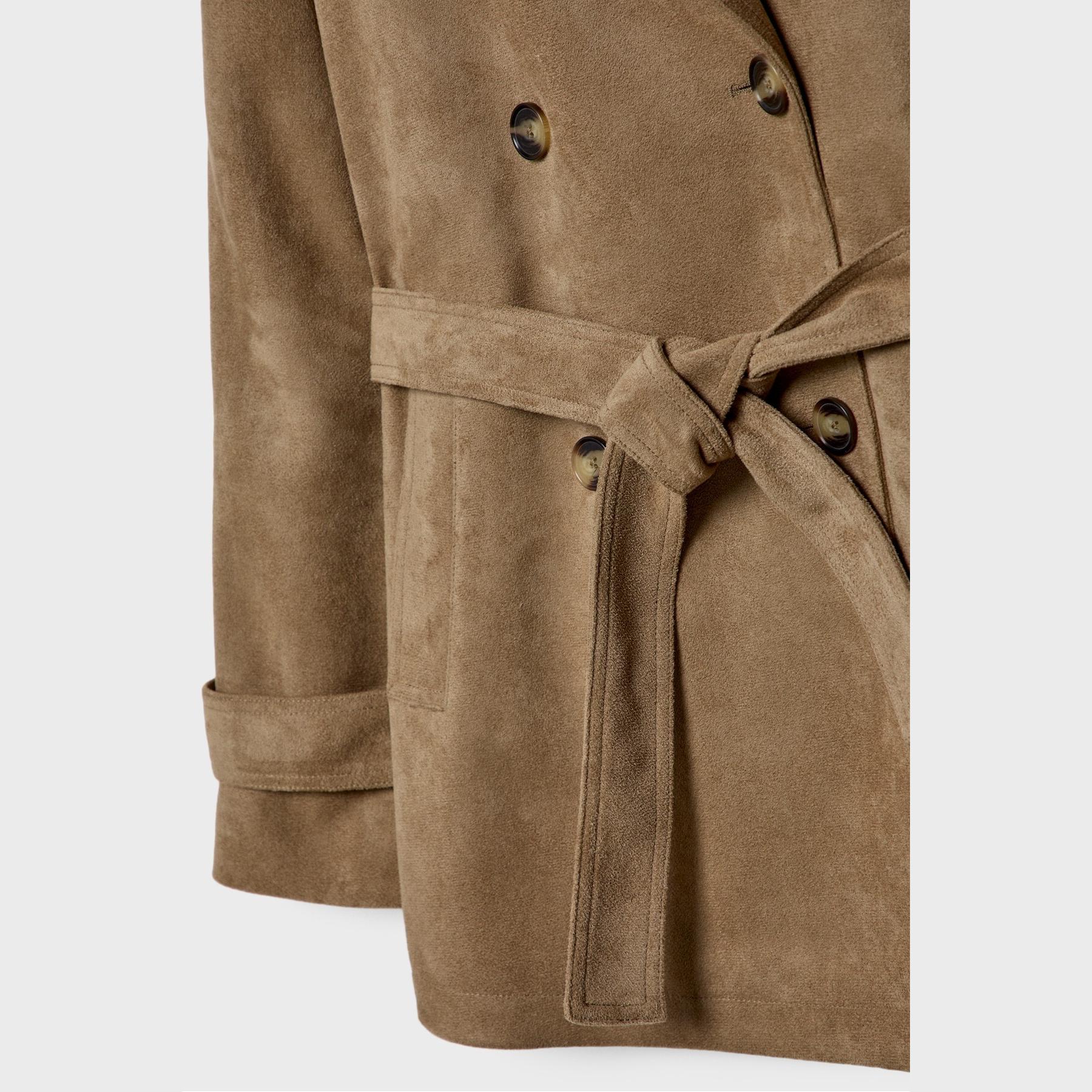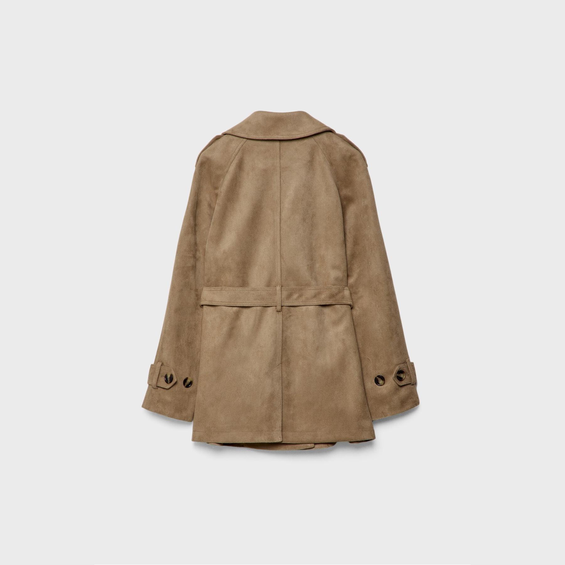 ترنش كوت بطول قياسي من الجلد الصناعي السويدي – كريمي من Stradivarius