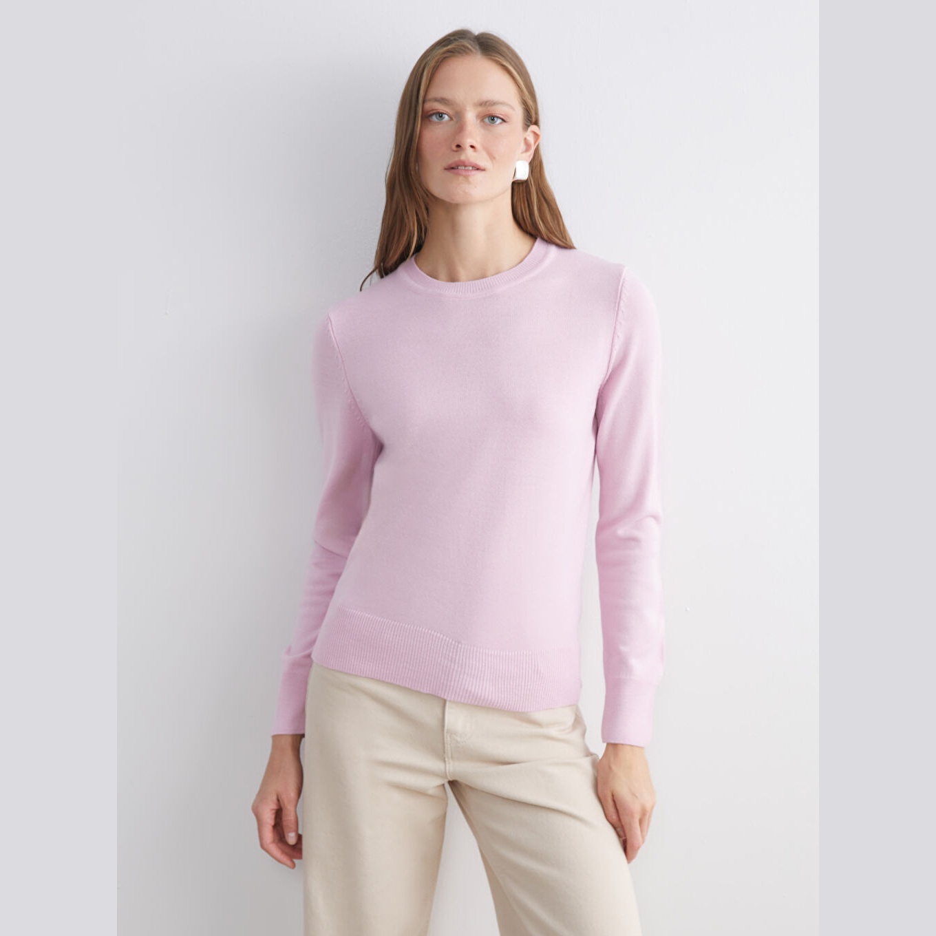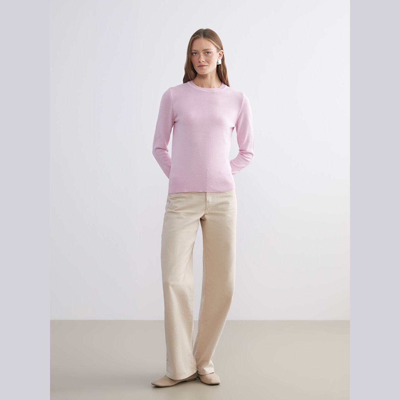 كنزة نسائية بياقة دائرية من LCW Comfort – وردي