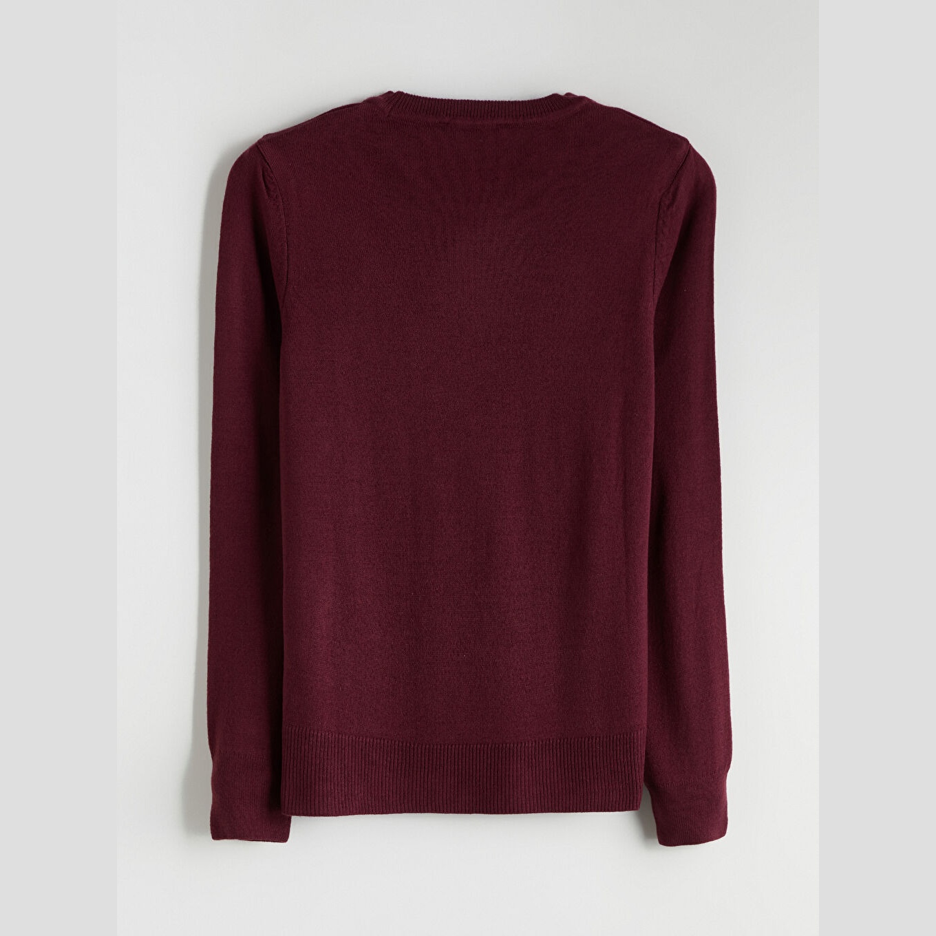 كنزة ناعمة من LC Waikiki Comfort بلون بوردو، مصممة بياقة دائرية (Bisiklet Yaka)، أكمام طويلة، قصة Regular Fit مريحة، خامة تريكو ناعمة مصنوعة بالكامل من ألياف الأكريليك بنسبة 100%، تصميم سادة بدون تفاصيل إضافية، مثالية للتنسيق مع قطع كاجوال أو رسمية لإطلالة خريفية أو شتوية أنيقة وعملية.