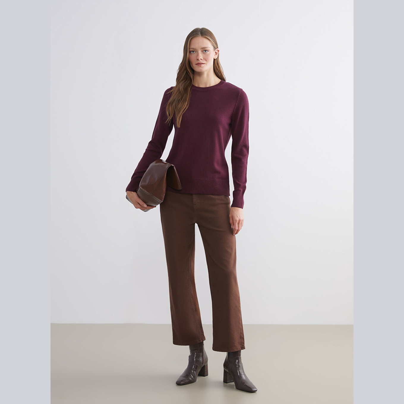 كنزة نسائية بياقة دائرية من LCW Comfort – بوردو