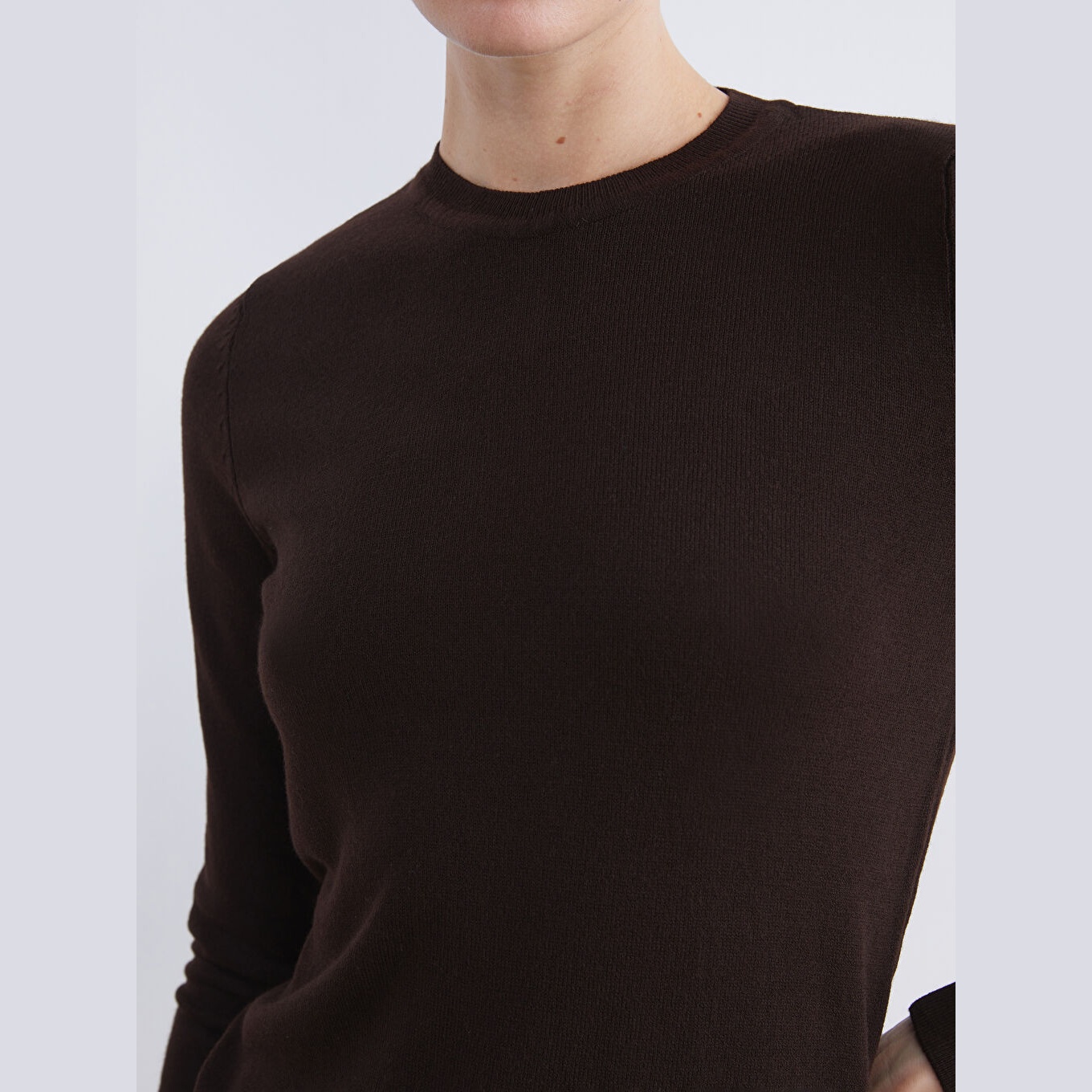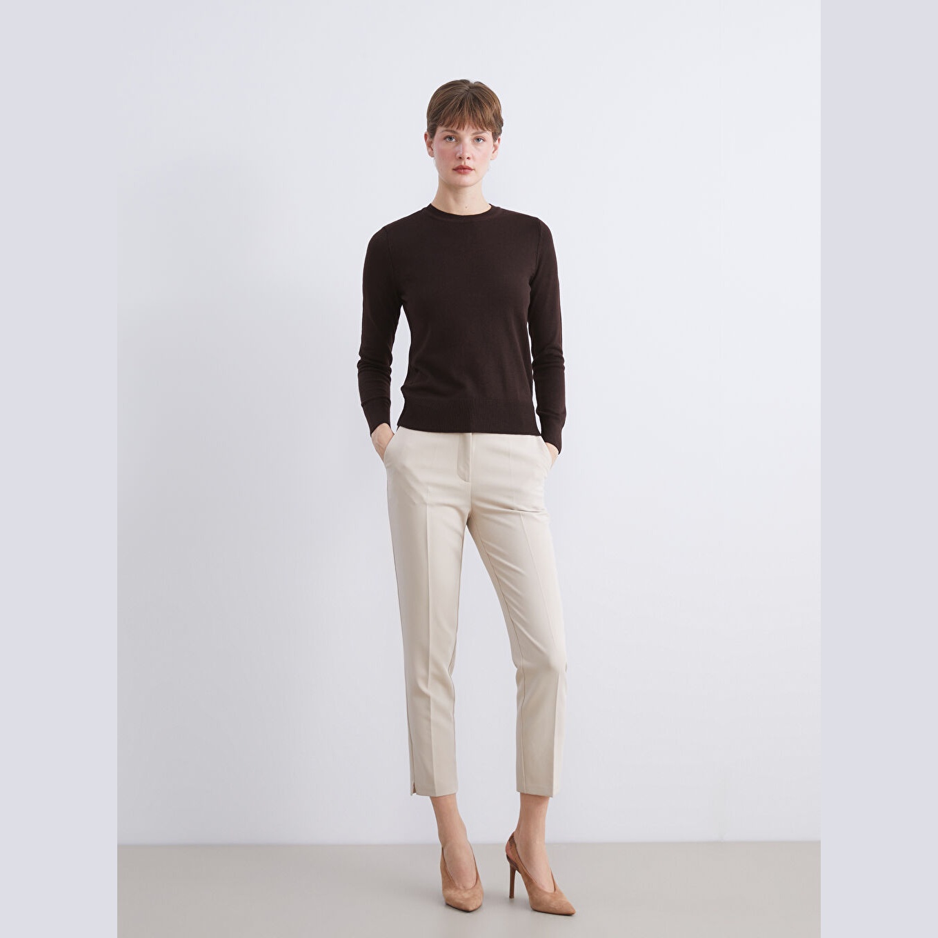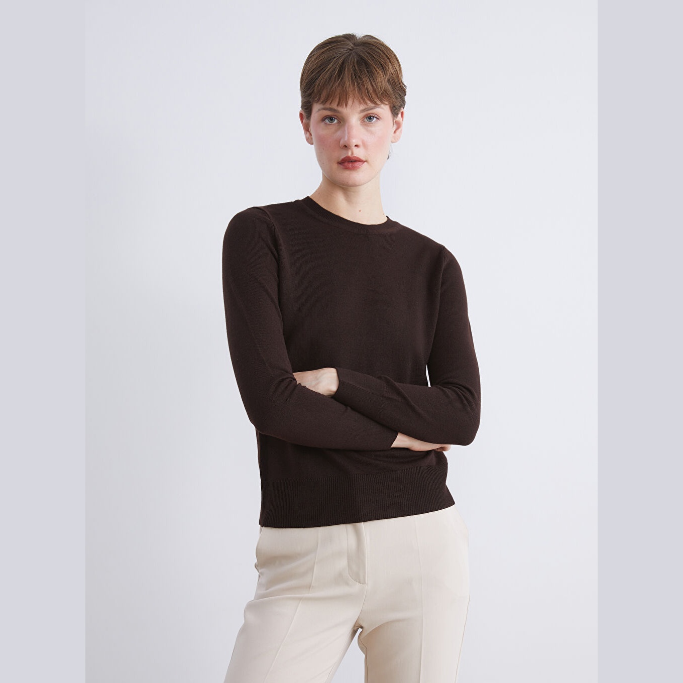 كنزة نسائية بياقة دائرية من LCW Comfort – بني