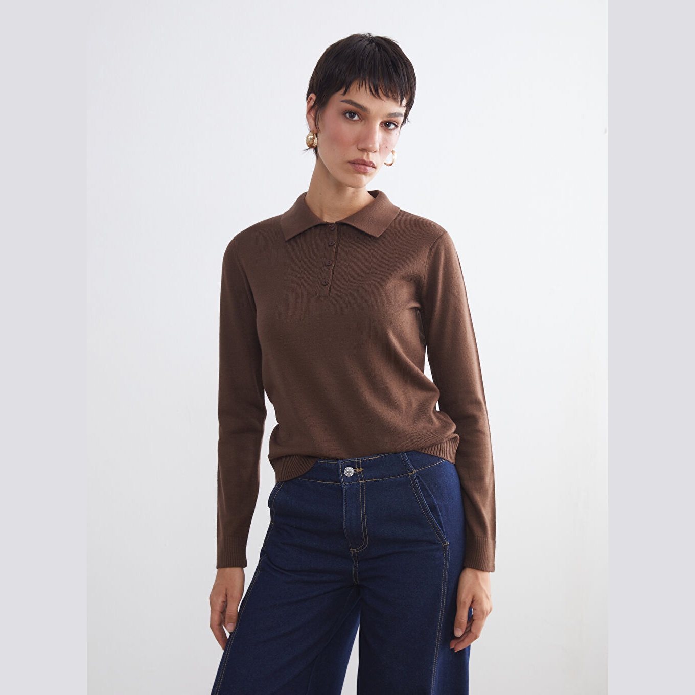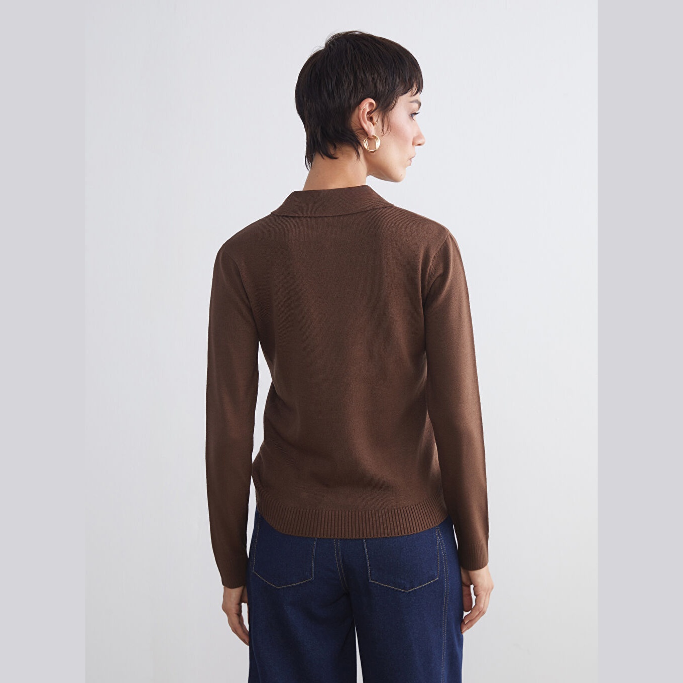 كنزة نسائية بياقة بولو وأزرار من LCW Vision – بني