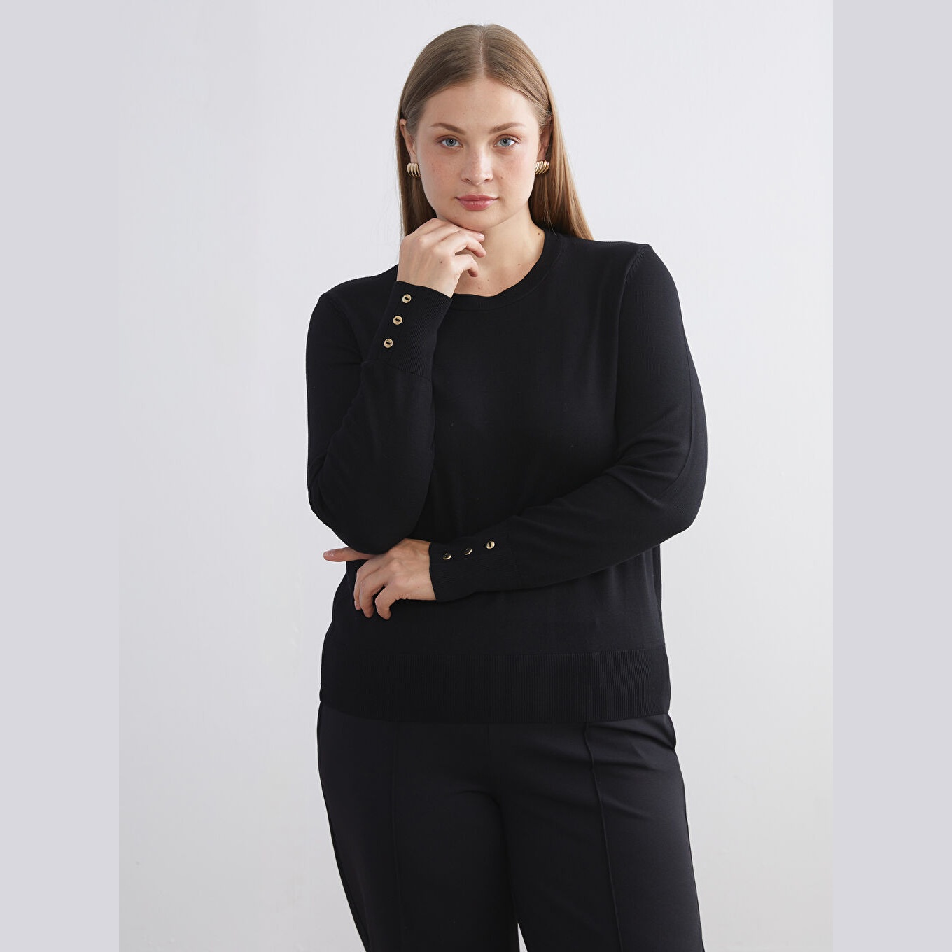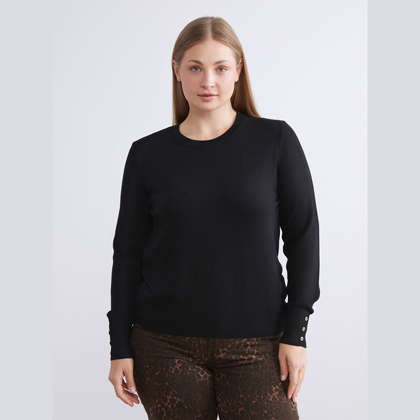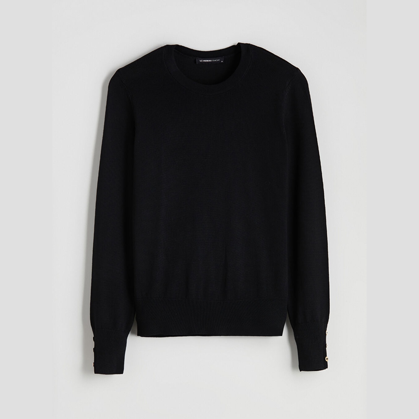 كنزة نسائية بياقة دائرية من LCW Classic – أسود (مقاس كبير)
