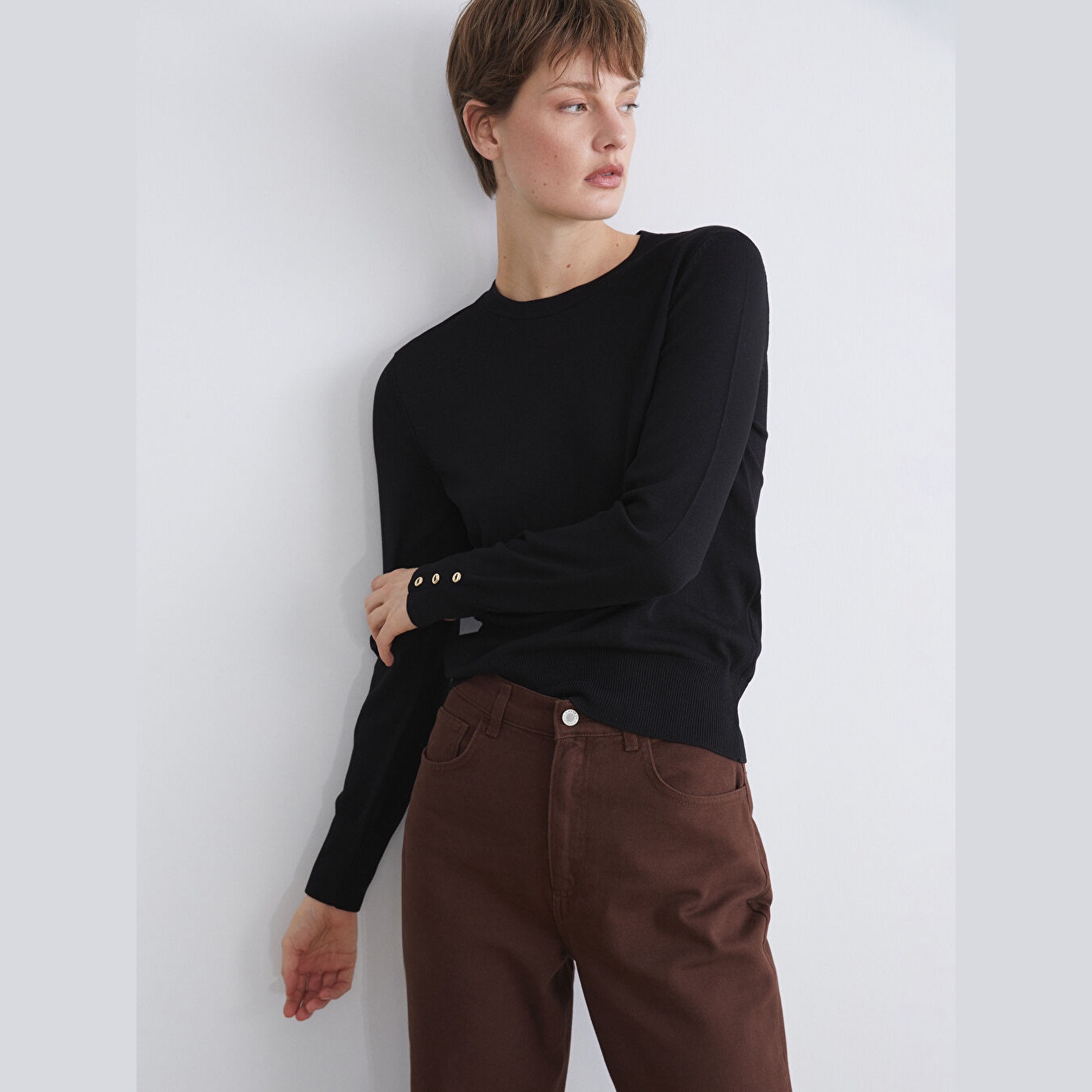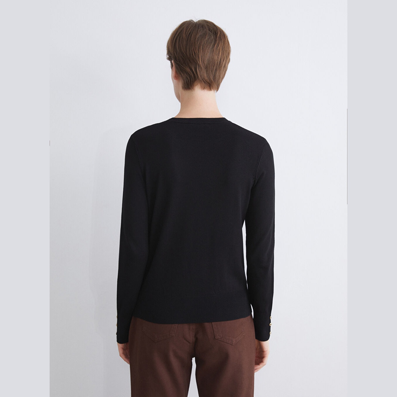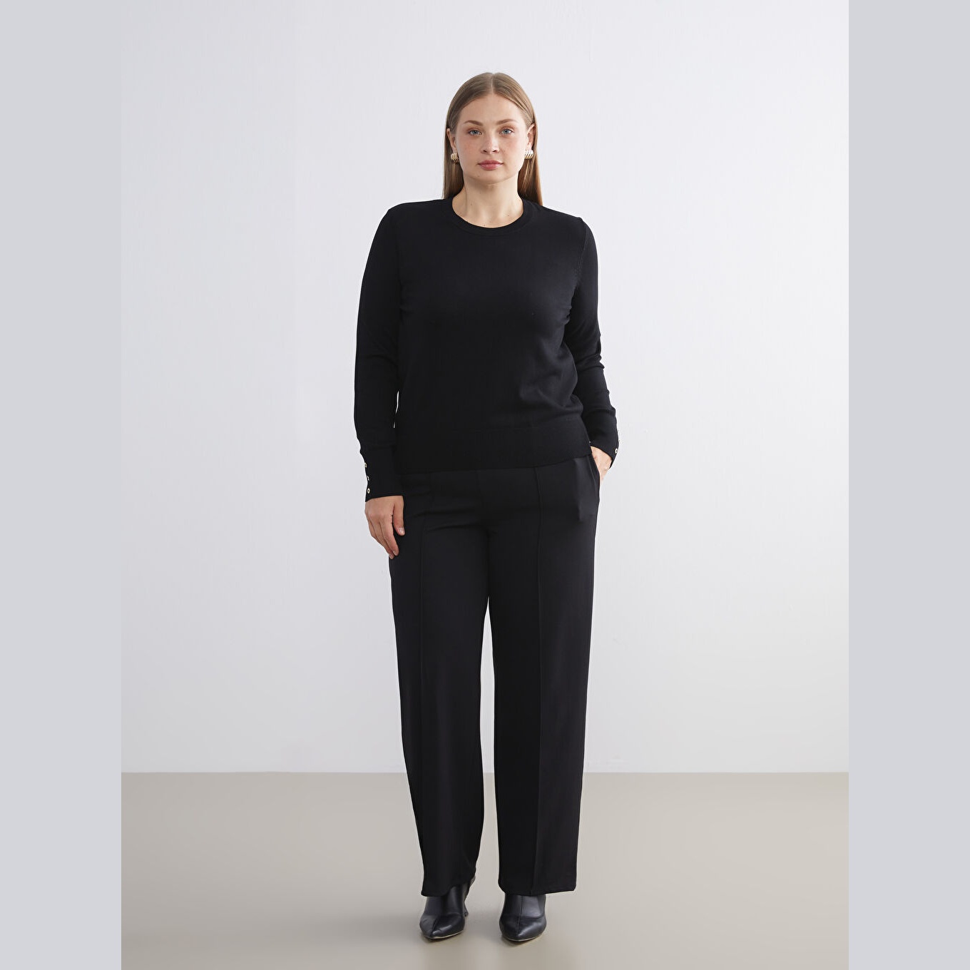 كنزة نسائية بياقة دائرية من LCW Classic – أسود (مقاس كبير)
