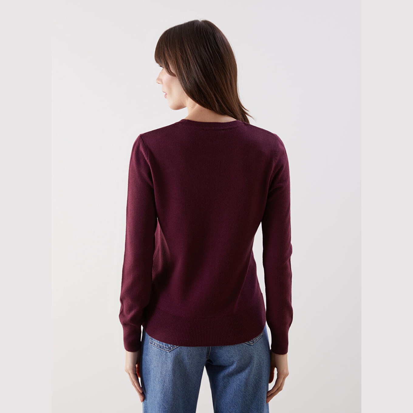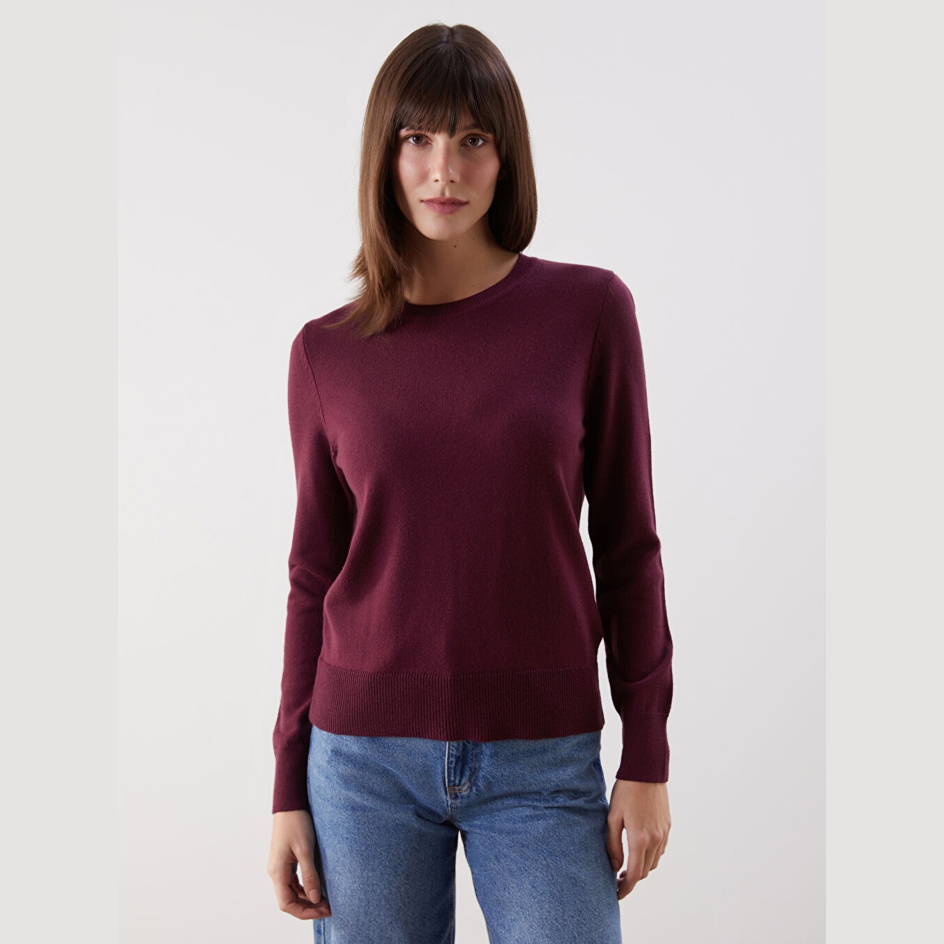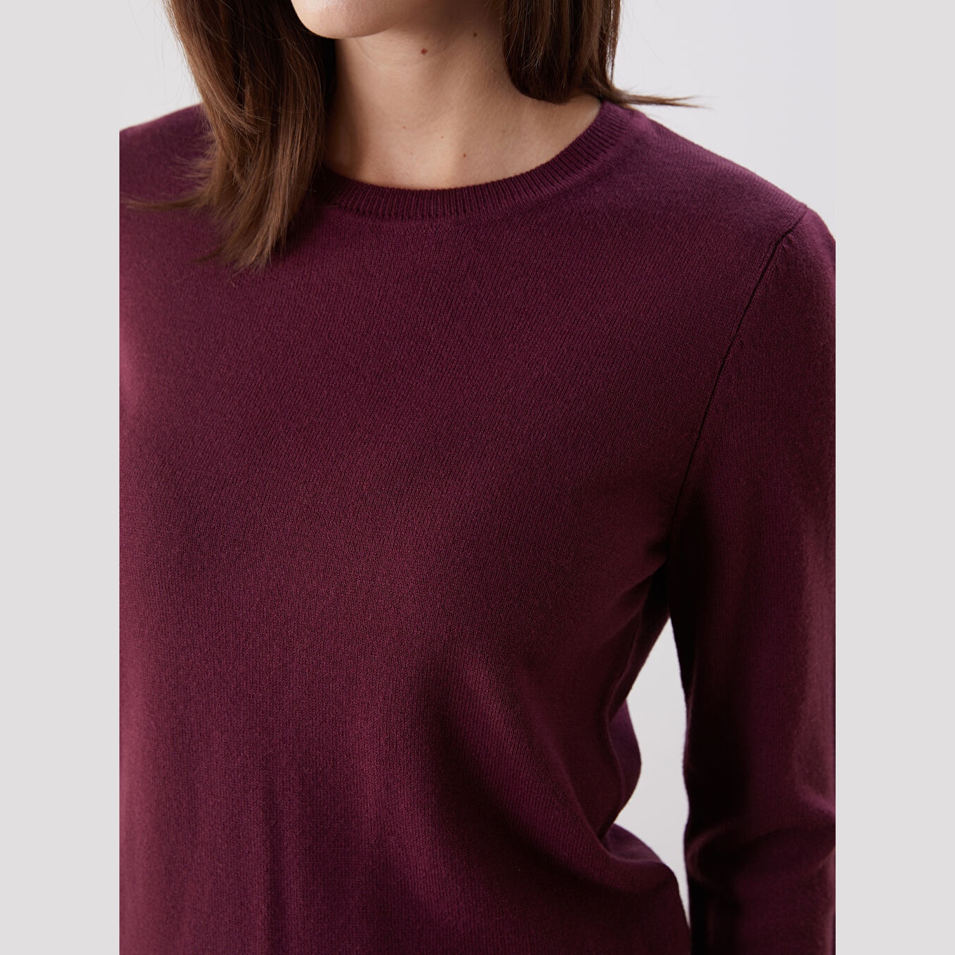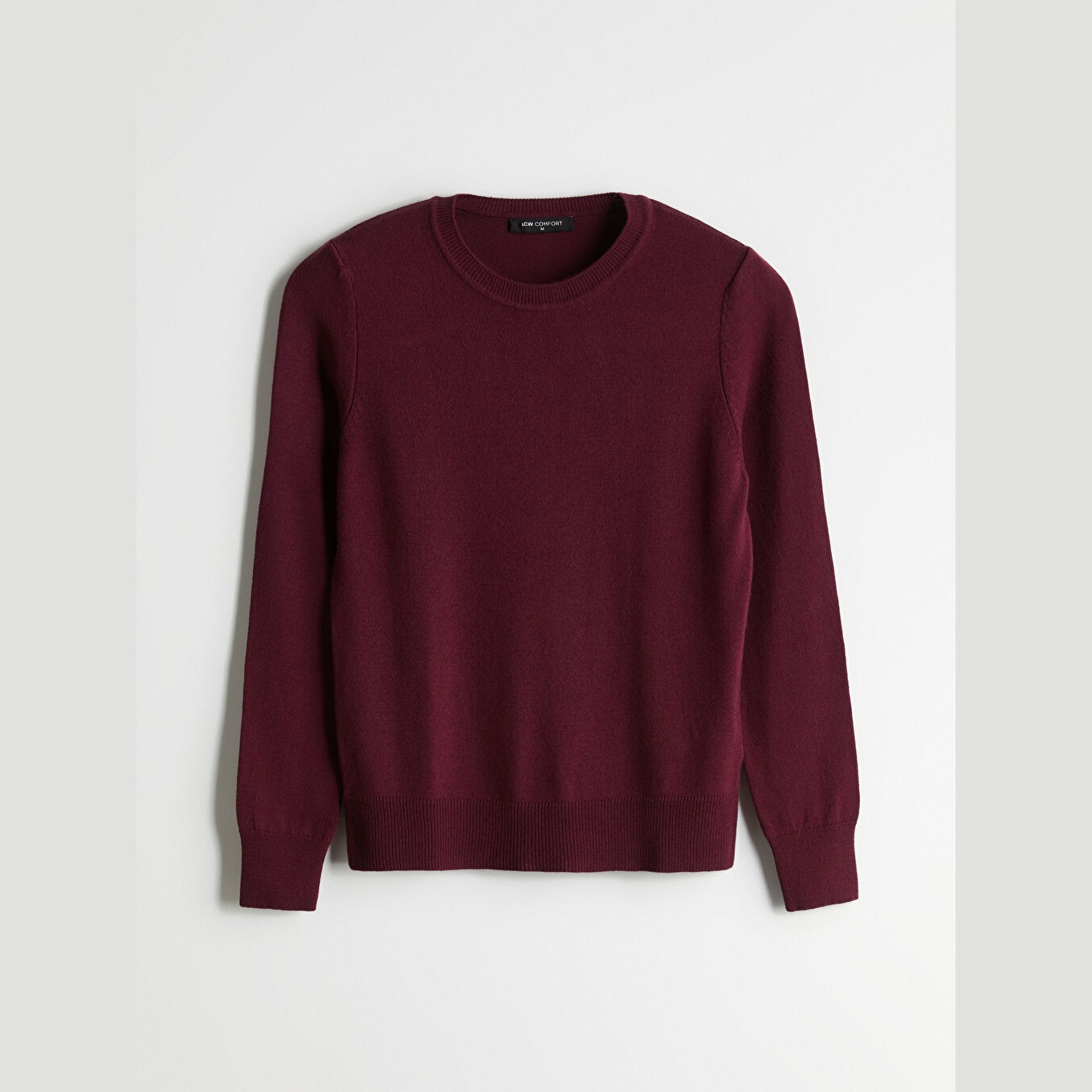 كنزة نسائية بياقة دائرية من LCW Comfort – بوردو (مقاس كبير)