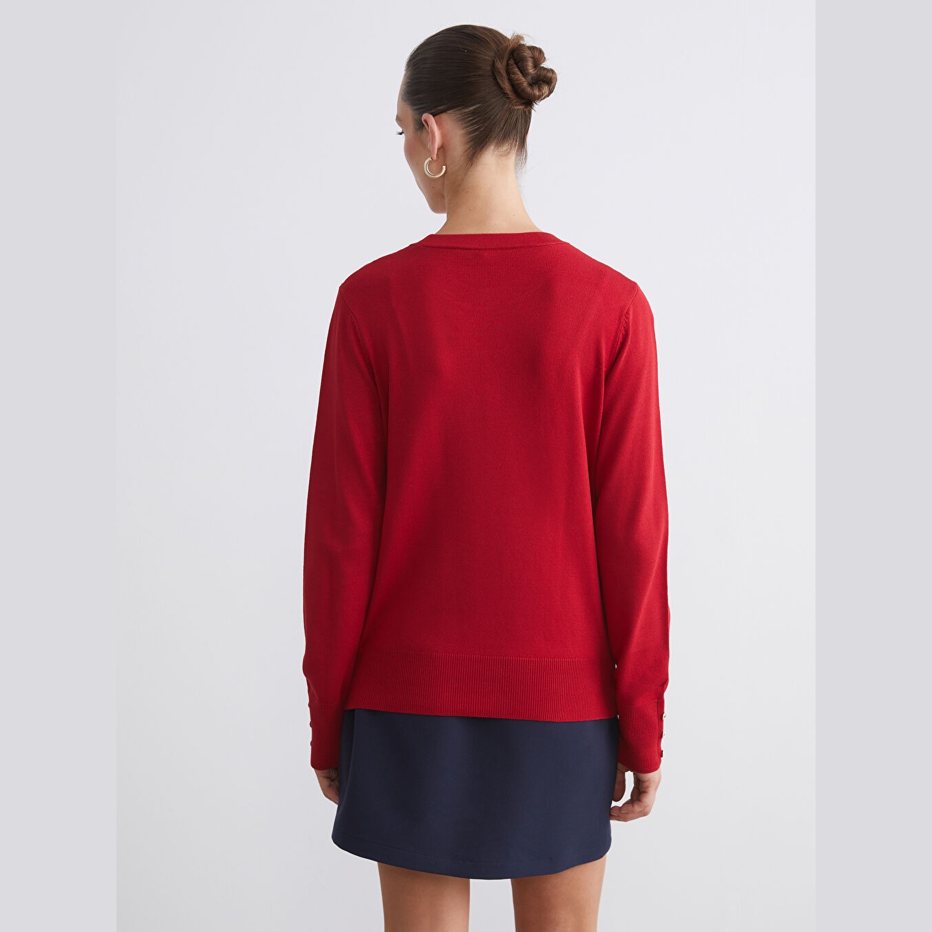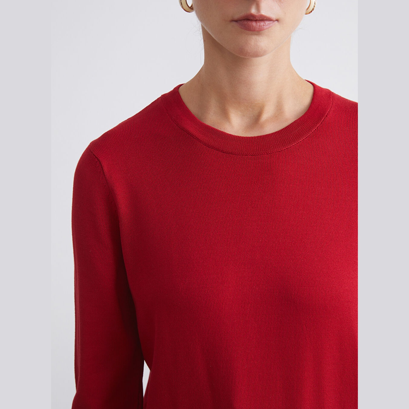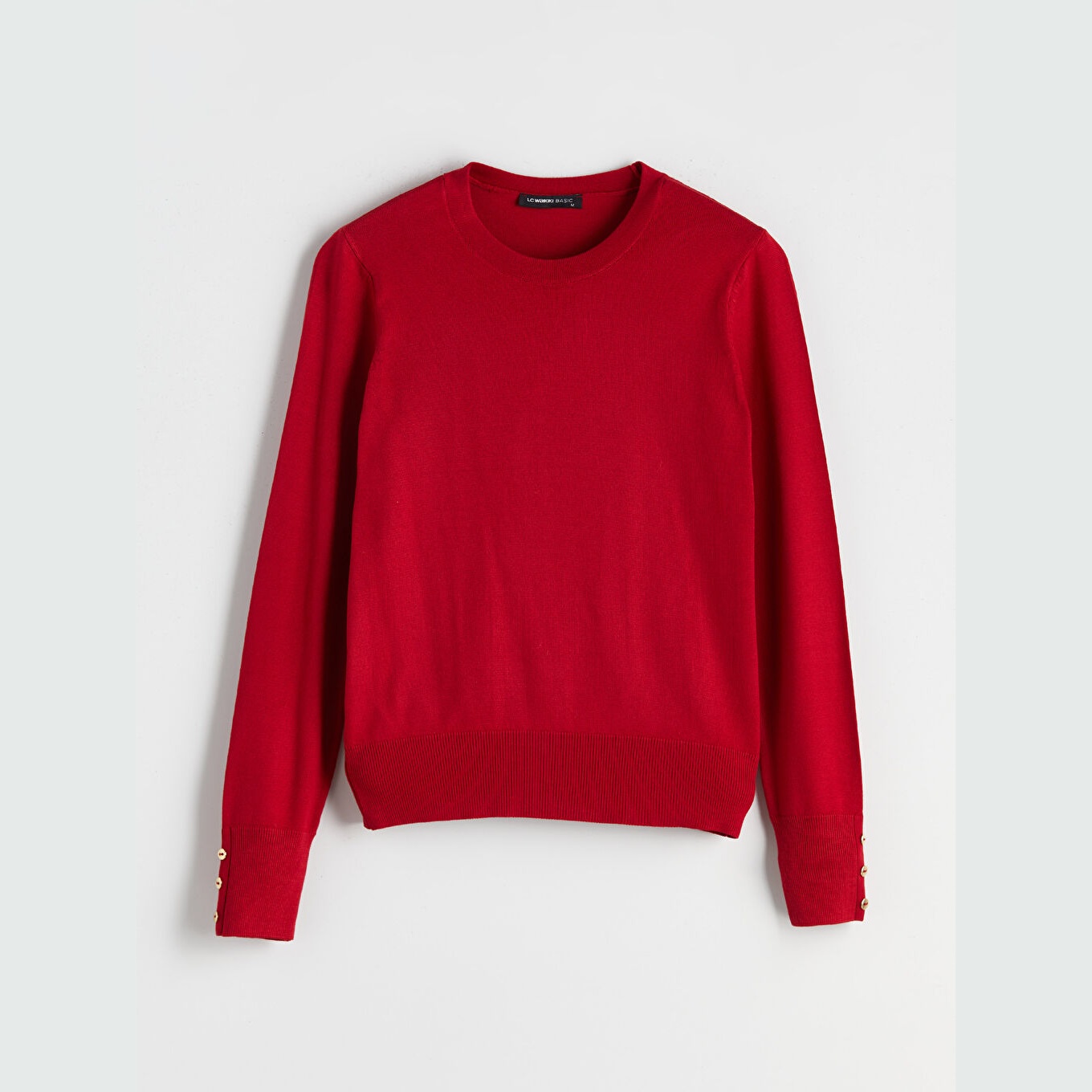 كنزة نسائية بياقة دائرية من LCW Classic – أحمر (مقاس كبير)