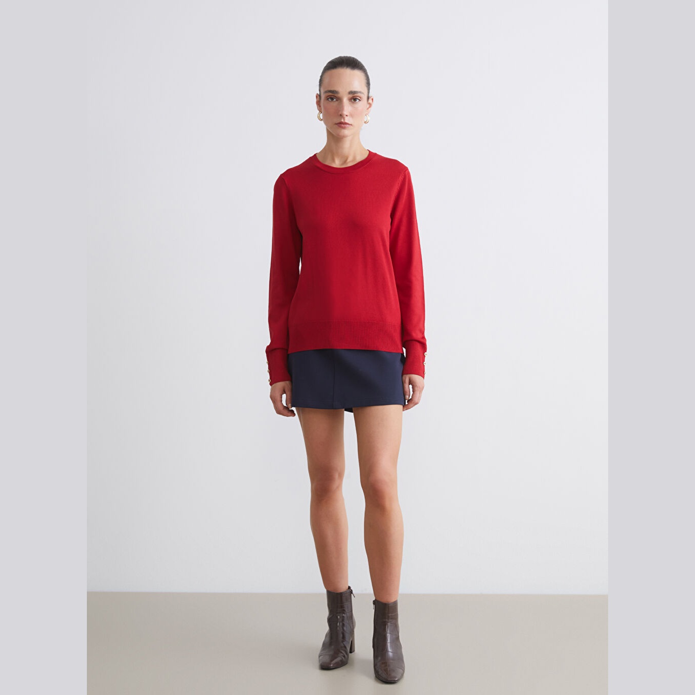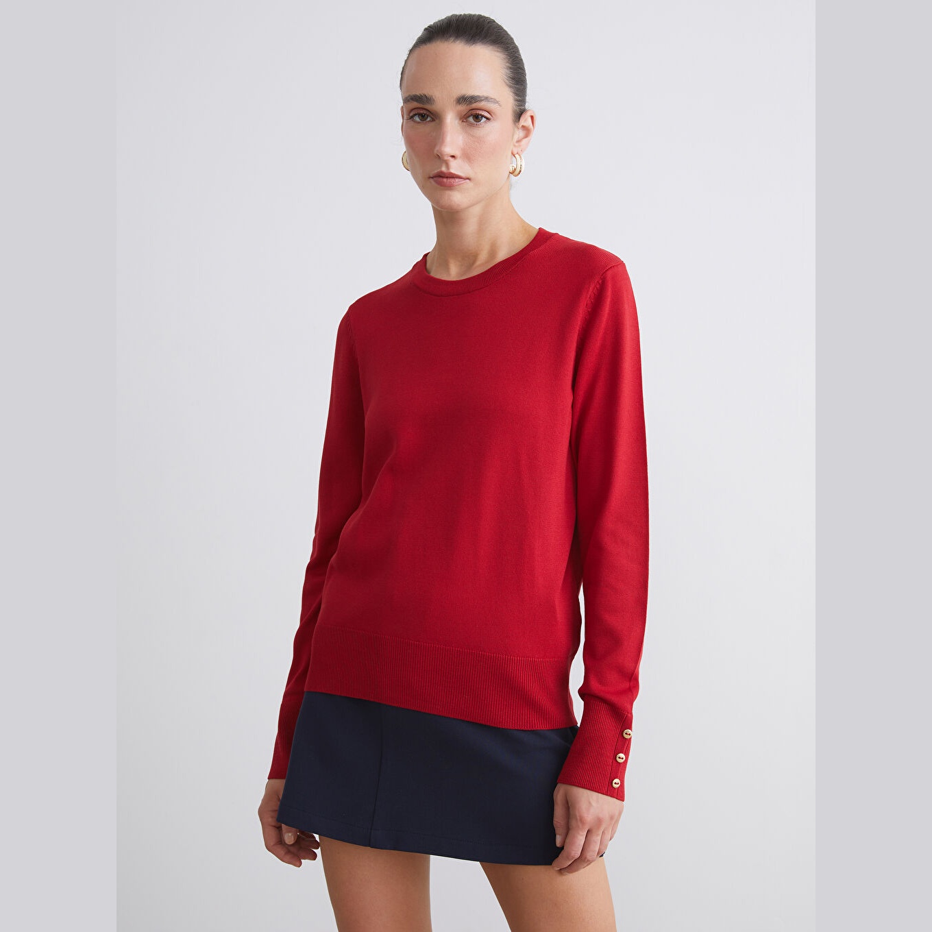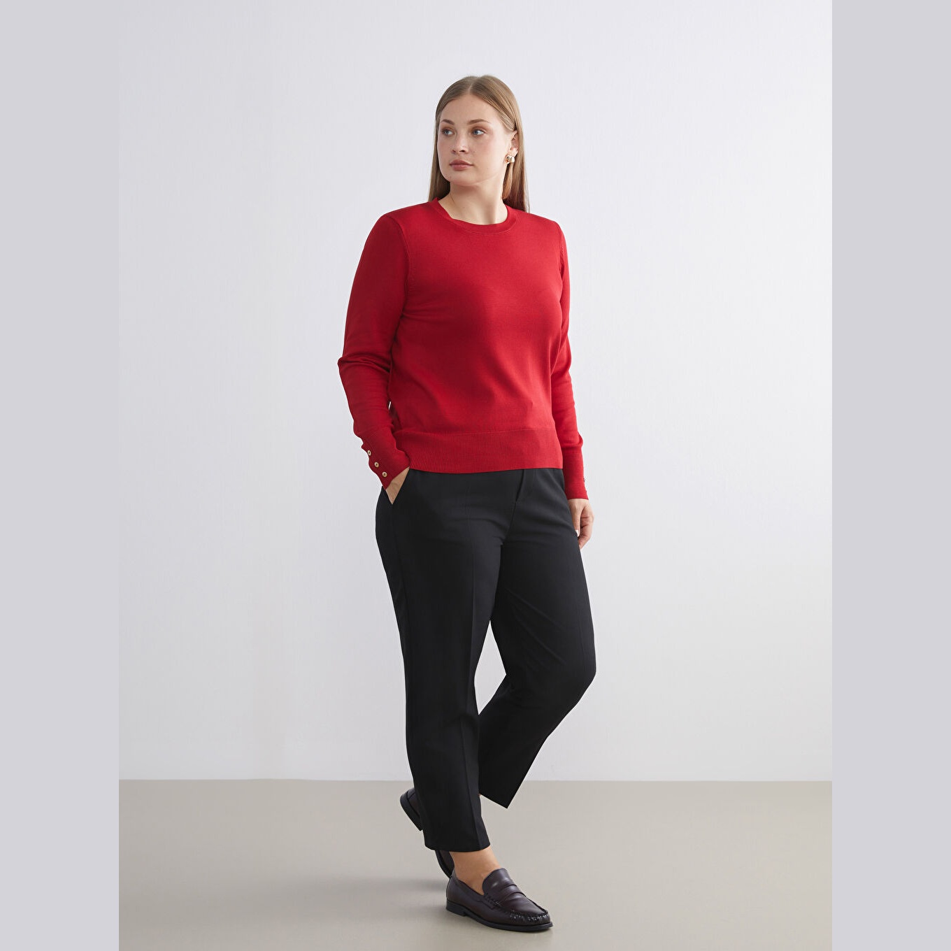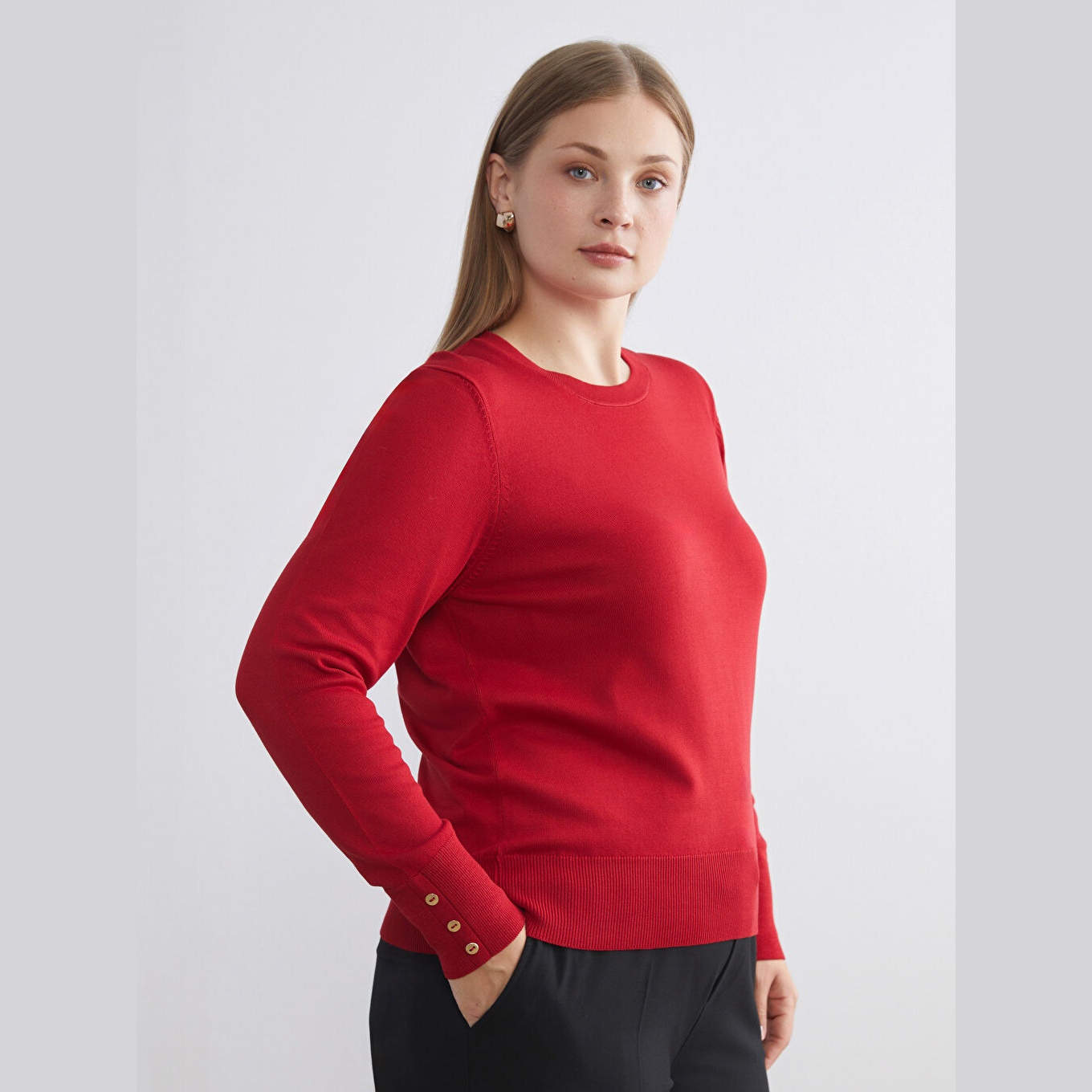 كنزة أنيقة من LCW Classic بلون أحمر جذاب، مصممة بياقة دائرية (Bisiklet Yaka)، أكمام طويلة، قصة Slim Fit ضيقة، خامة تريكو خفيفة مصنوعة من مزيج الفسكوز والبوليستر بنسبة 73% و27% على التوالي، تمنحك ملمسًا ناعمًا وانسيابية في الحركة. تصميم سادة مخصص لمجموعة المقاسات الكبيرة، مثالي للتنسيق مع بنطال قماشي أو تنورة مستقيمة لإطلالة يومية أنيقة ومريحة.