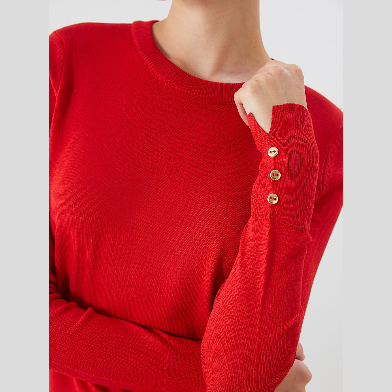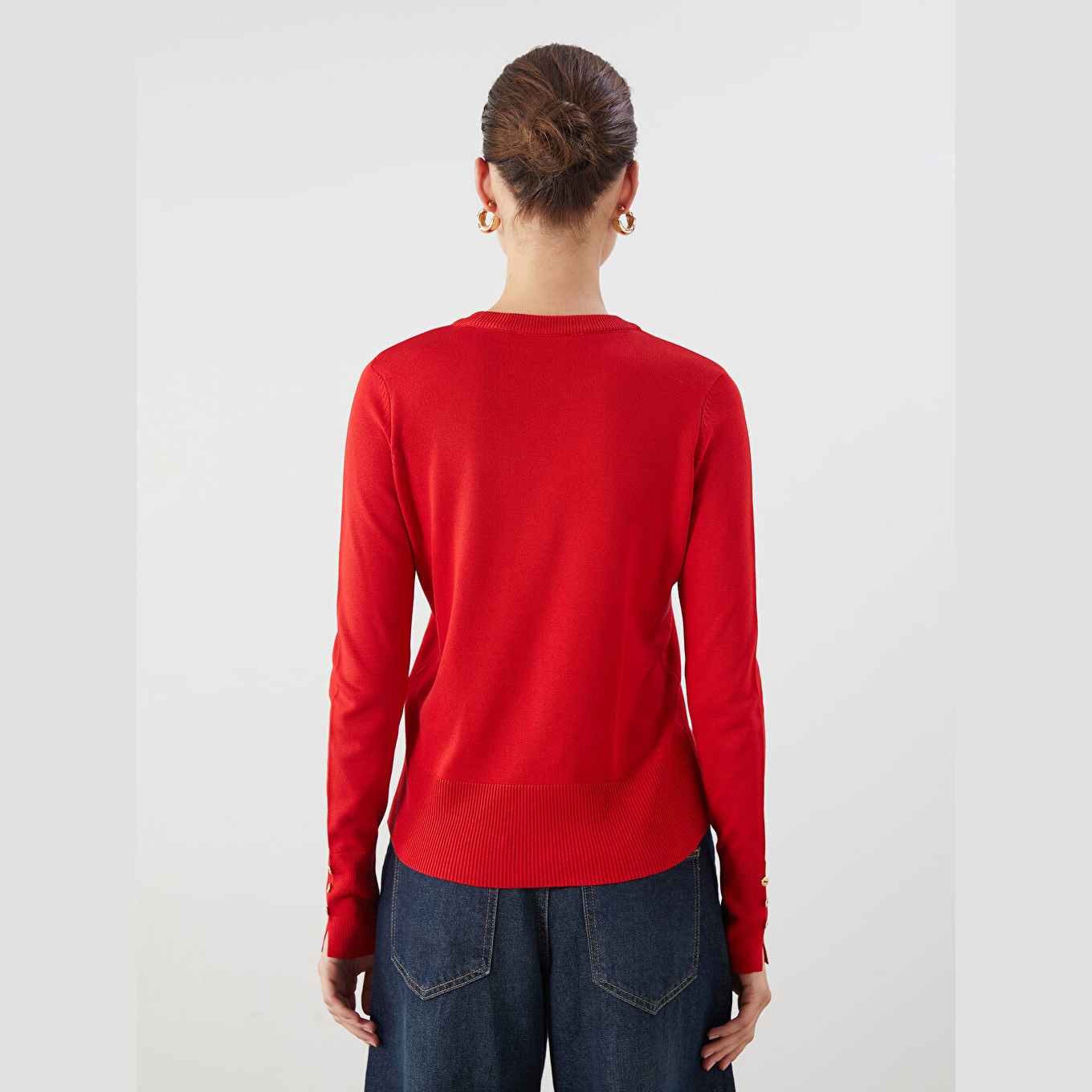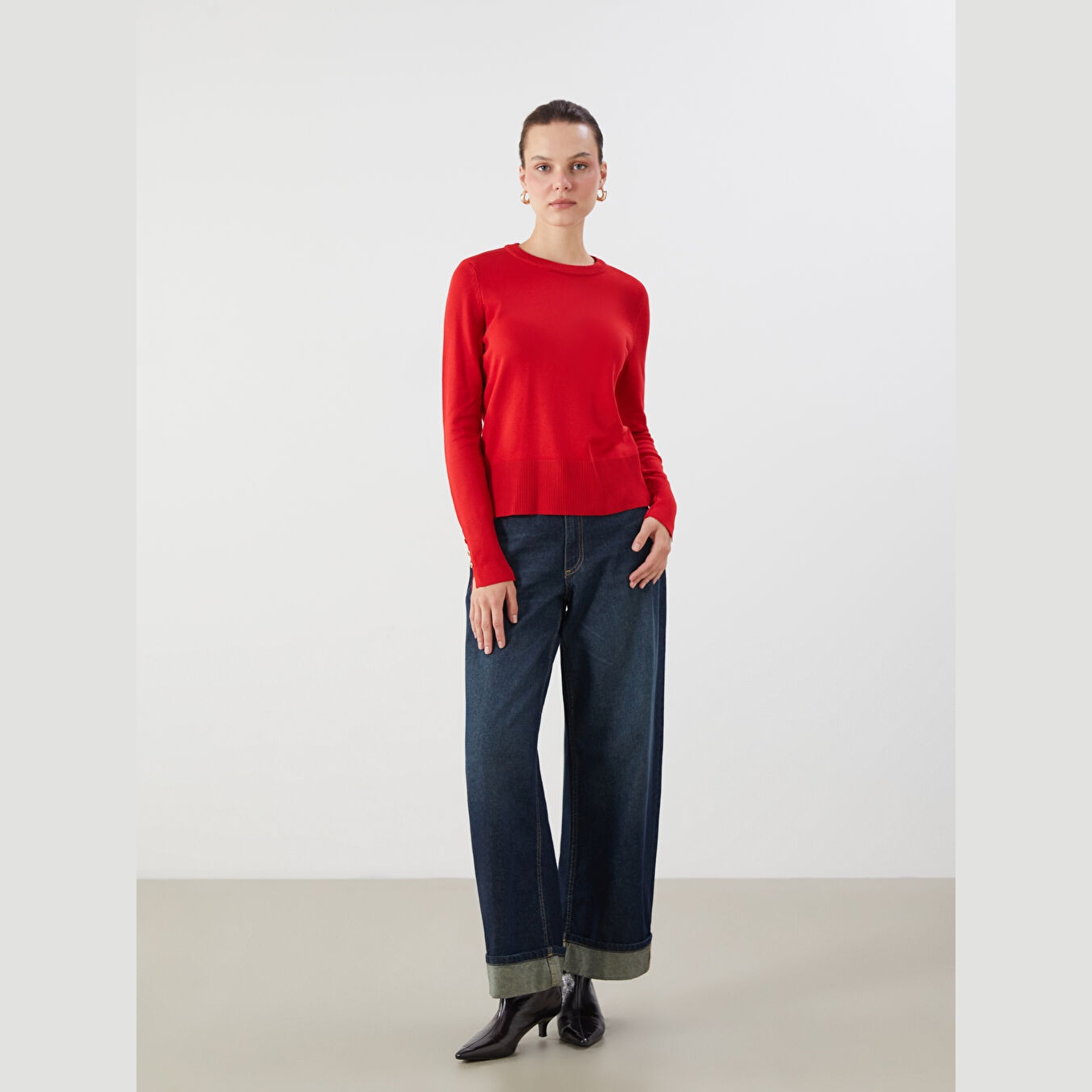 كنزة نسائية بياقة دائرية مع شق جانبي من LCW Vision – أحمر