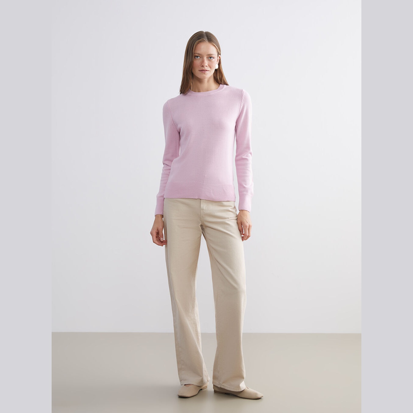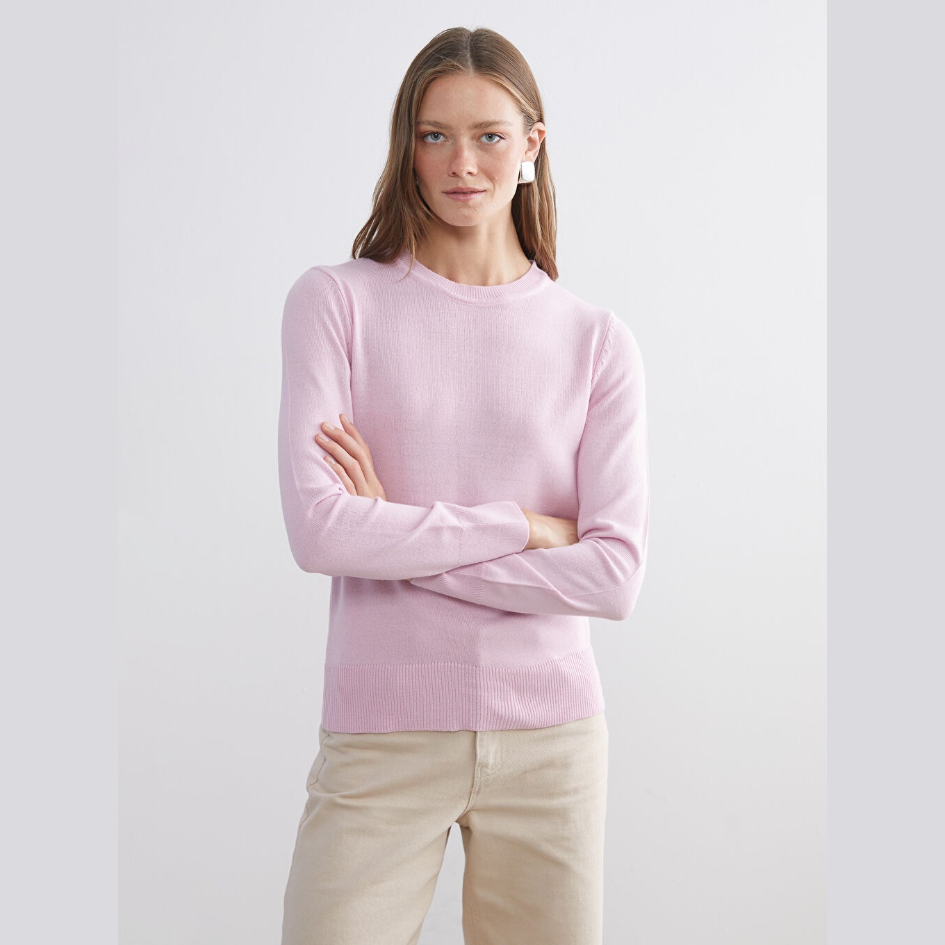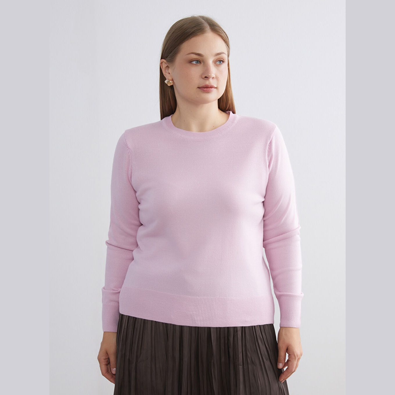كنزة نسائية بياقة دائرية من LCW Comfort – وردي (مقاس كبير)