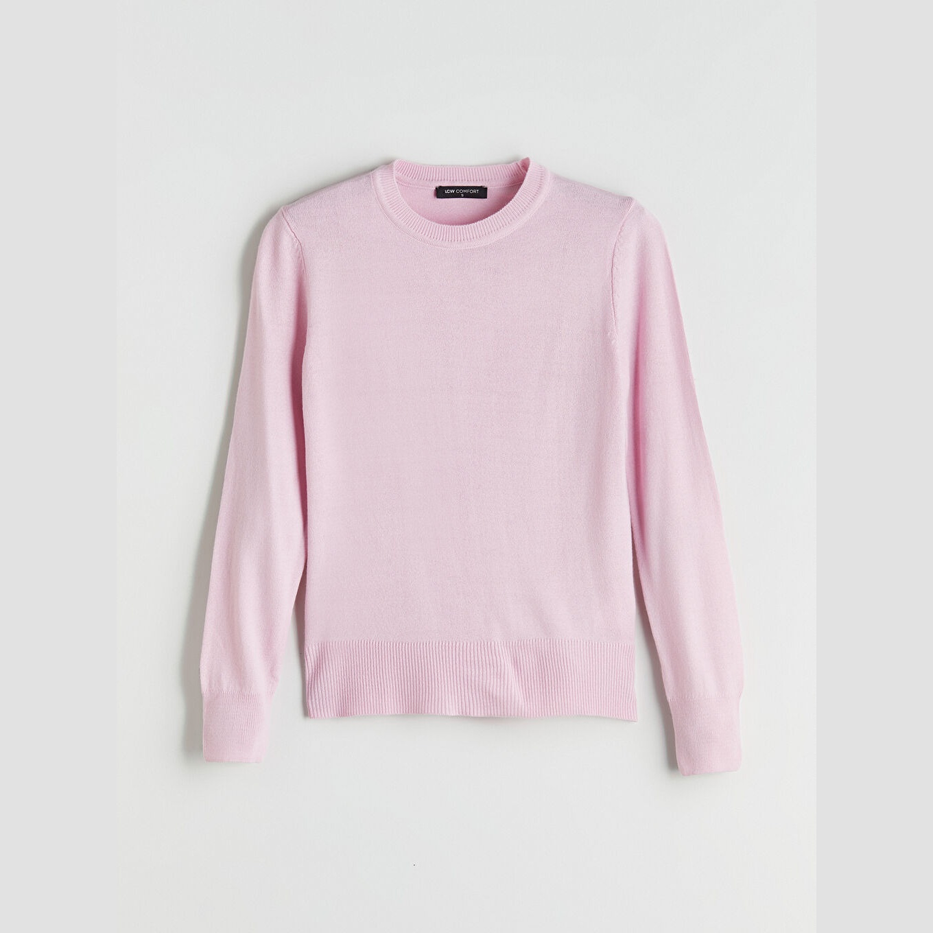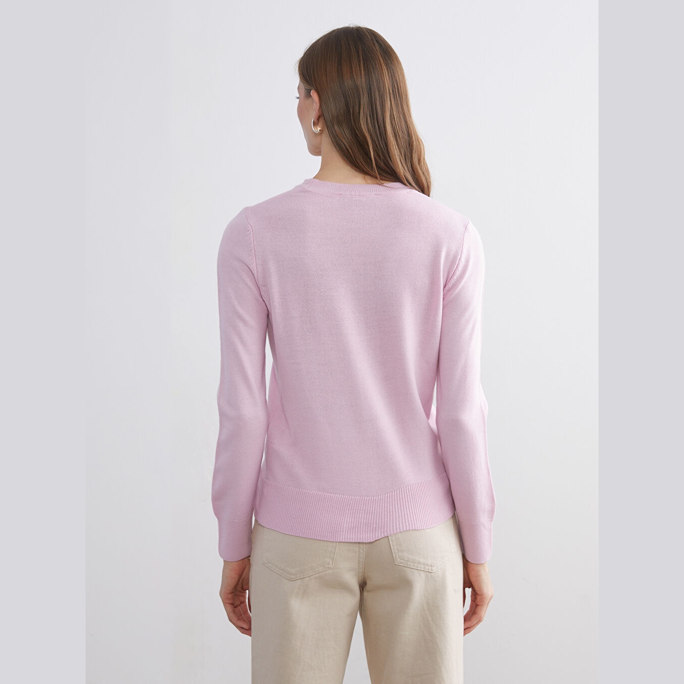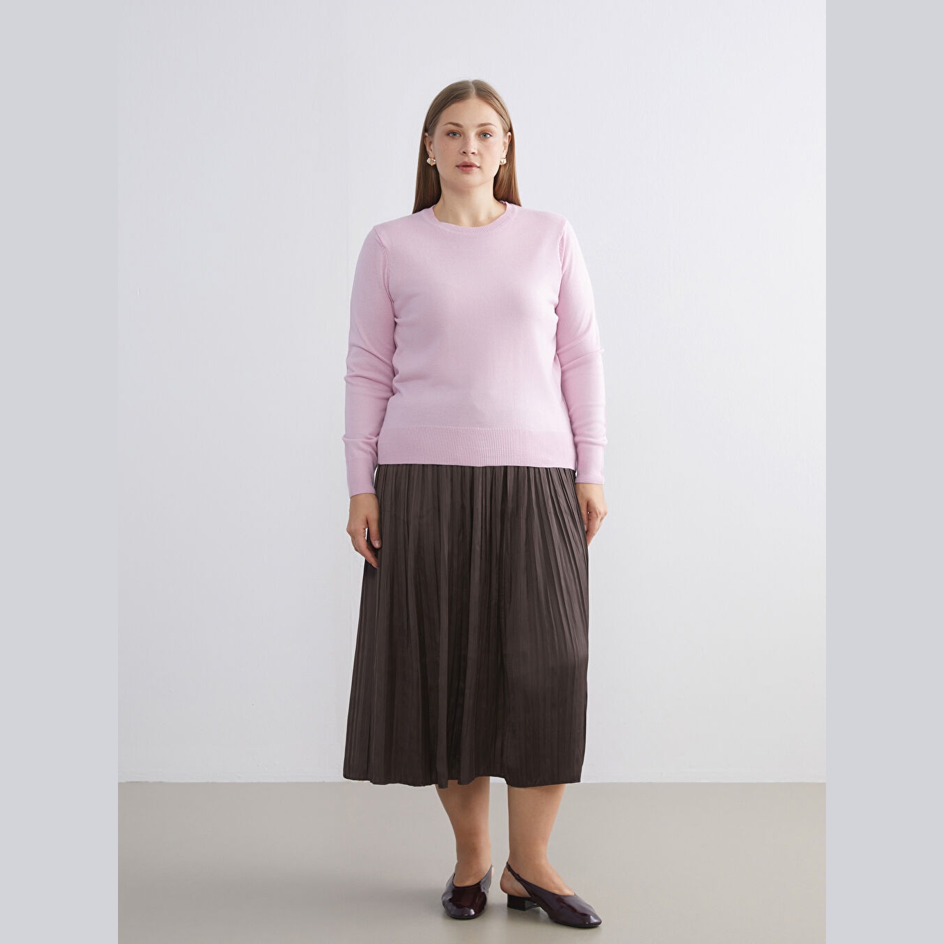 كنزة نسائية بياقة دائرية من LCW Comfort – وردي (مقاس كبير)