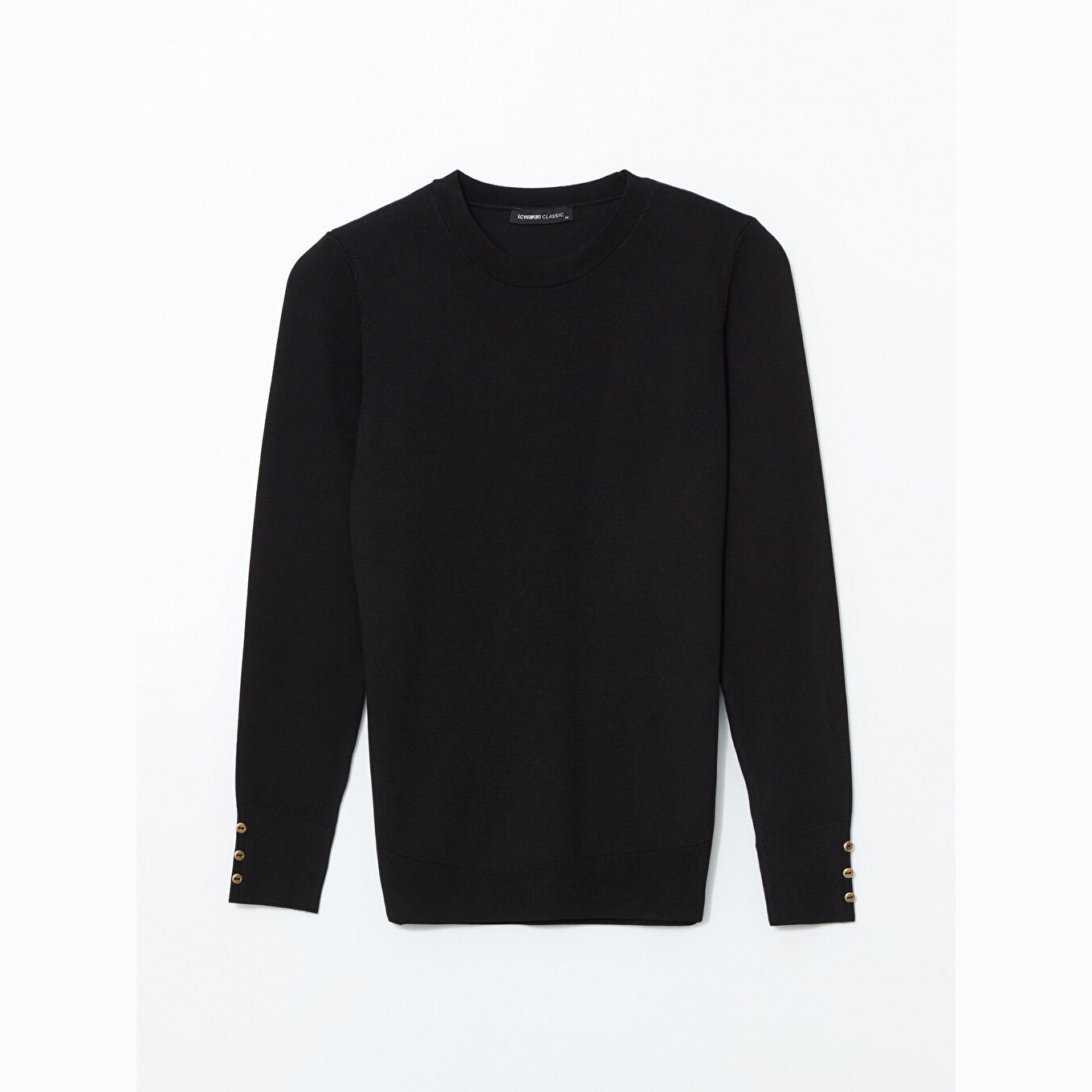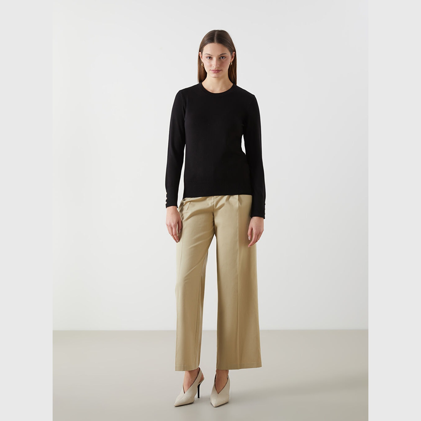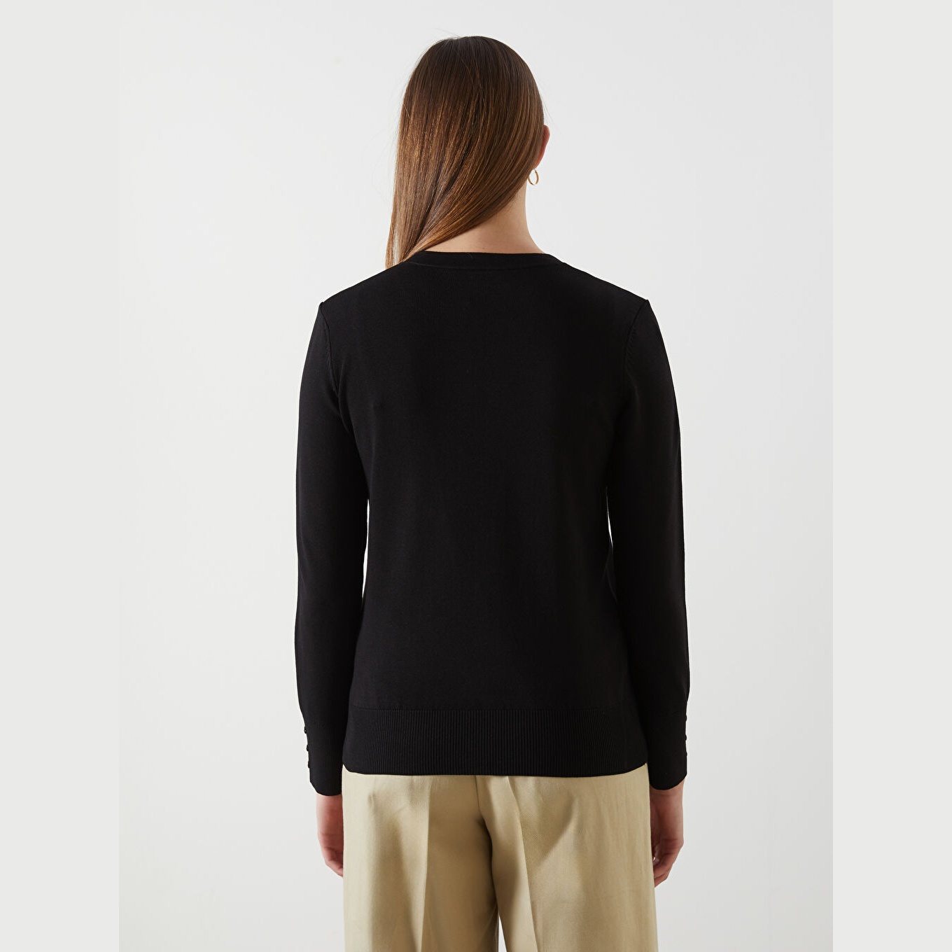 كنزة نسائية بياقة دائرية من LCW Classic – أسود (مقاس كبير)