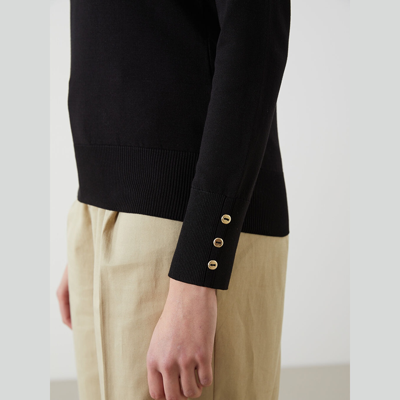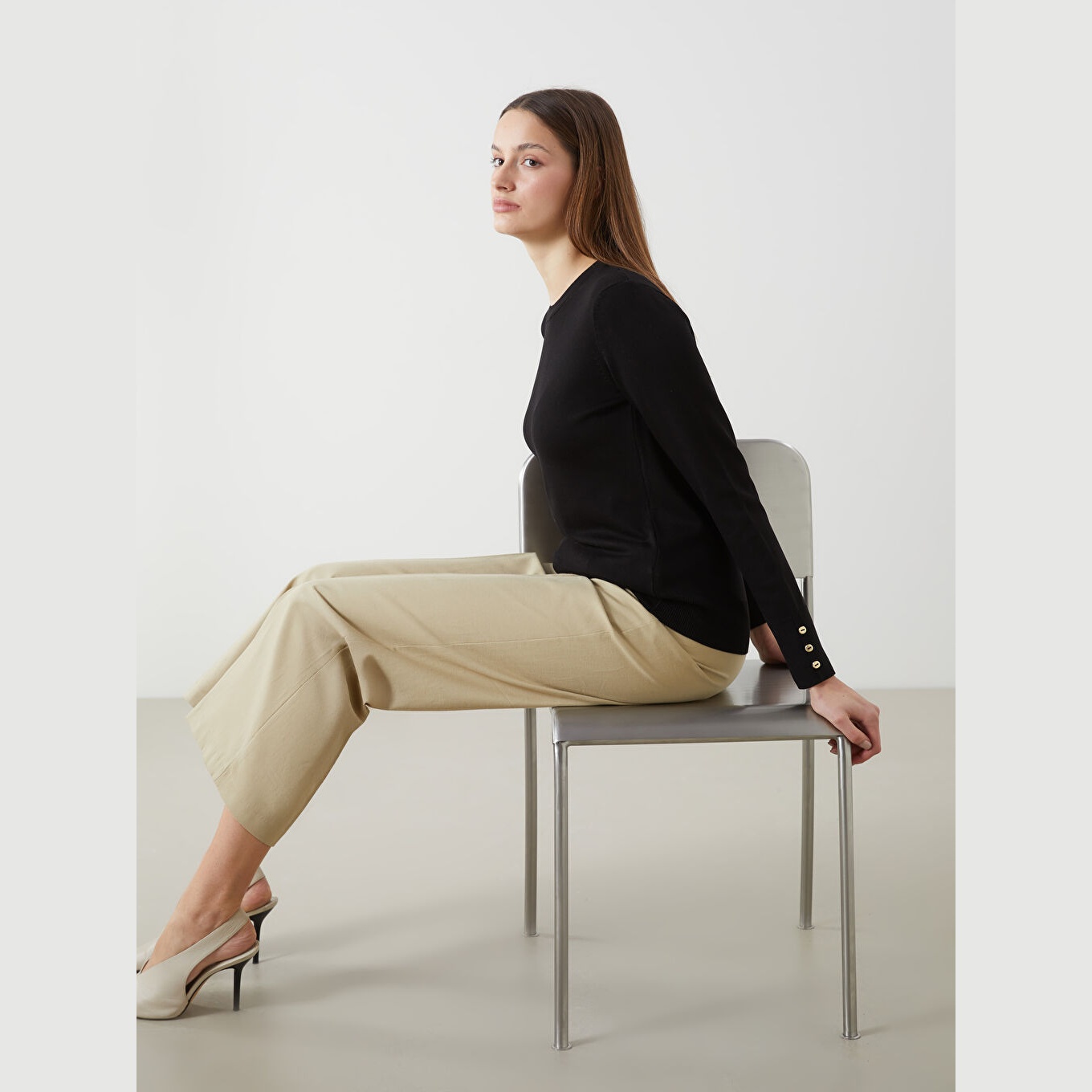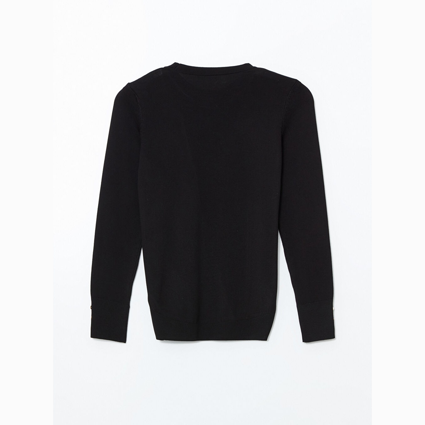 كنزة نسائية بياقة دائرية من LCW Classic – أسود (مقاس كبير)