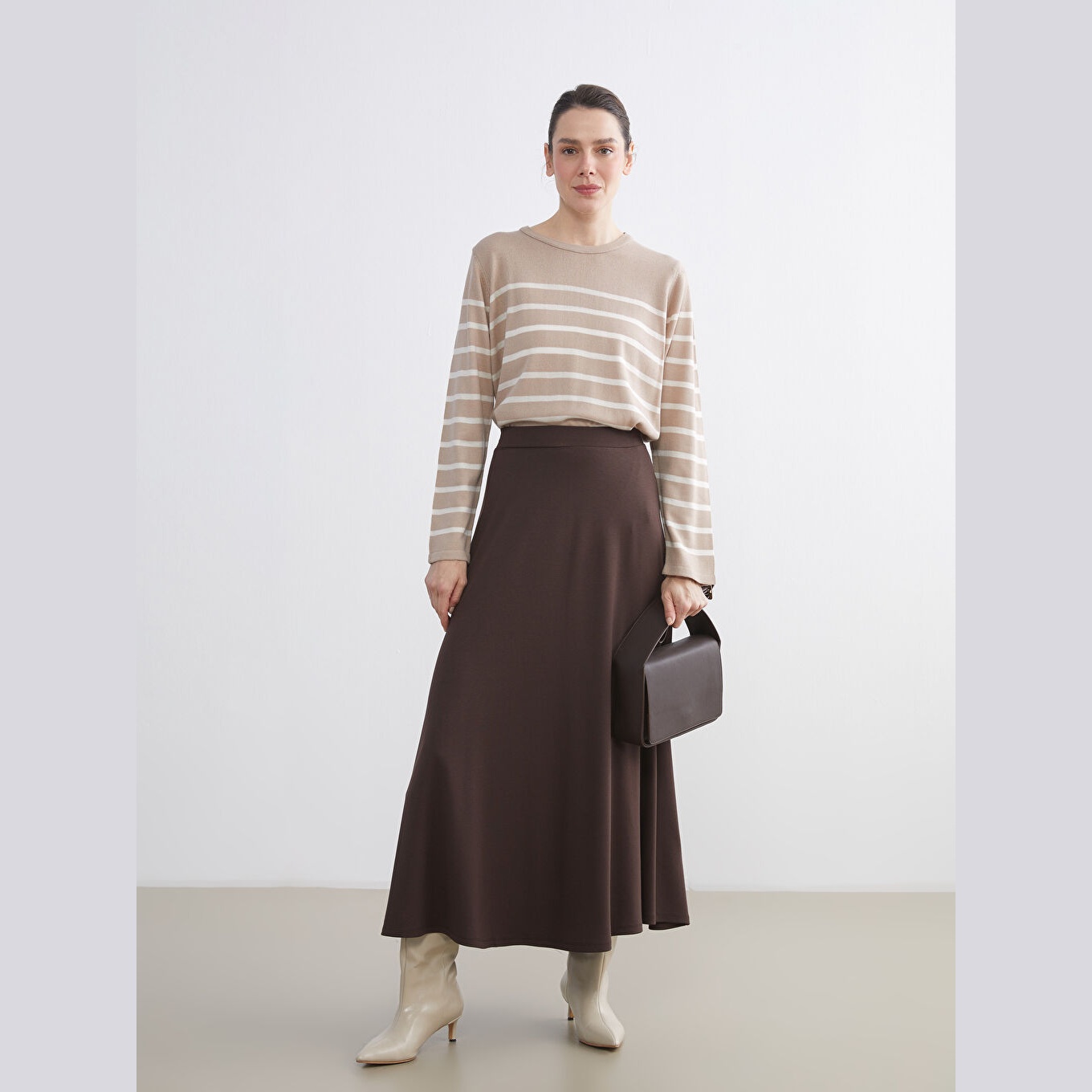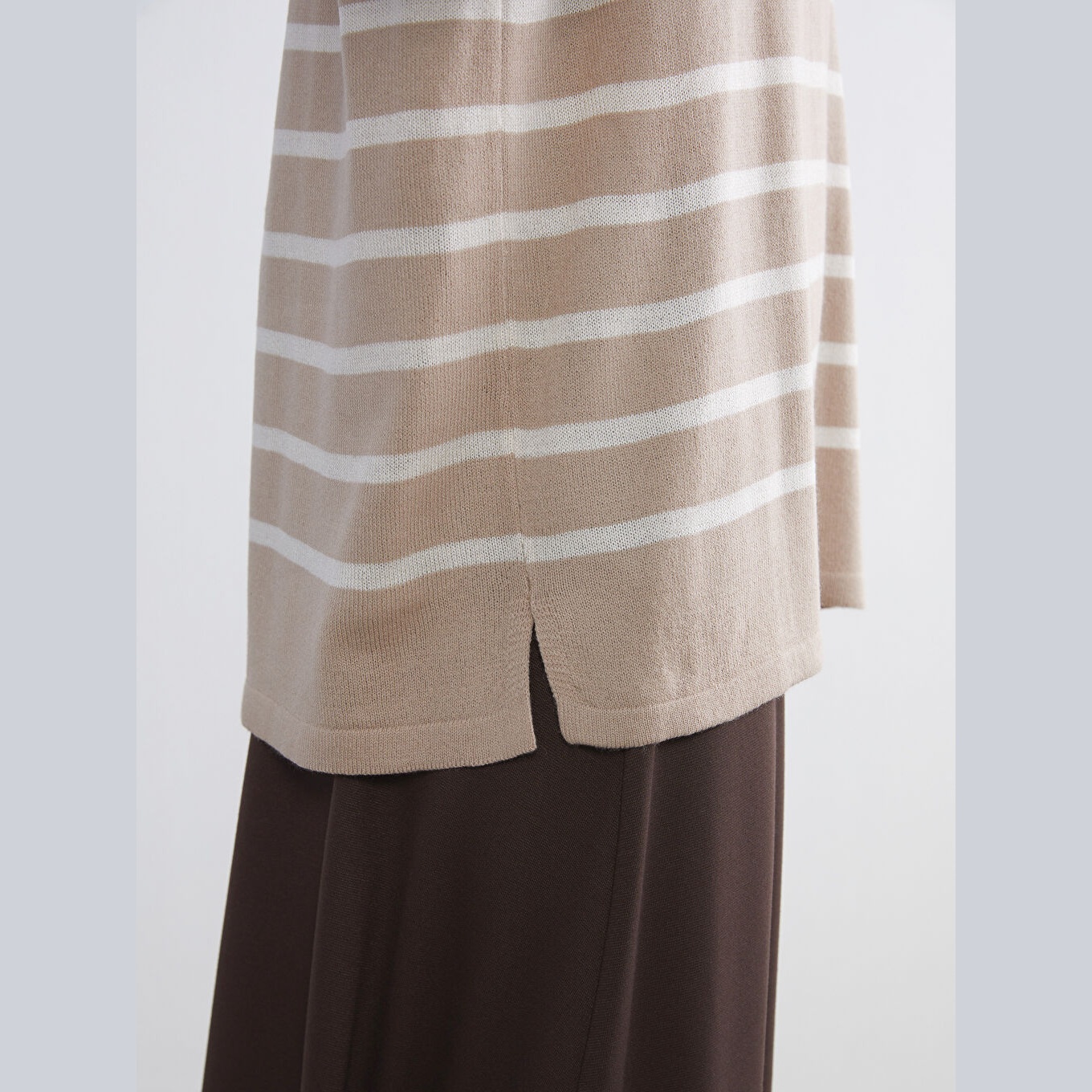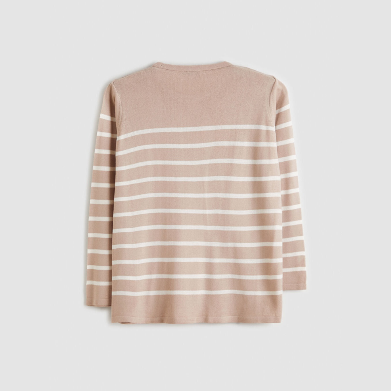 كنزة نسائية بياقة دائرية ونقشة خطوط من LCW Grace – بيج (مقاس كبير)