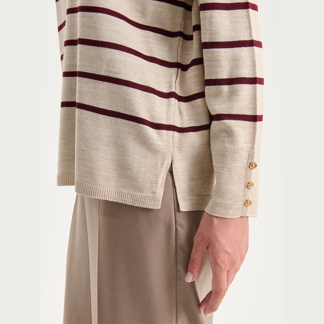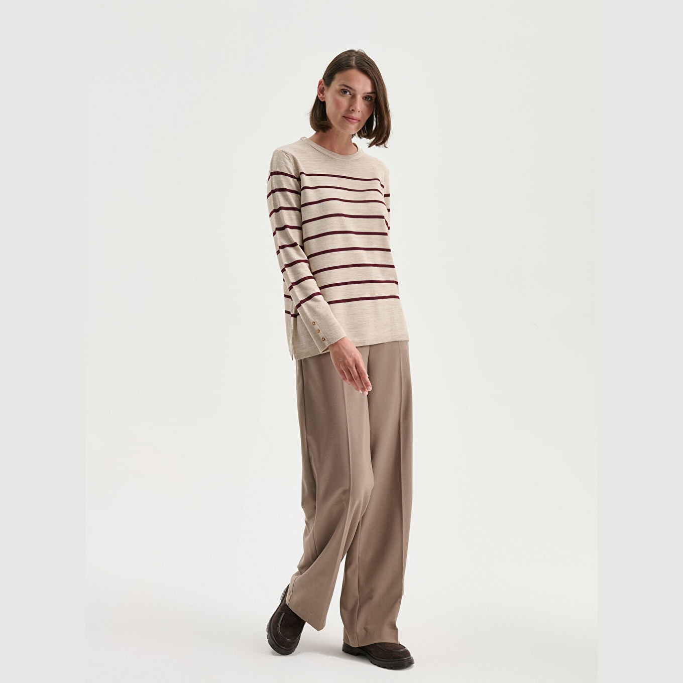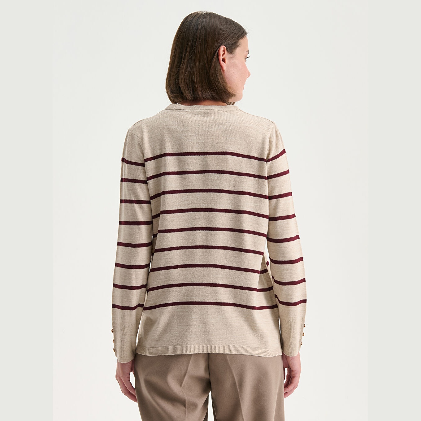كنزة نسائية بياقة دائرية ونقشة خطوط من LCW Grace – بوردو (مقاس كبير، يئة جانبية)
