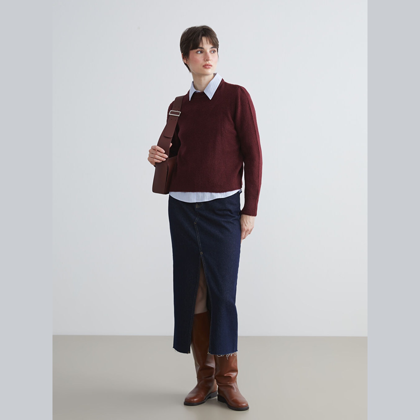 كنزة نسائية بياقة دائرية من LCW Vision – بوردو (قصة واسعة)