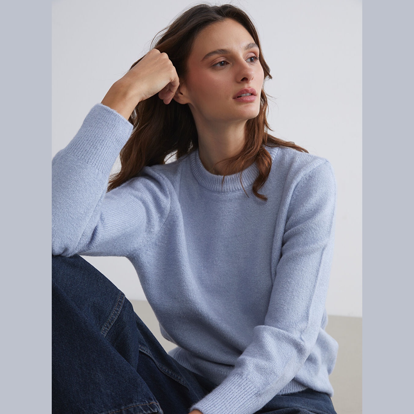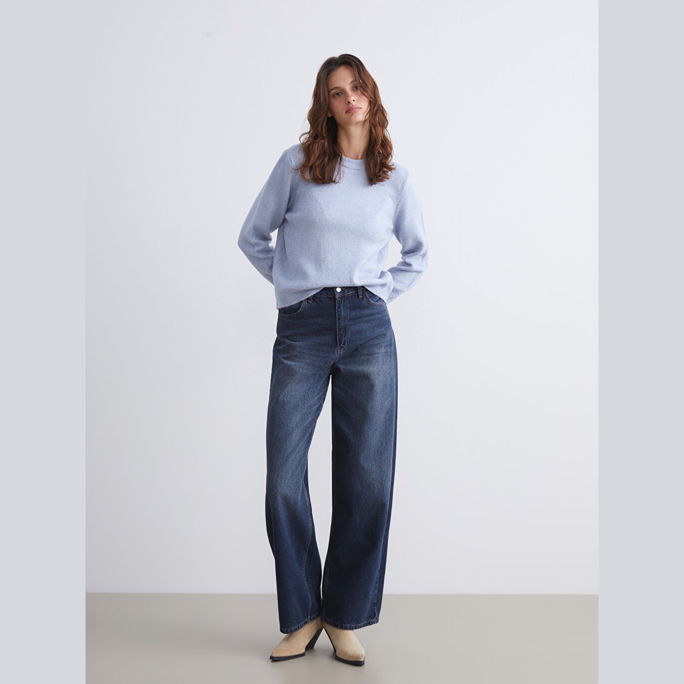 كنزة أنيقة من LCW Vision بلون أزرق هادئ، مصممة بياقة دائرية (Bisiklet Yaka)، أكمام طويلة، قصة Loose Fit واسعة تمنحك راحة وانسيابية في الحركة، خامة تريكو بسمك متوسط وملمس ناعم، تصميم سادة بدون نقشة يتيح تنسيقًا مرنًا مع مختلف الإطلالات. مصنوعة من مزيج الأكريليك والبوليستر والإيلاستان بنسبة 70% – 29% – 1%، بطول يُقاس من الكتف، مثالية للتنسيق مع بنطال جينز أو تنورة مستقيمة لإطلالة يومية أنيقة ومريحة.