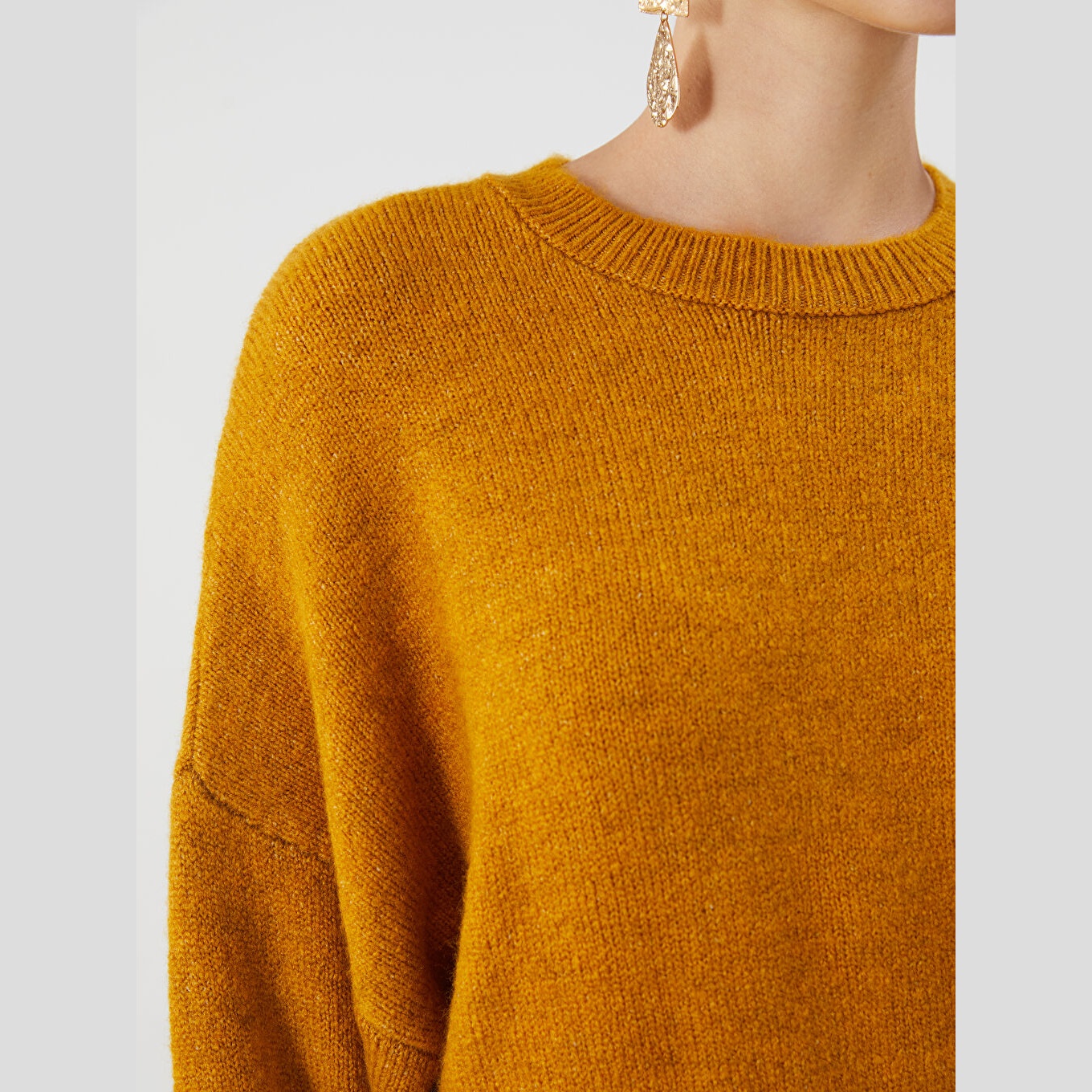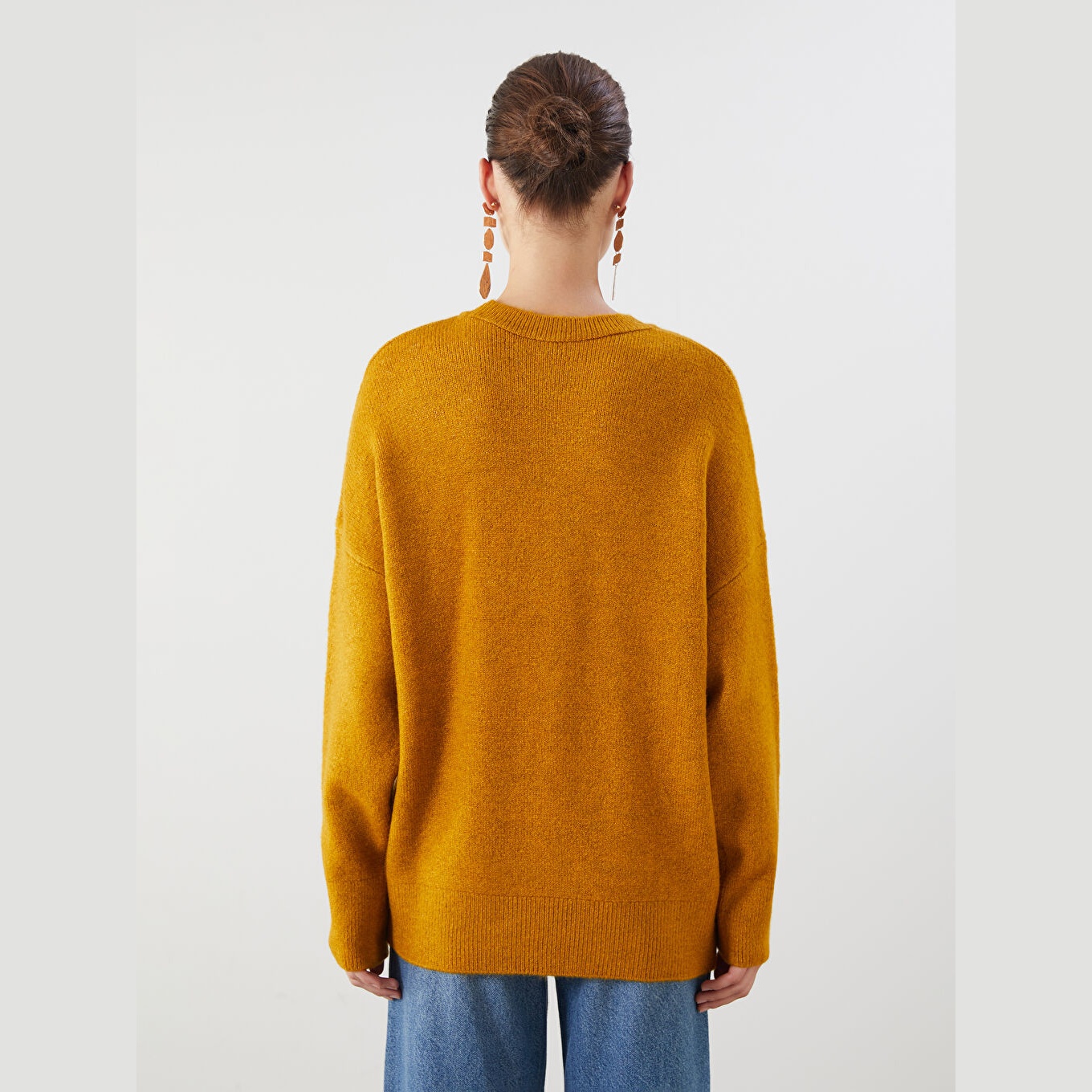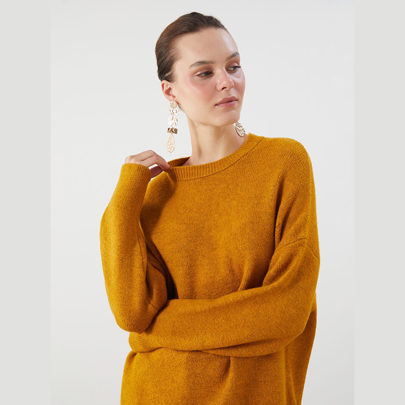 كنزة نسائية بياقة دائرية من LCW Vision – أصفر (قصة واسعة، Oversize)