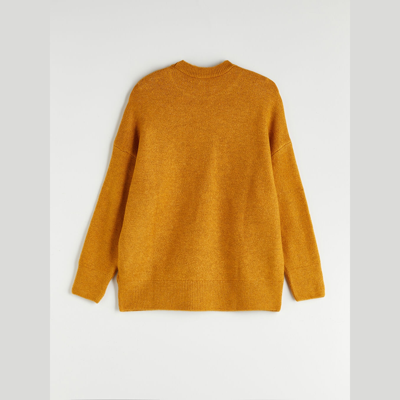 كنزة مريحة من LCW Vision بلون أصفر مشرق، مصممة بياقة دائرية (Bisiklet Yaka)، أكمام طويلة، قصة Oversize واسعة تمنحك إحساسًا بالراحة والانسيابية، خامة تريكو بسمك متوسط وملمس ناعم، تصميم سادة بدون نقشة يتيح تنسيقًا مرنًا مع مختلف الإطلالات. مصنوعة من مزيج الأكريليك والبوليستر والإيلاستان بنسبة 69% – 30% – 1%، بطول يُقاس من الكتف، مثالية للتنسيق مع بنطال جينز أو تنورة مستقيمة لإطلالة يومية أنيقة وعملية.
