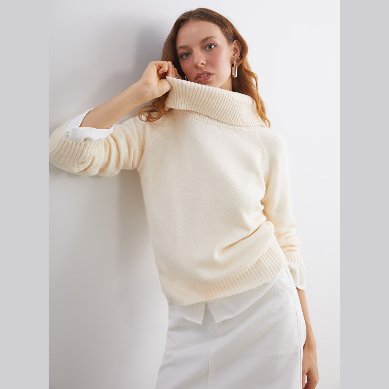كنزة أنيقة من LCW Vision بلون إكرو ناعم، مصممة بياقة قارب (Kayık Yaka)، أكمام طويلة، قصة Regular Fit قياسية تمنحك مظهرًا مريحًا وانسيابيًا، خامة تريكو بسمك متوسط وملمس ناعم، تصميم سادة بدون نقشة، مع أطراف وأساور مضلعة تضيف لمسة تشطيب أنيقة. مصنوعة من مزيج الأكريليك والبوليستر والإيلاستان بنسبة 64% – 35% – 1%، بطول يُقاس من الكتف، مثالية للتنسيق مع بنطال قماشي أو تنورة مستقيمة لإطلالة يومية أنيقة وعملية.