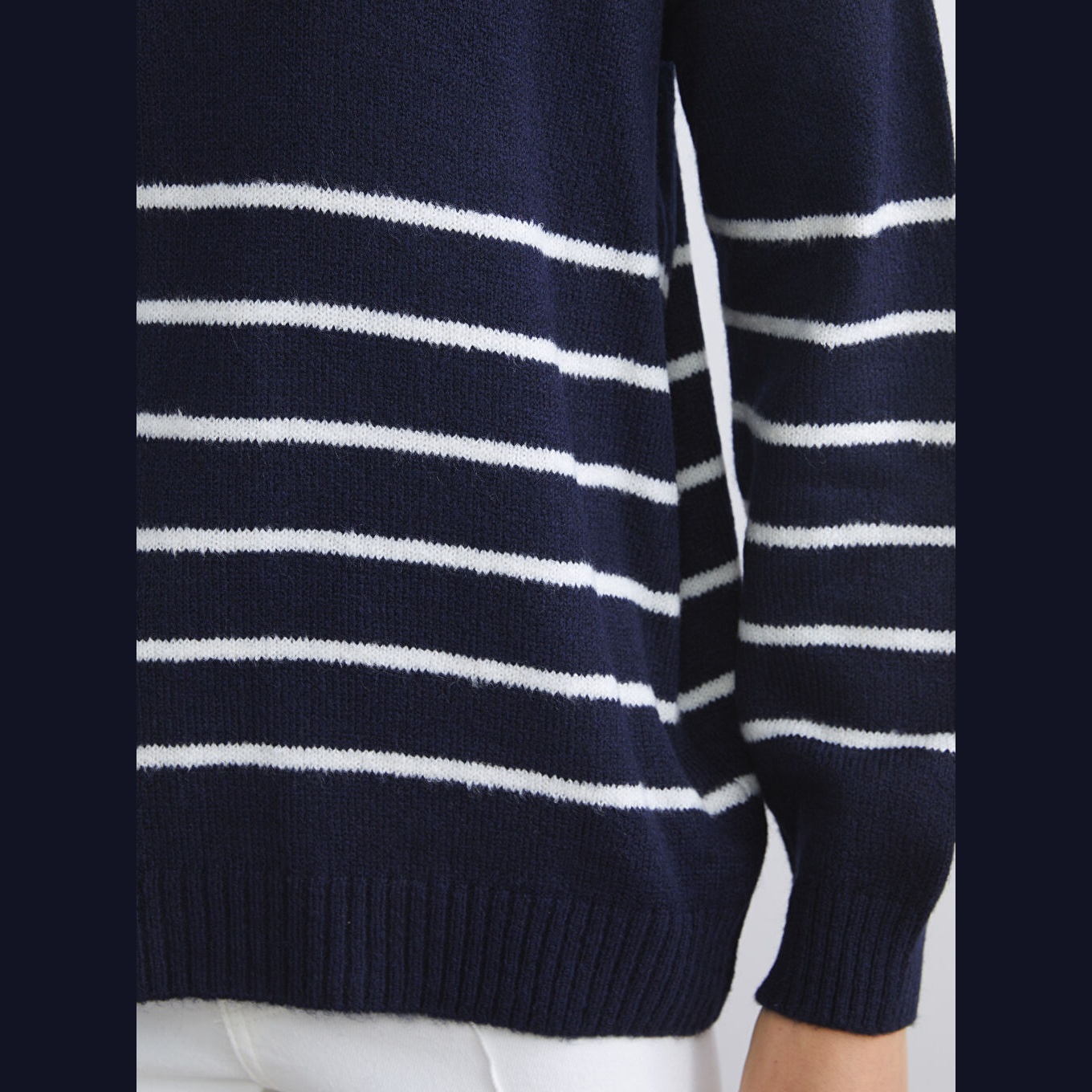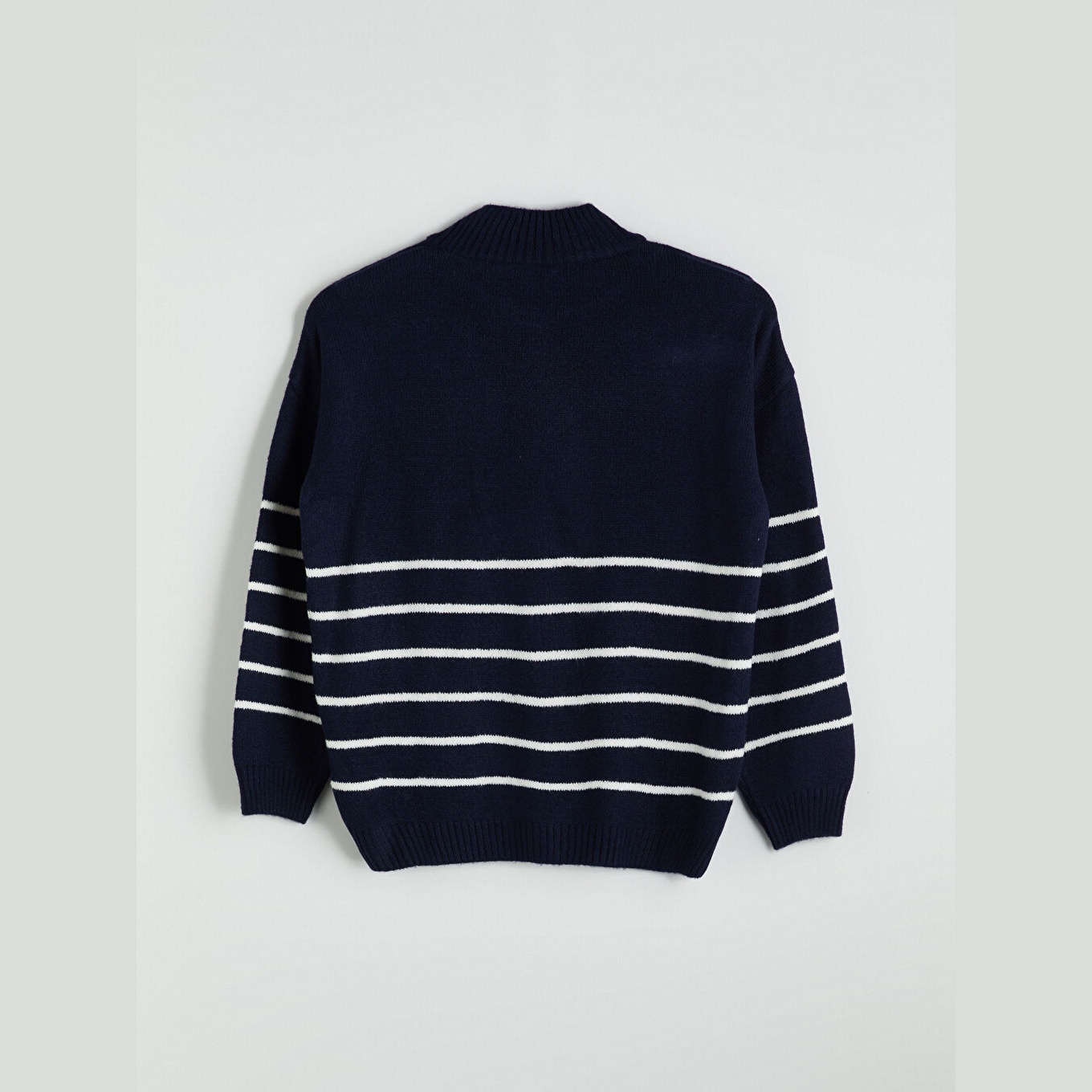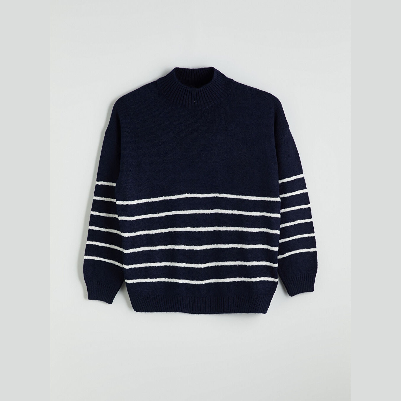كنزة نسائية بياقة نصف عالية من LCW ECO – كحلي (قصة واسعة، مخططة)
