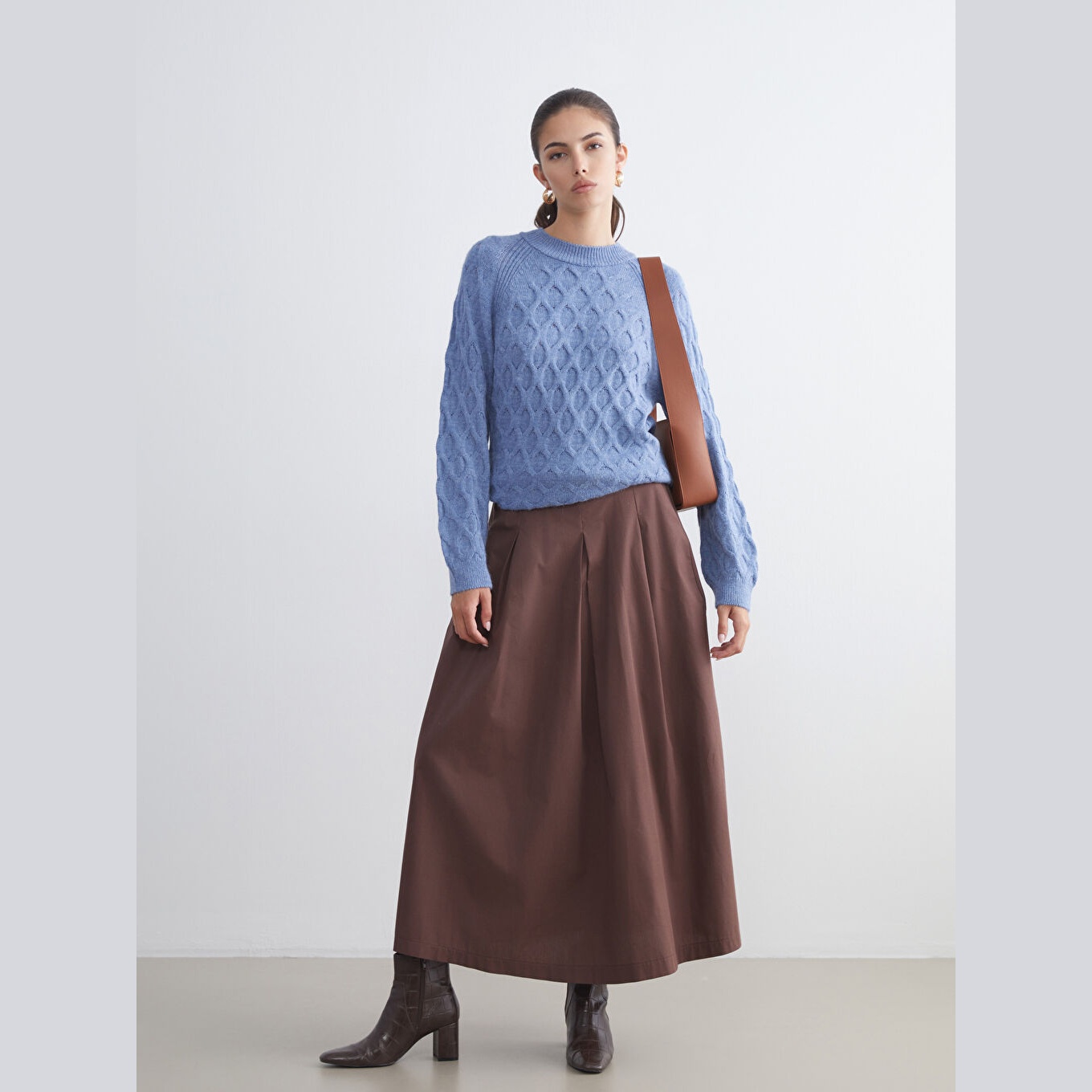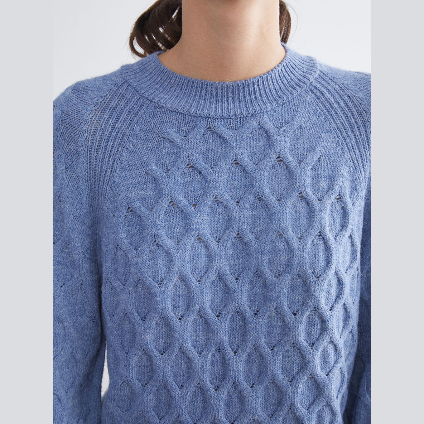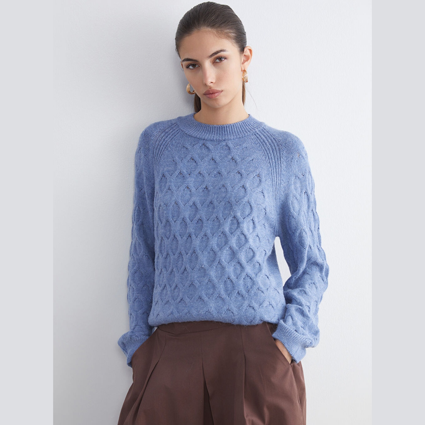 كنزة نسائية بياقة دائرية من LCW Classic – أزرق (قصة قياسية، نقشة ذاتية، أكمام Reglan)