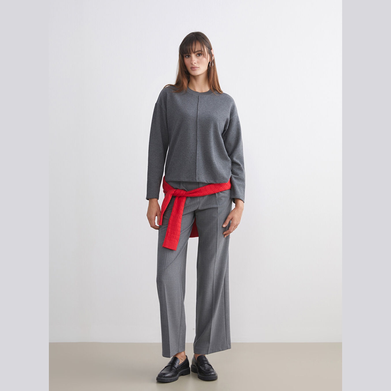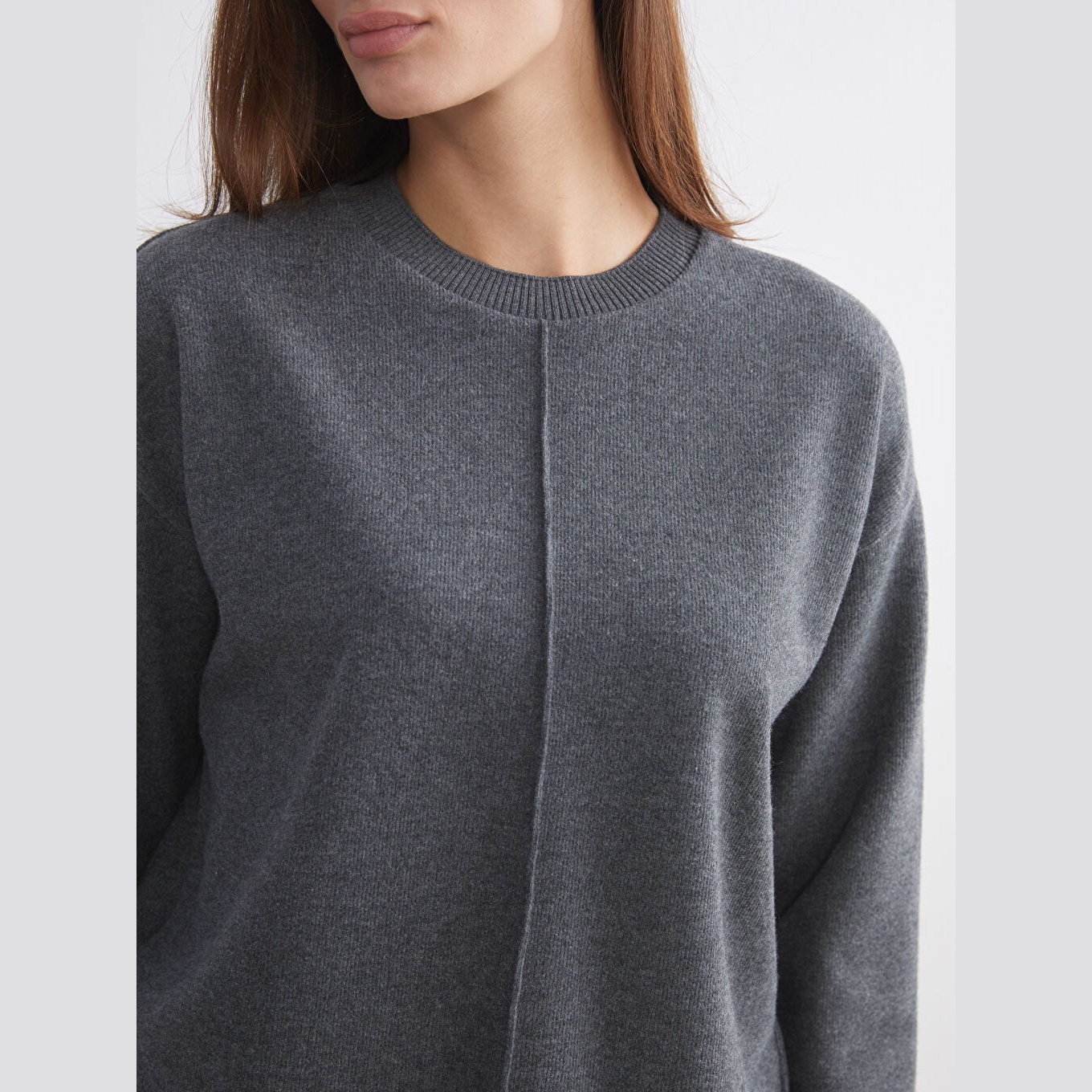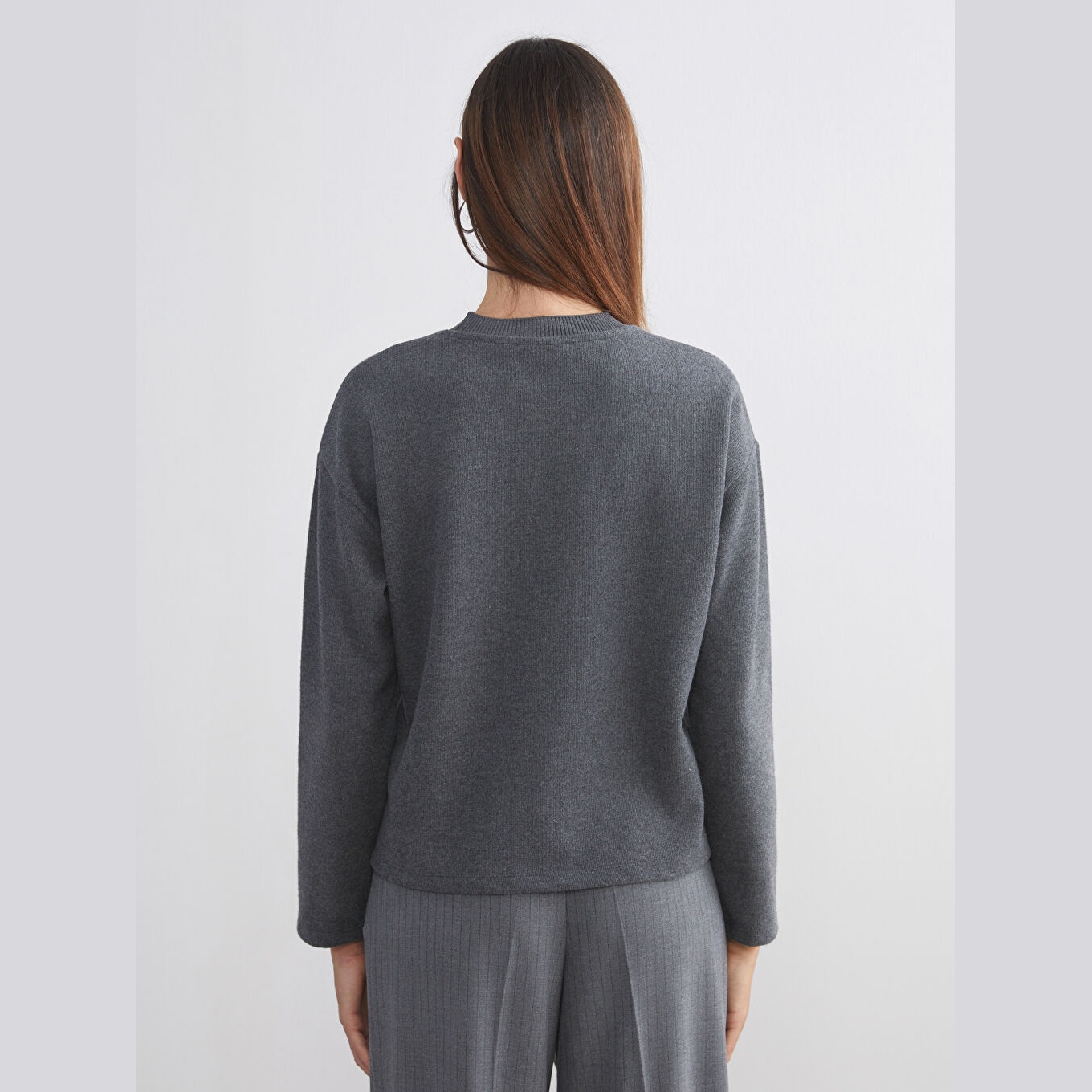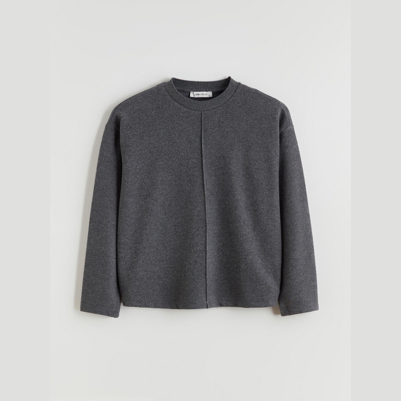 كنزة نسائية بياقة دائرية من LCW Vision – أنثراسايت (قصة واسعة، تصميم سادة)