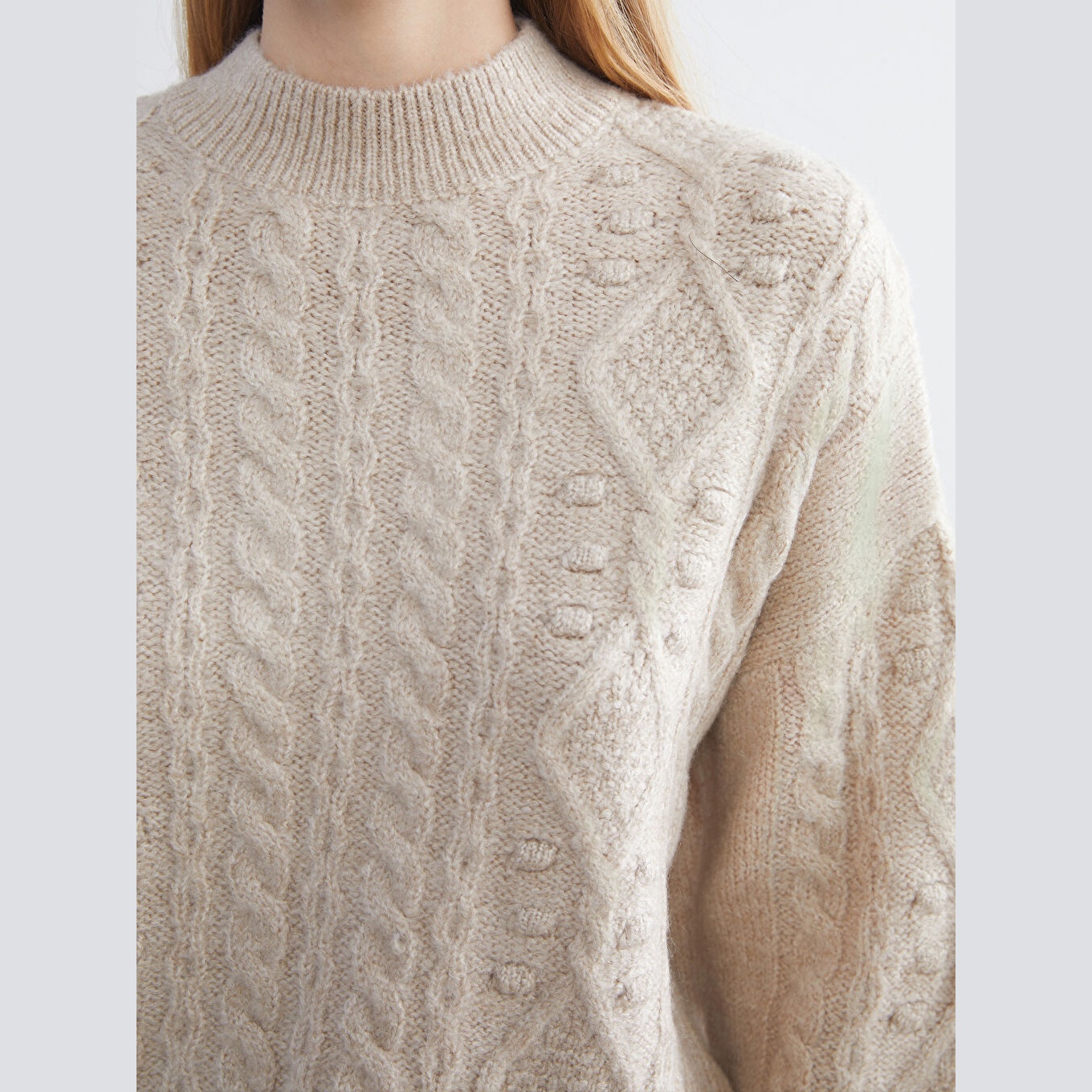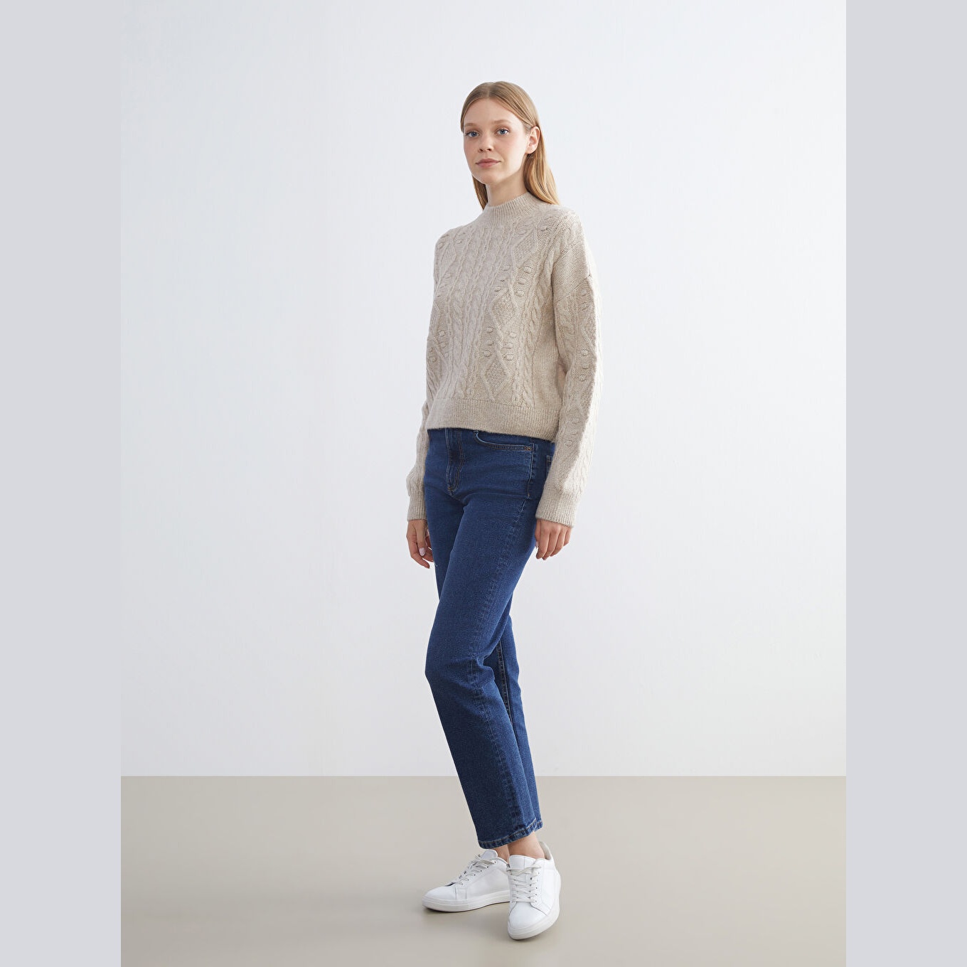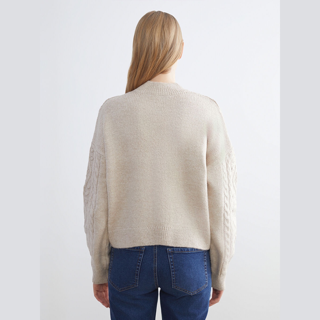 كنزة نسائية بياقة نصف عالية من LCW ECO – بيج (قصة واسعة، نقشة ذاتية)