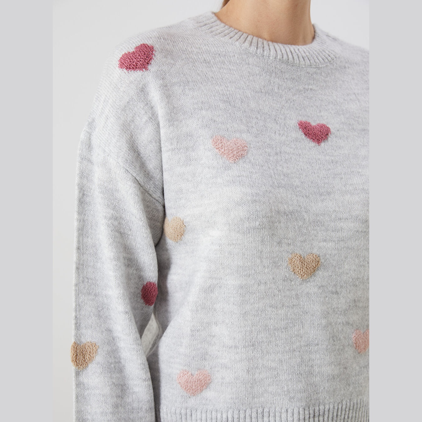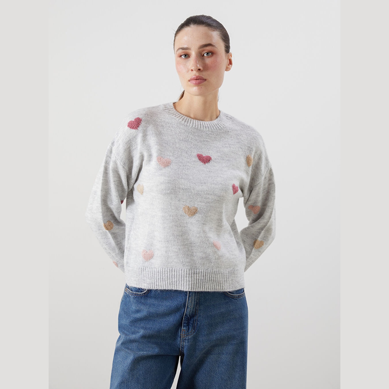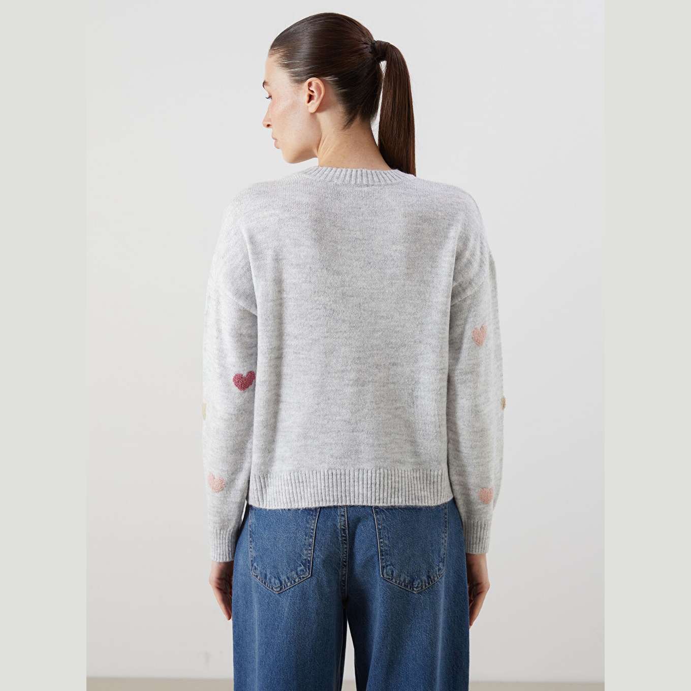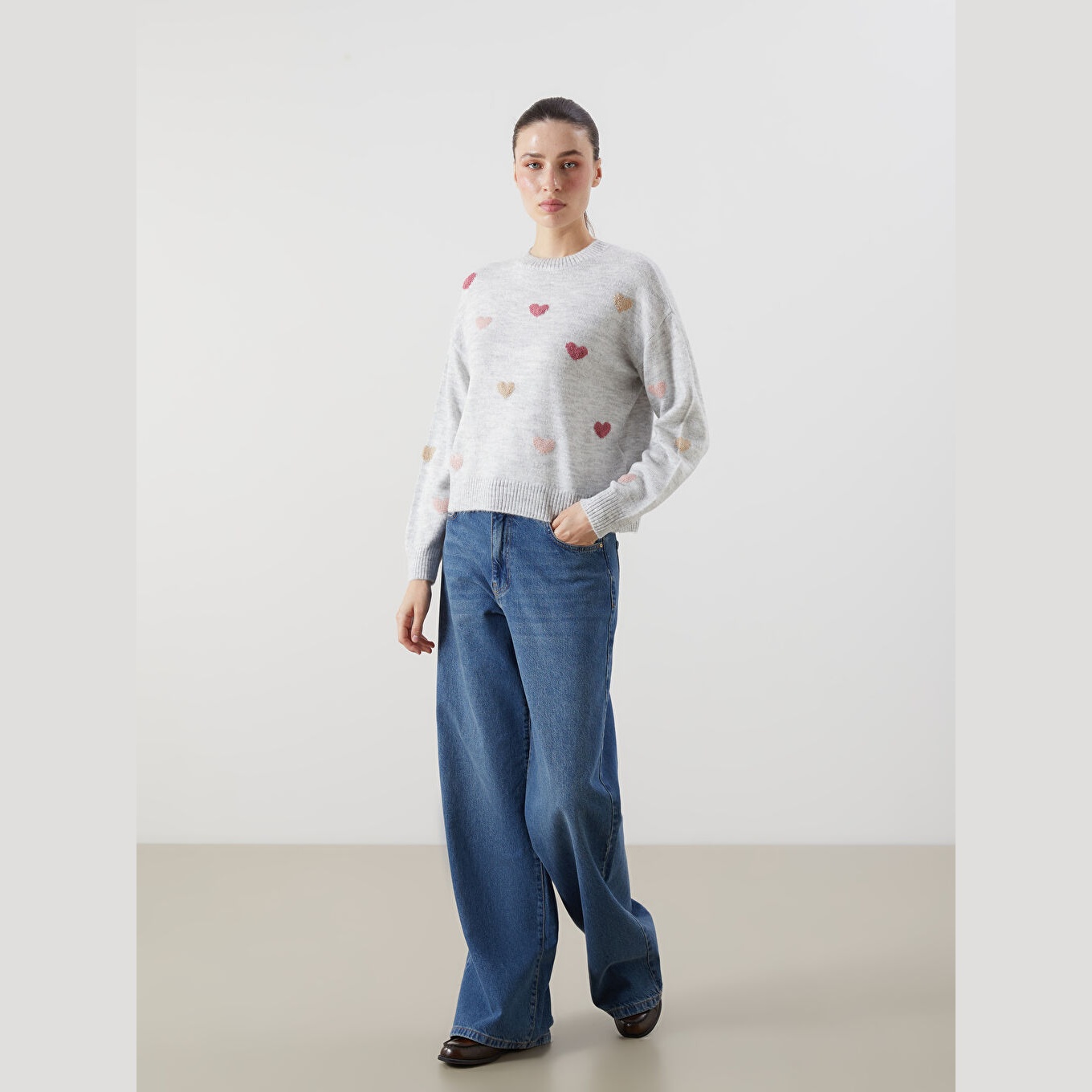 كنزة نسائية بياقة دائرية من LCW ECO – رمادي (قصة قياسية، نقشة ذاتية)