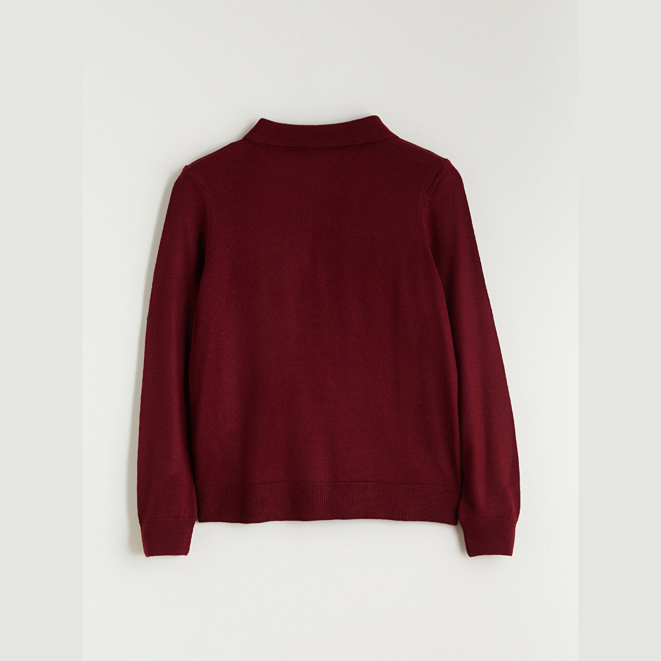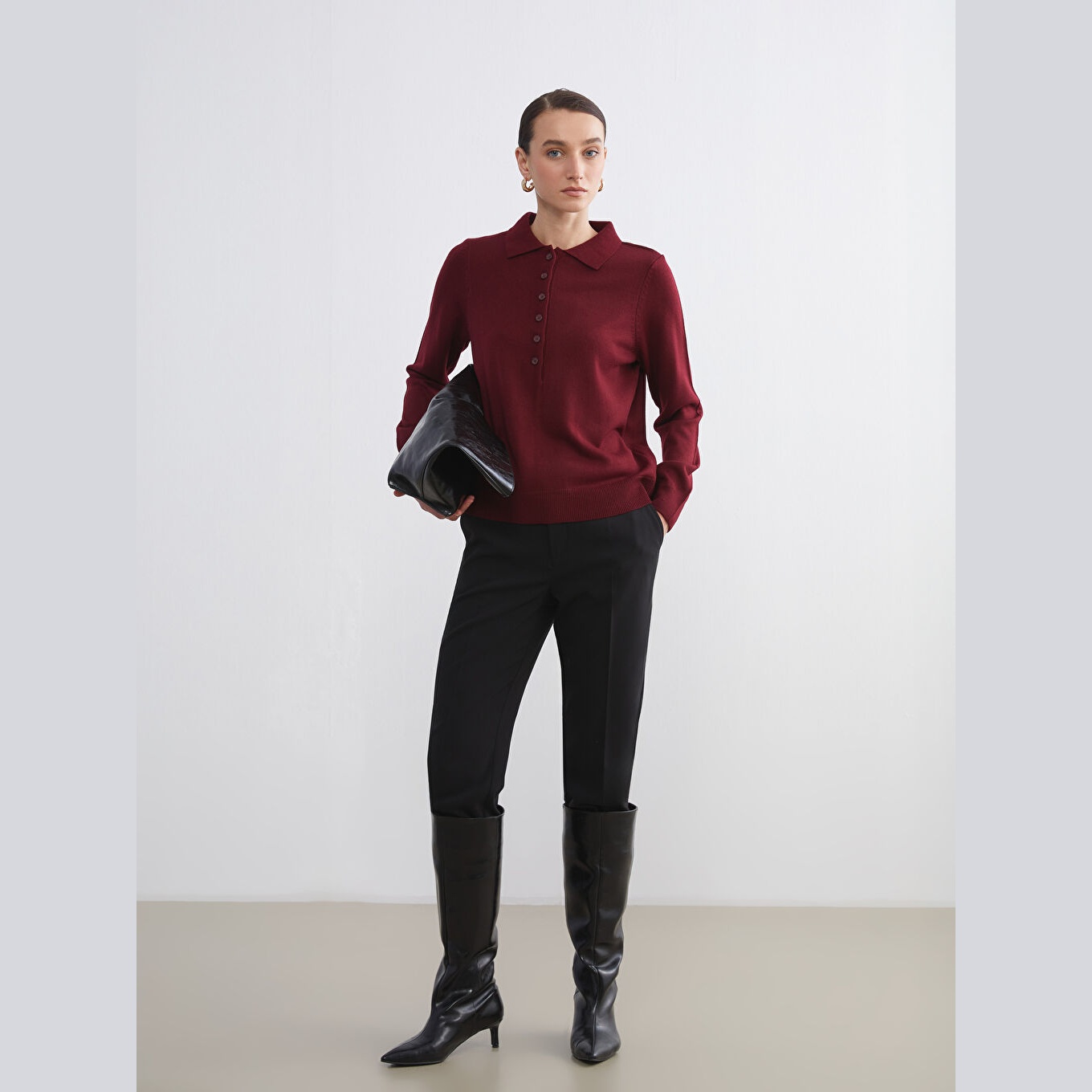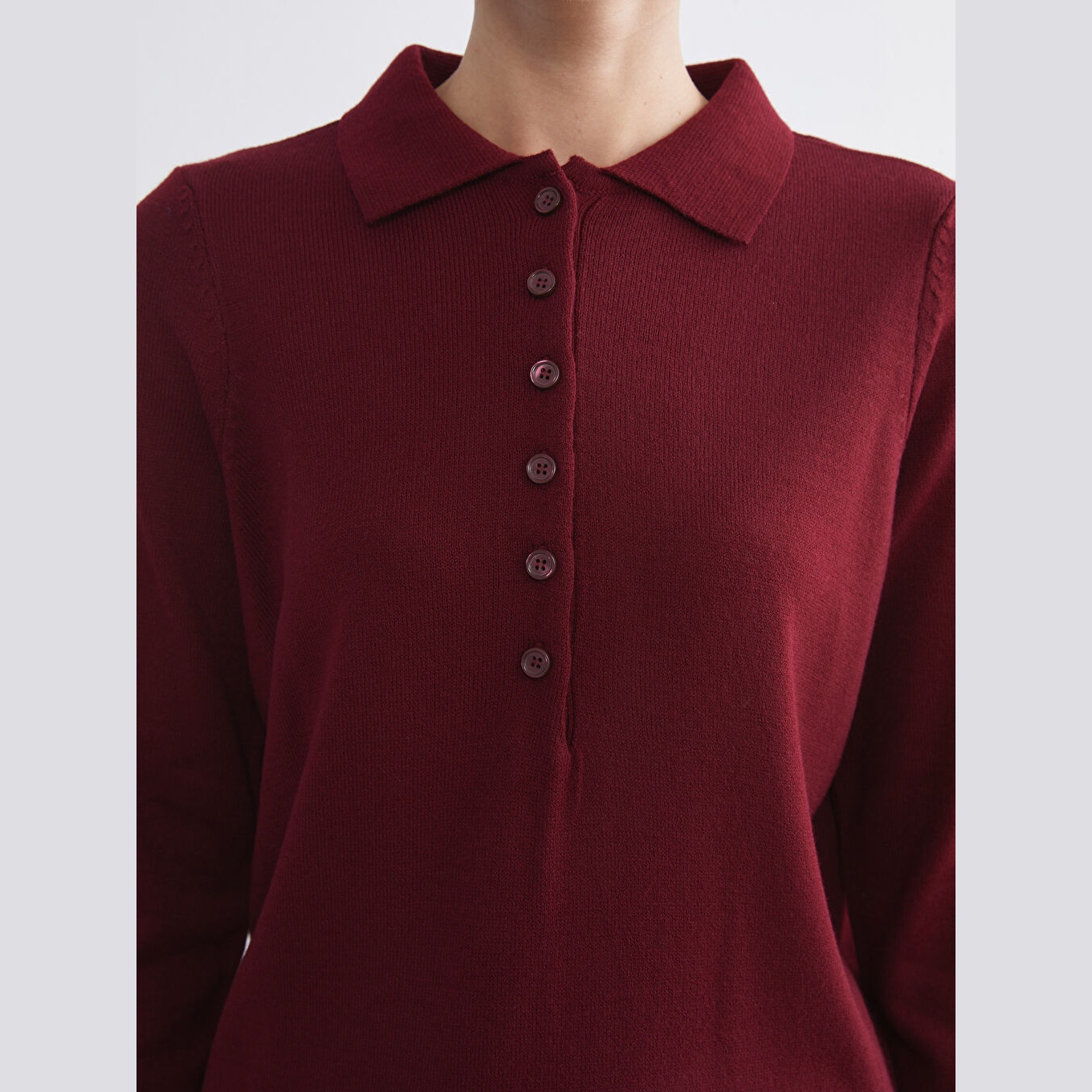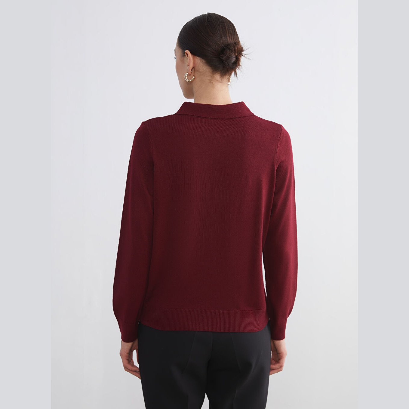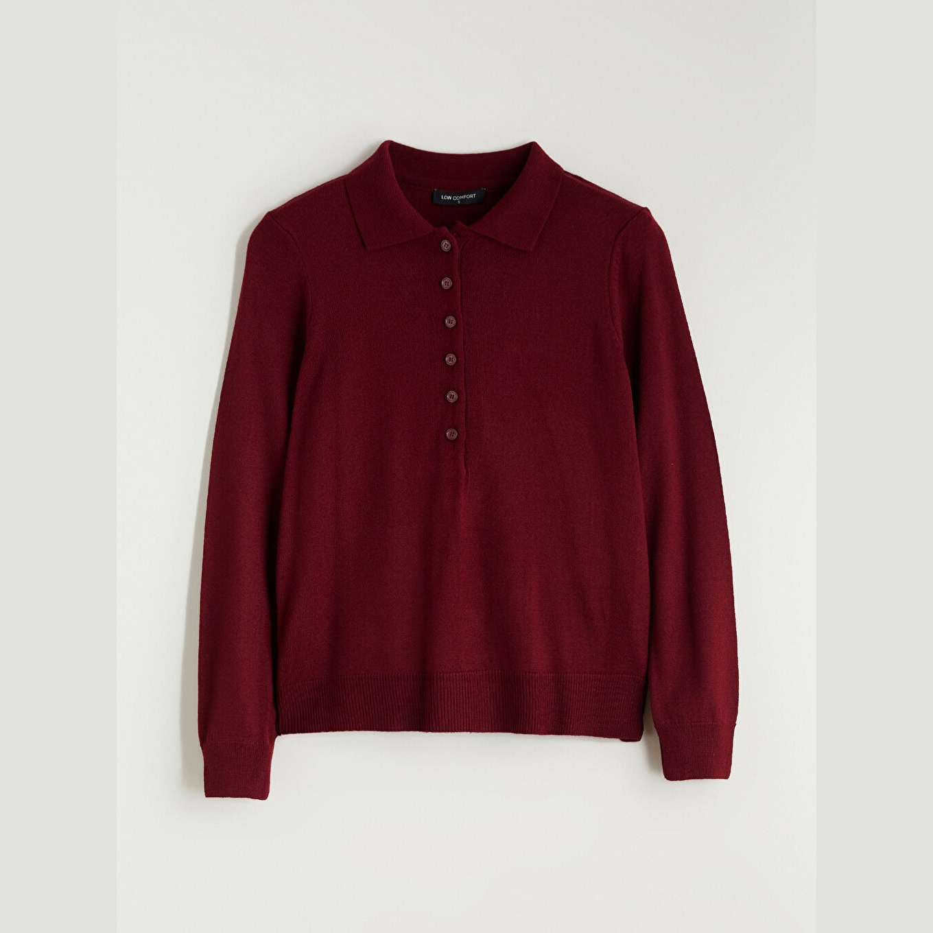 كنزة نسائية بياقة بولو من LCW Comfort – بوردو (قصة واسعة، تصميم سادة، مناسبة لفترة الحمل وما بعدها)