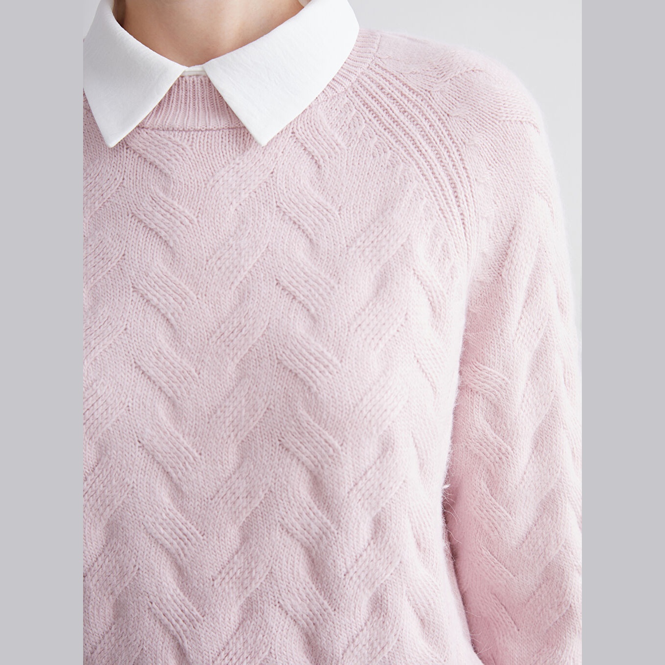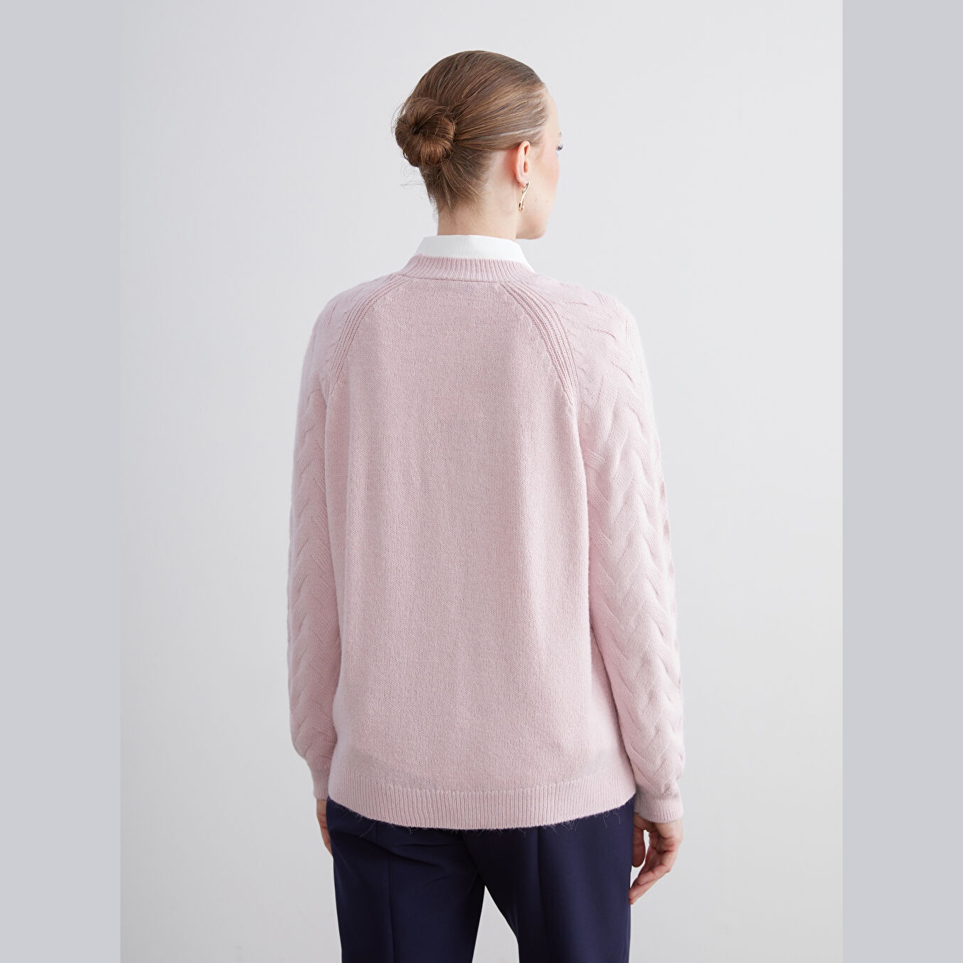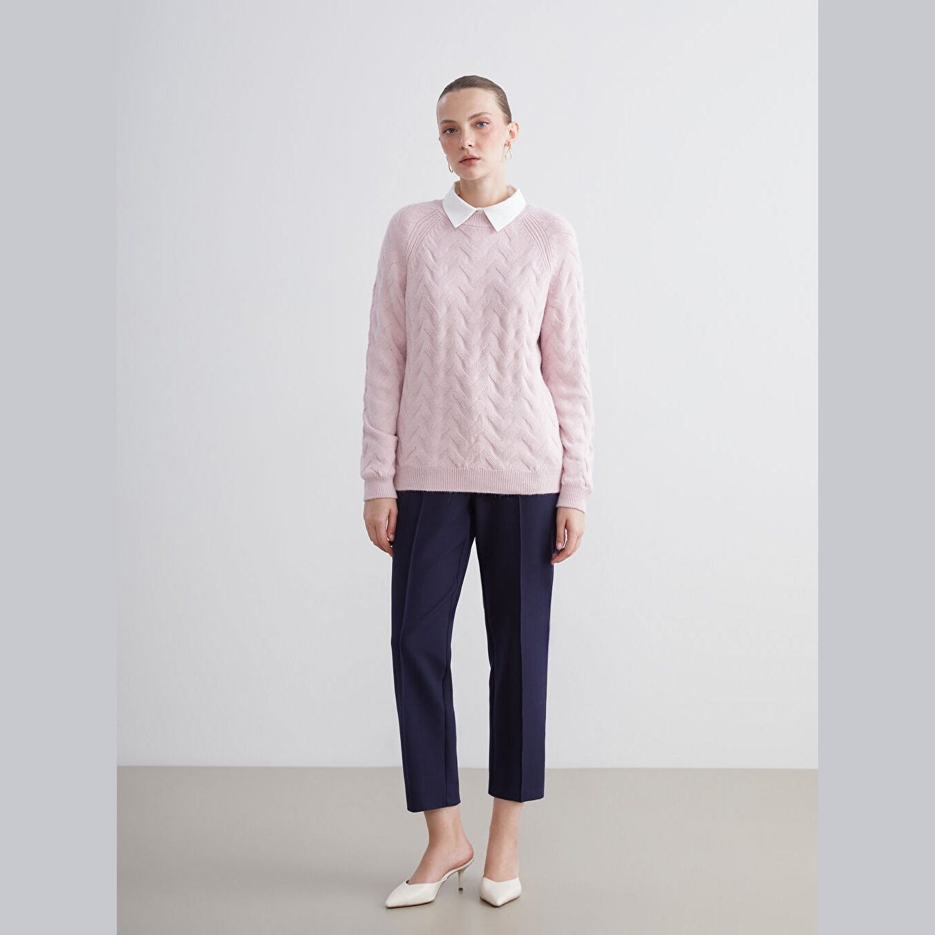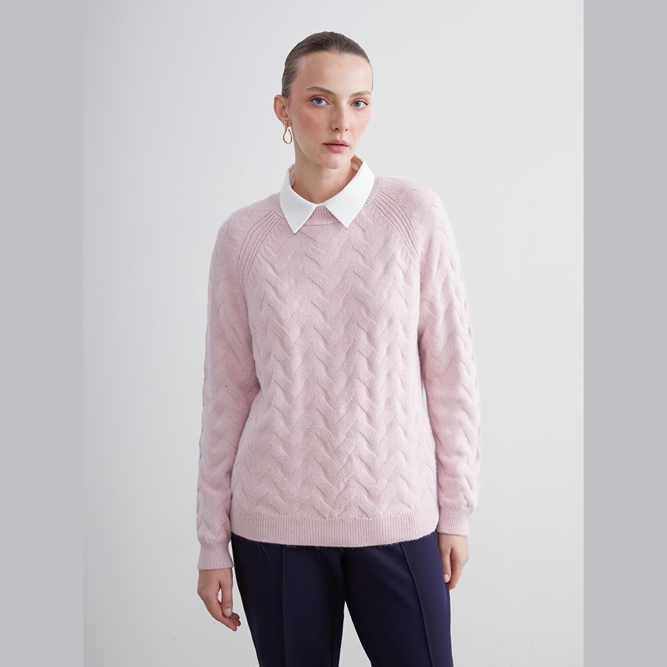 كنزة نسائية بياقة دائرية من LCW Classic – وردي (قصة قياسية، نقشة ذاتية، خامة سميكة)