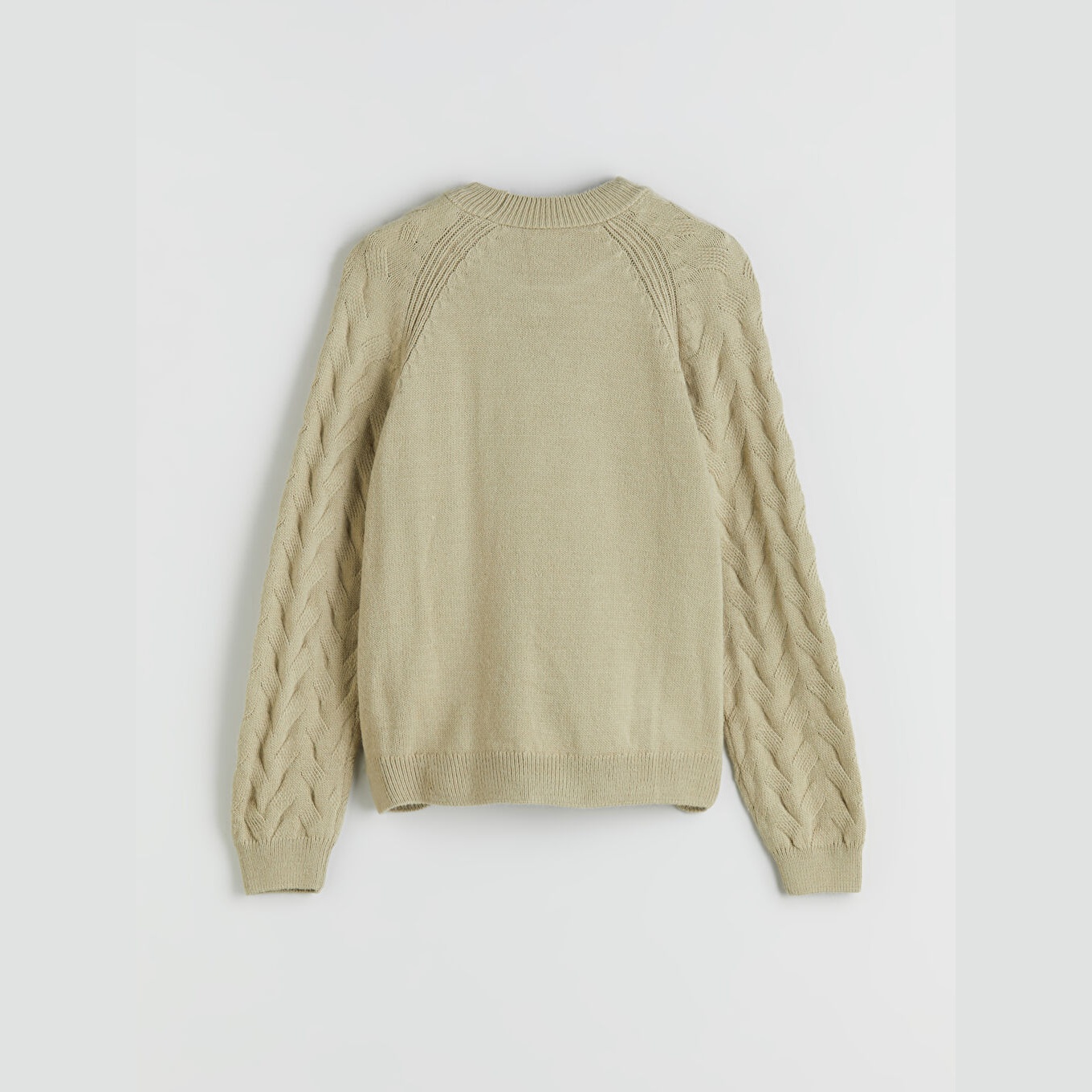 كنزة دافئة من LCW Classic بلون أخضر طبيعي، مصممة بياقة دائرية (Bisiklet Yaka)، أكمام طويلة، قصة Regular Fit قياسية تمنحك مظهرًا مريحًا وانسيابيًا، مزينة بنقشة ذاتية تضيف لمسة ناعمة وأنيقة، خامة تريكو سميكة بملمس ناعم، مصنوعة من مزيج الأكريليك، البولياميد، والبوليستر بنسبة 84% – 10% – 6%، بطول يُقاس من الكتف، مثالية للتنسيق مع بنطال قماشي أو تنورة مستقيمة لإطلالة يومية أنيقة وعملية.