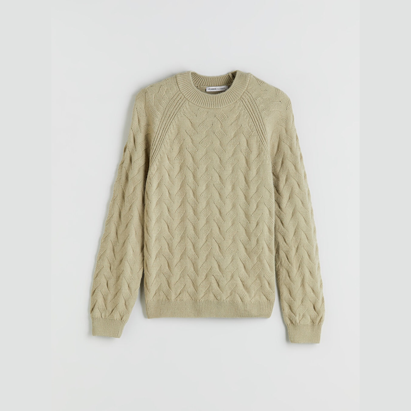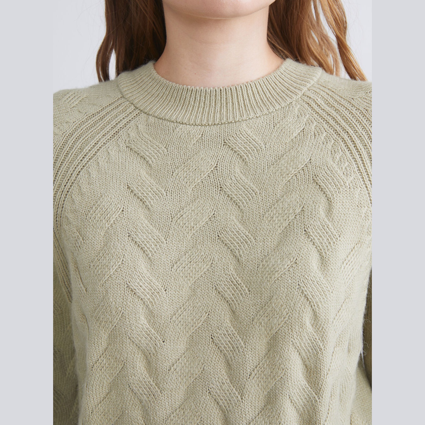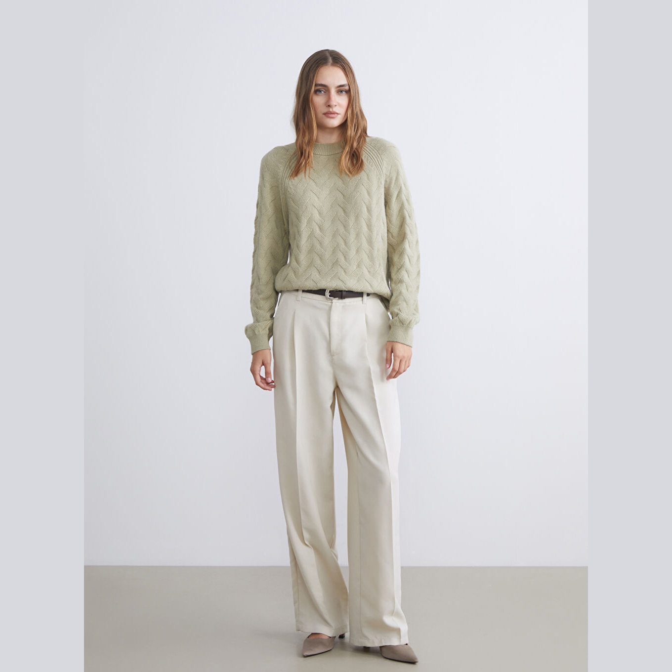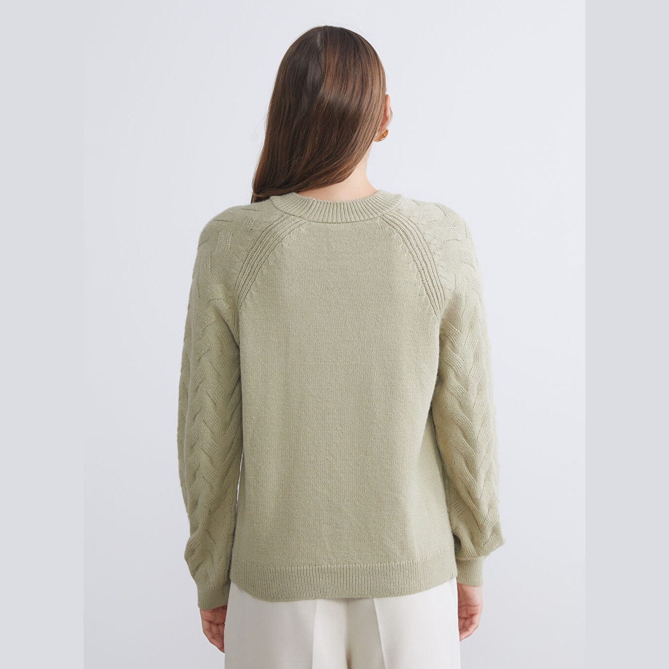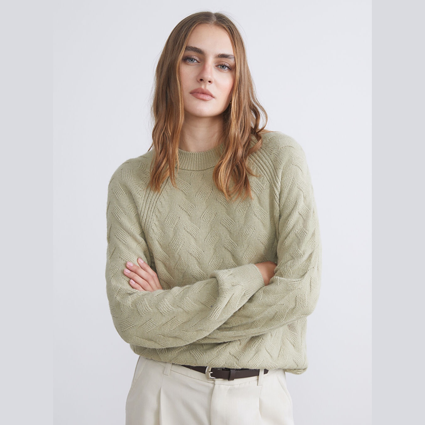 كنزة نسائية بياقة دائرية من LCW Classic – أخضر (قصة قياسية، نقشة ذاتية، خامة سميكة)