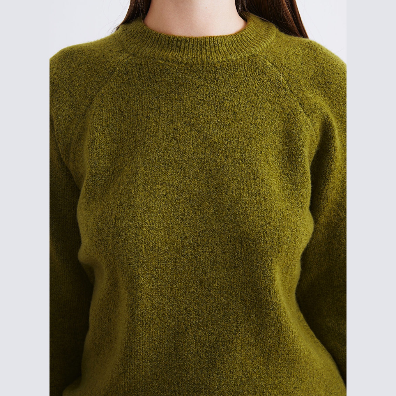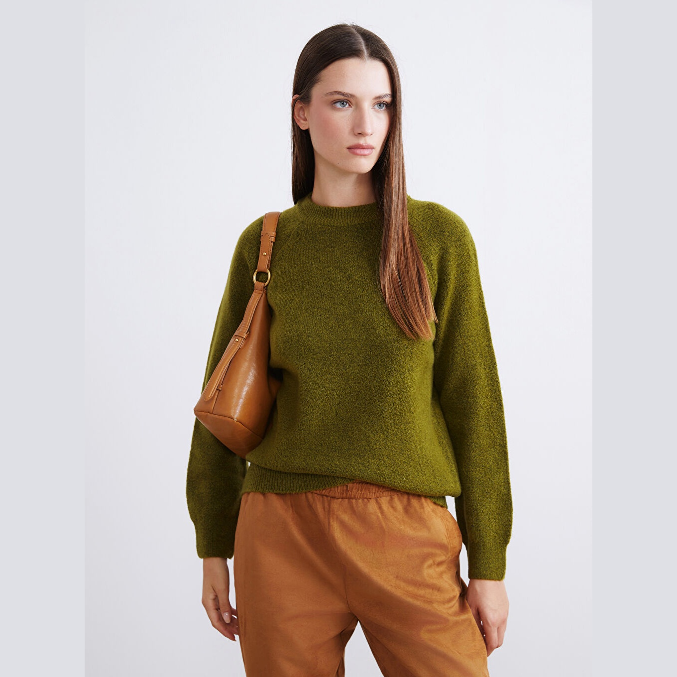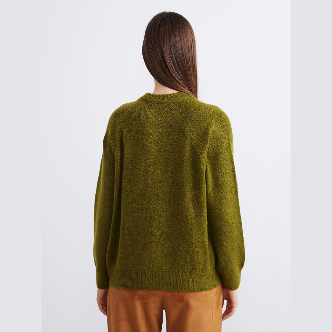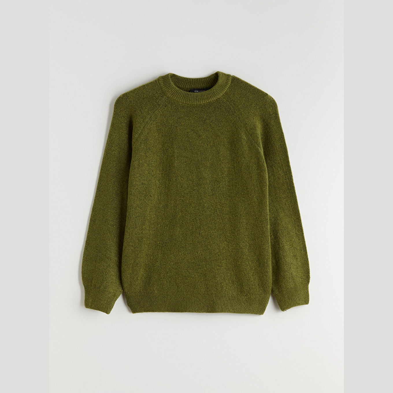 كنزة نسائية بياقة دائرية من LCW Vision – زيتي (قصة واسعة، تصميم سادة، خامة مرنة)