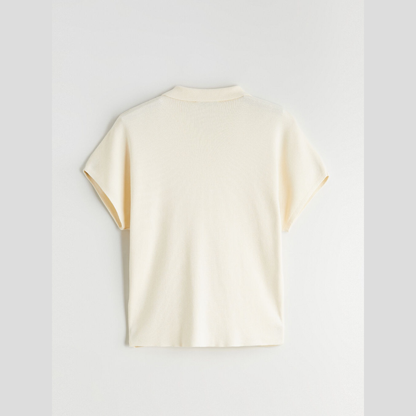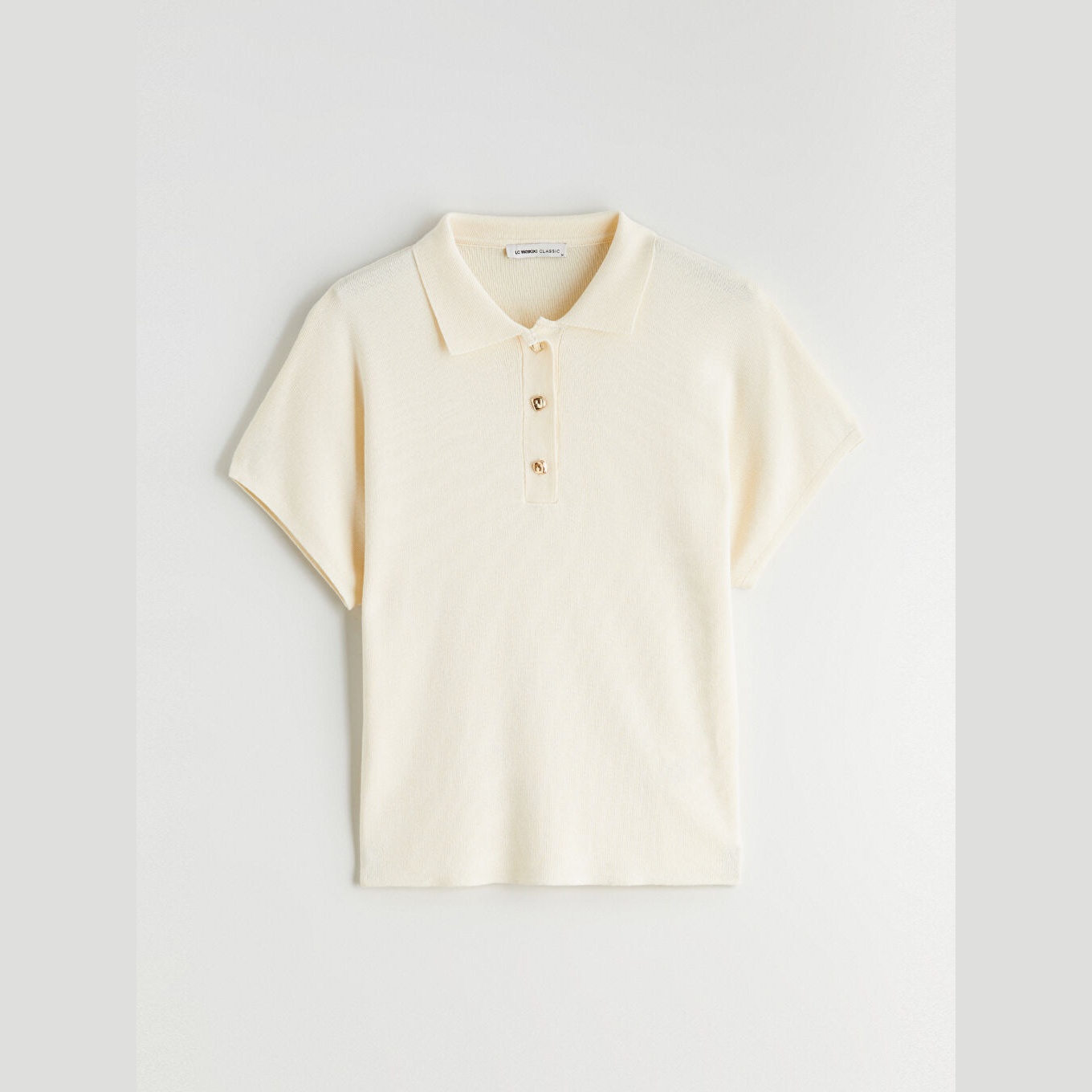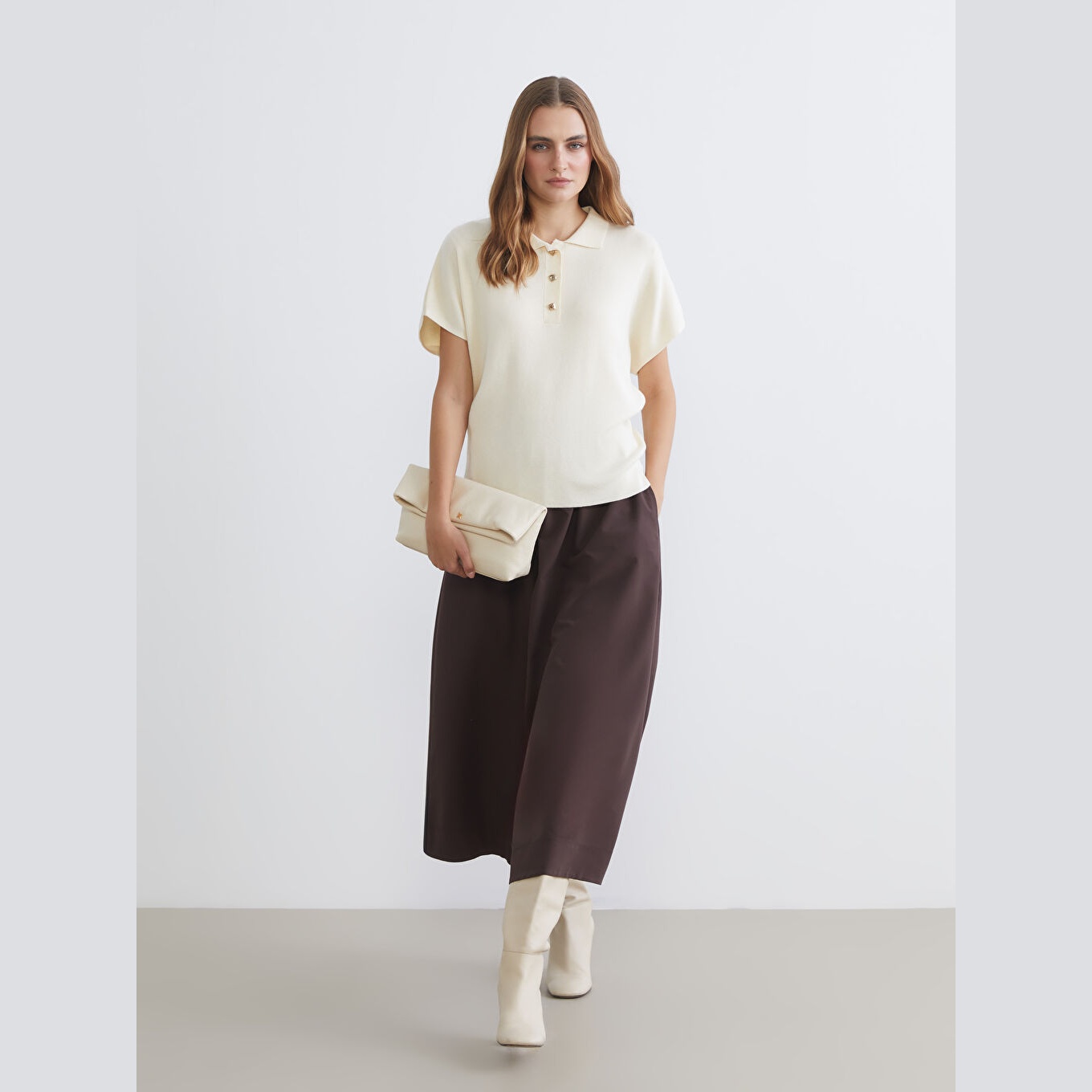 كنزة نسائية بياقة بولو من LCW Classic – إكرو (قصة قياسية، تصميم سادة، أزرار أمامية، بأكمام قصيرة)