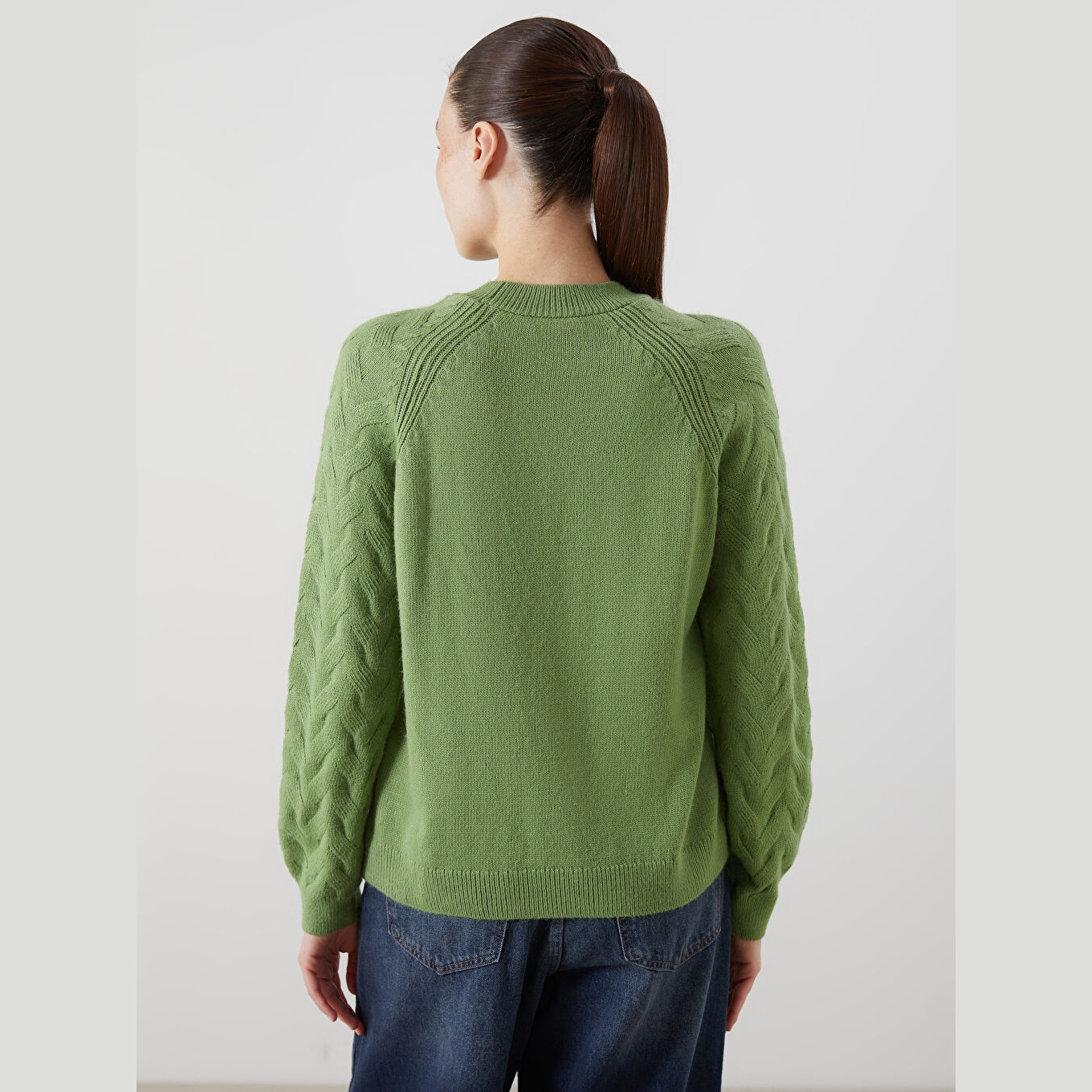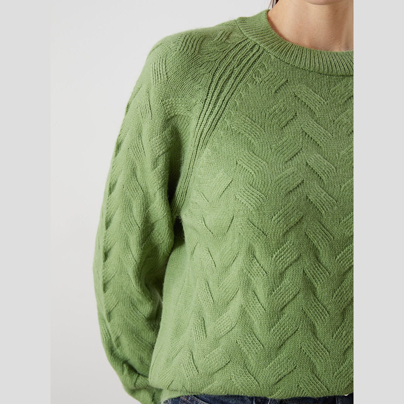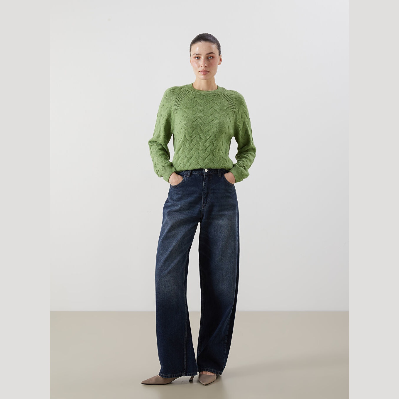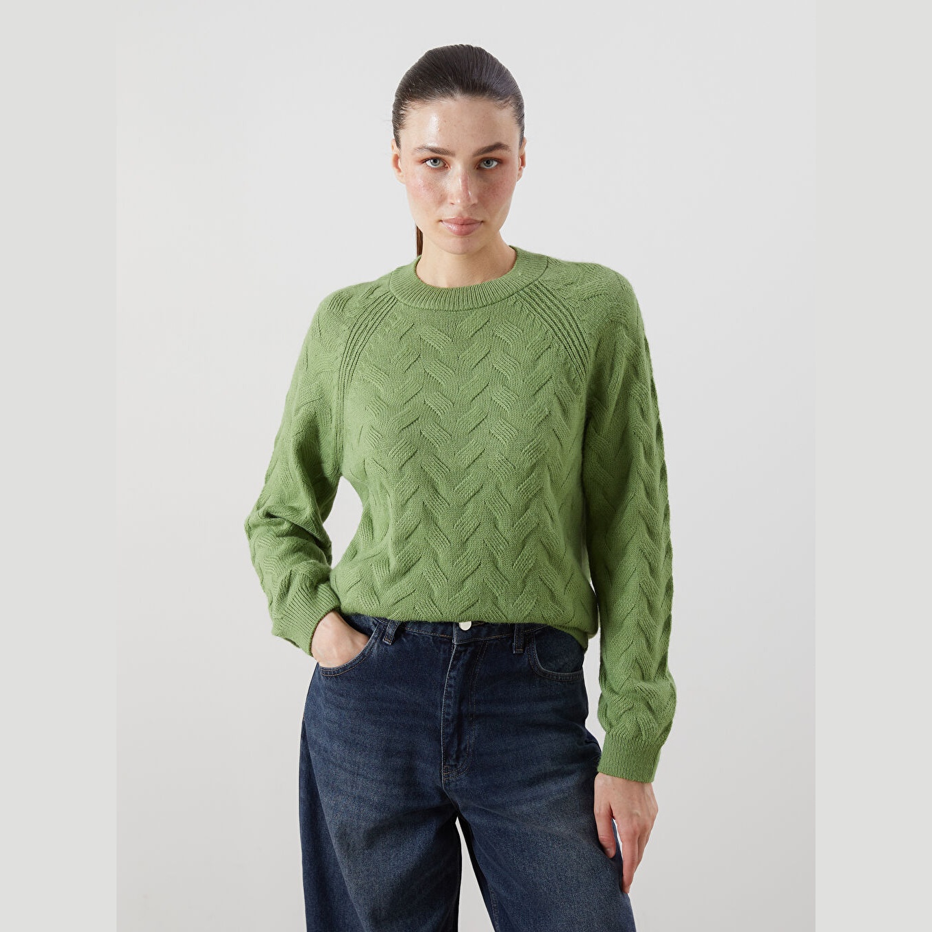 كنزة نسائية بياقة دائرية من LCW Classic – أخضر (قصة قياسية، نقشة ذاتية، خامة سميكة)
