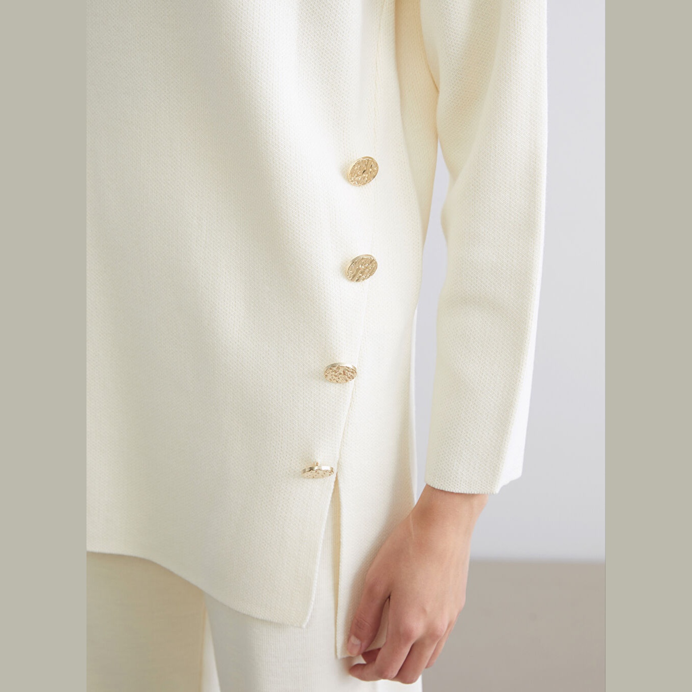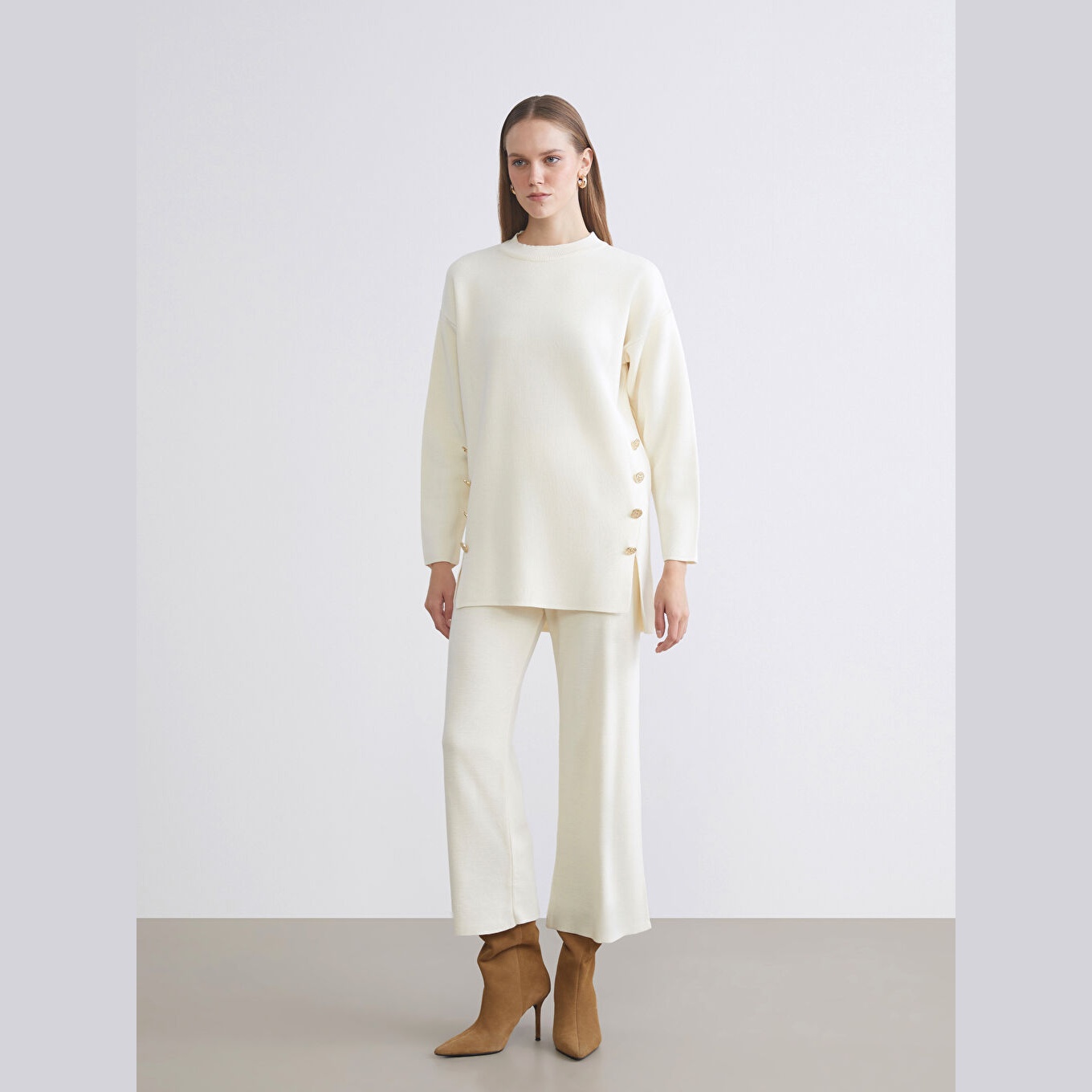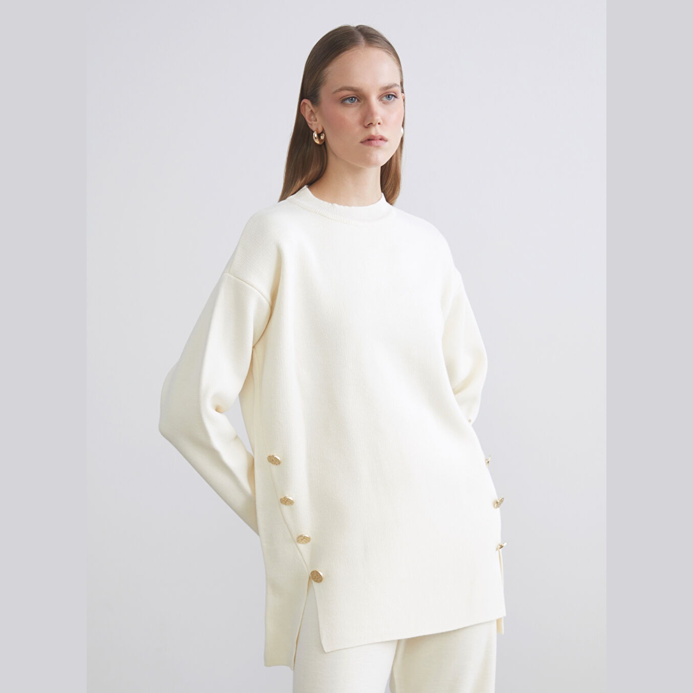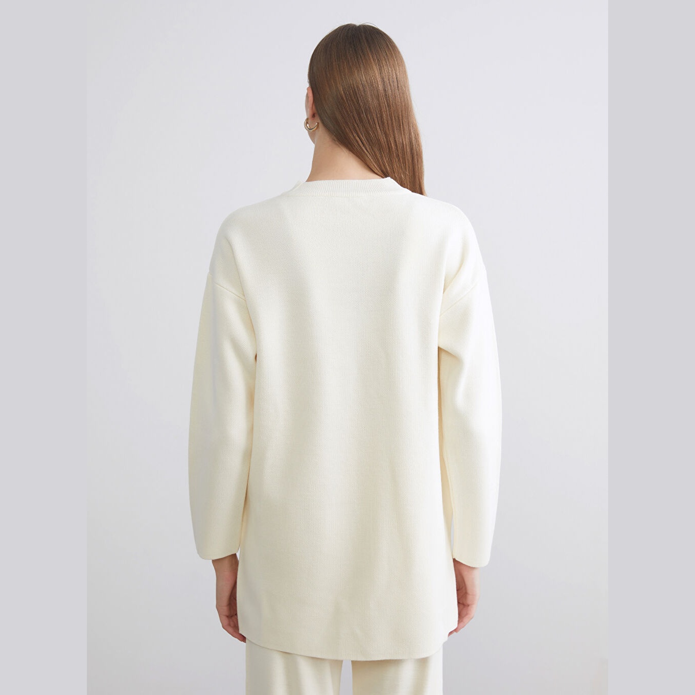 كنزة دافئة من LCW Classic بلون إكرو ناعم، مصممة بياقة دائرية (Bisiklet Yaka)، أكمام طويلة، قصة Oversize واسعة تمنحك إحساسًا بالراحة والانسيابية، تصميم سادة بدون نقشة يتيح تنسيقًا مرنًا مع مختلف الإطلالات، خامة تريكو سميكة بملمس ناعم، مصنوعة من أكرليك 100%، بطول يُقاس من الكتف، مثالية للتنسيق مع بنطال قماشي أو جينز لإطلالة يومية أنيقة وعملية.