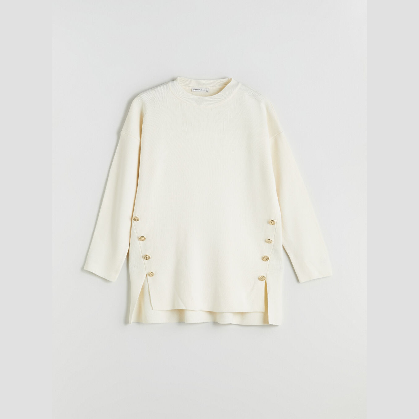 كنزة نسائية بياقة دائرية من LCW Classic – إكرو (قصة واسعة، تصميم سادة، خامة سميكة 100% أكرليك)