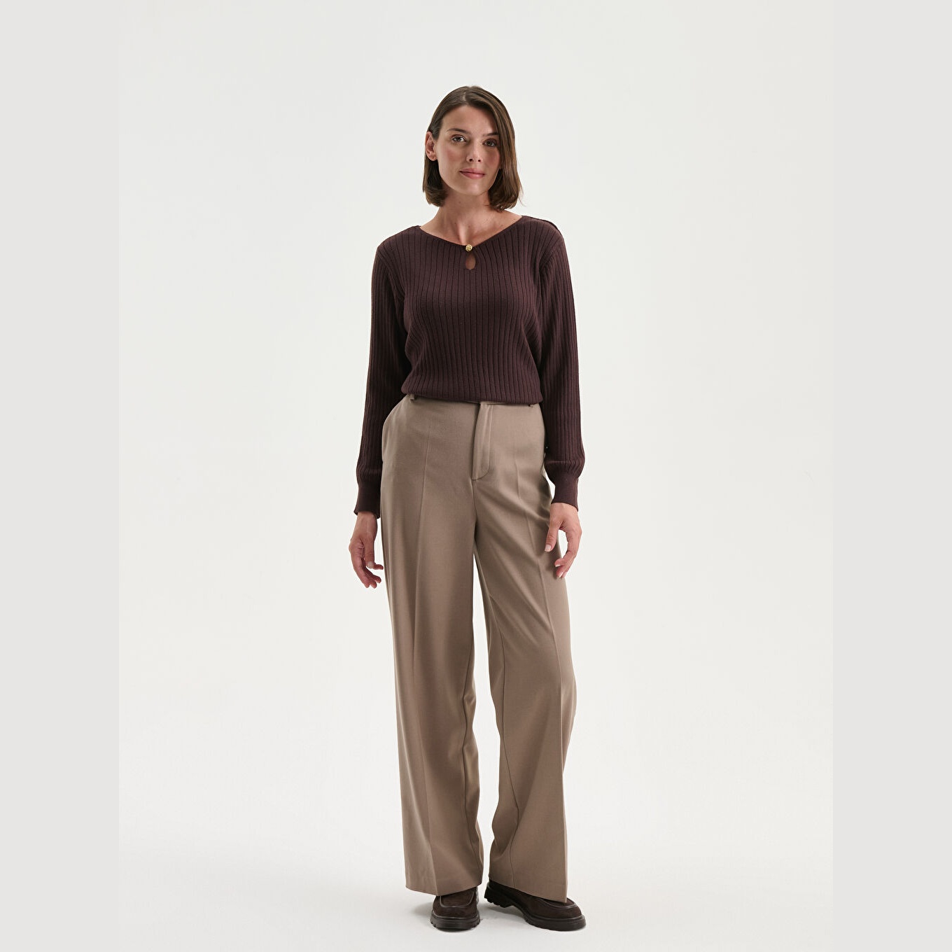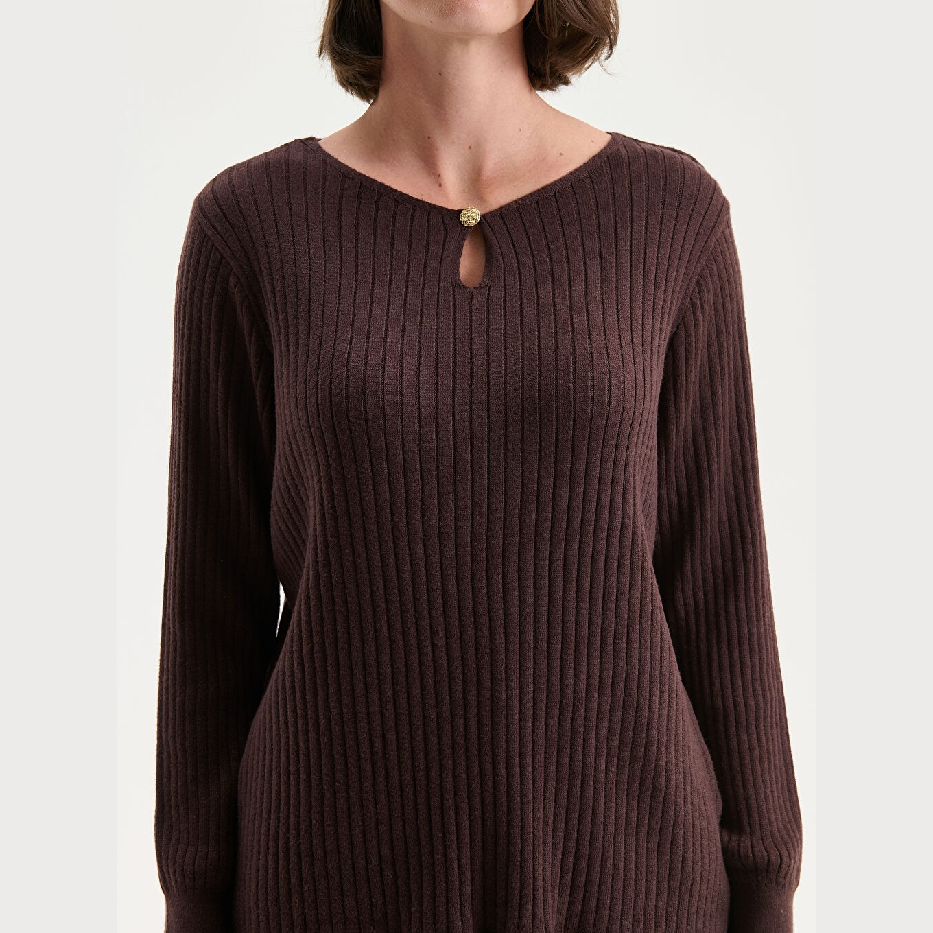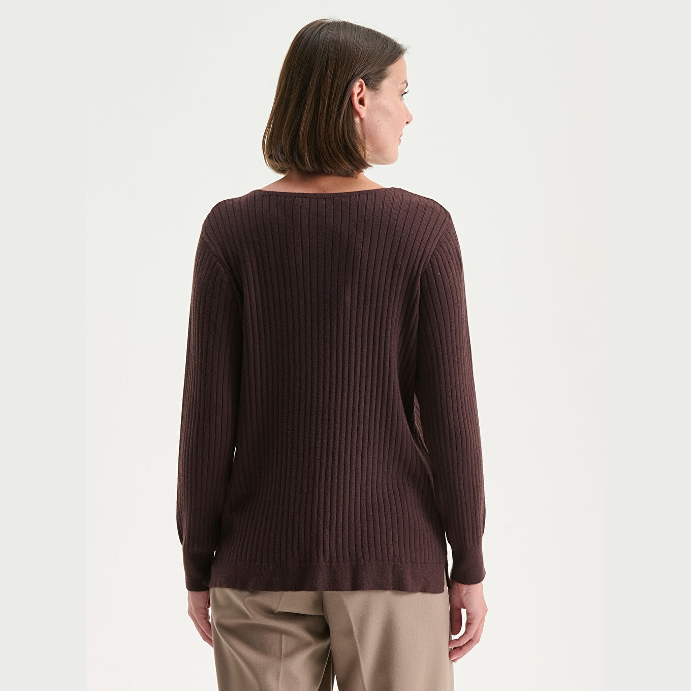 كنزة نسائية بياقة دائرية من LCW Grace – بني (قصة قياسية، تصميم سادة، خامة متوسطة السماكة، ضمن مجموعة المقاسات الكبيرة)