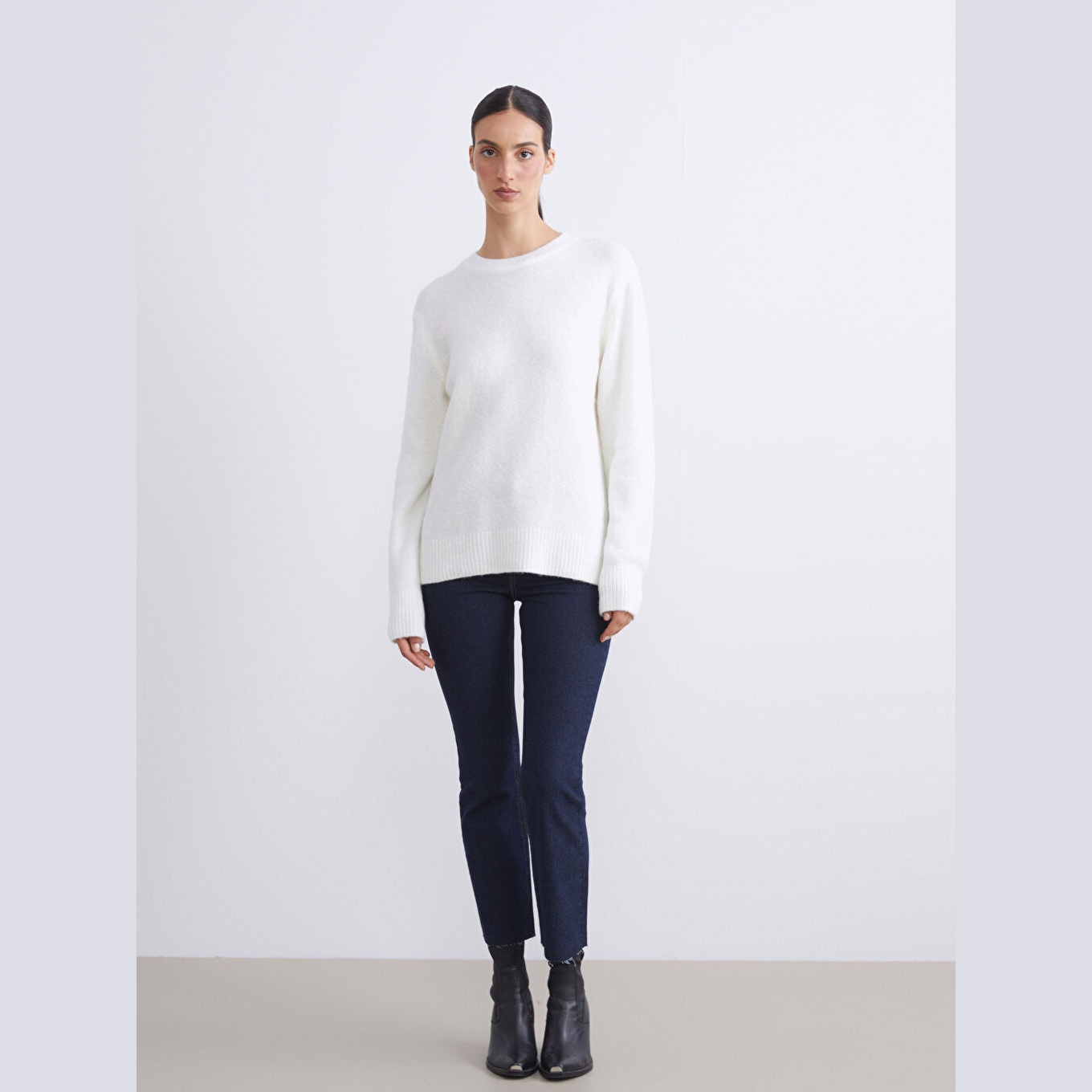 كنزة دافئة من LCW Classic بلون إكرو ناعم، مصممة بياقة دائرية (Bisiklet Yaka)، أكمام طويلة، قصة Loose Fit واسعة تمنحك إحساسًا بالراحة والانسيابية، تصميم سادة بدون نقشة يتيح تنسيقًا مرنًا مع مختلف الإطلالات، خامة تريكو بتركيبة غنية تحتوي على صوف بنسبة 9%، إلى جانب الأكريليك، البولياميد، والإيلاستان، تمنحك دفئًا ومرونة مثالية، بطول يُقاس من الكتف، مثالية للتنسيق مع بنطال قماشي أو تنورة مستقيمة لإطلالة يومية أنيقة وعملية.